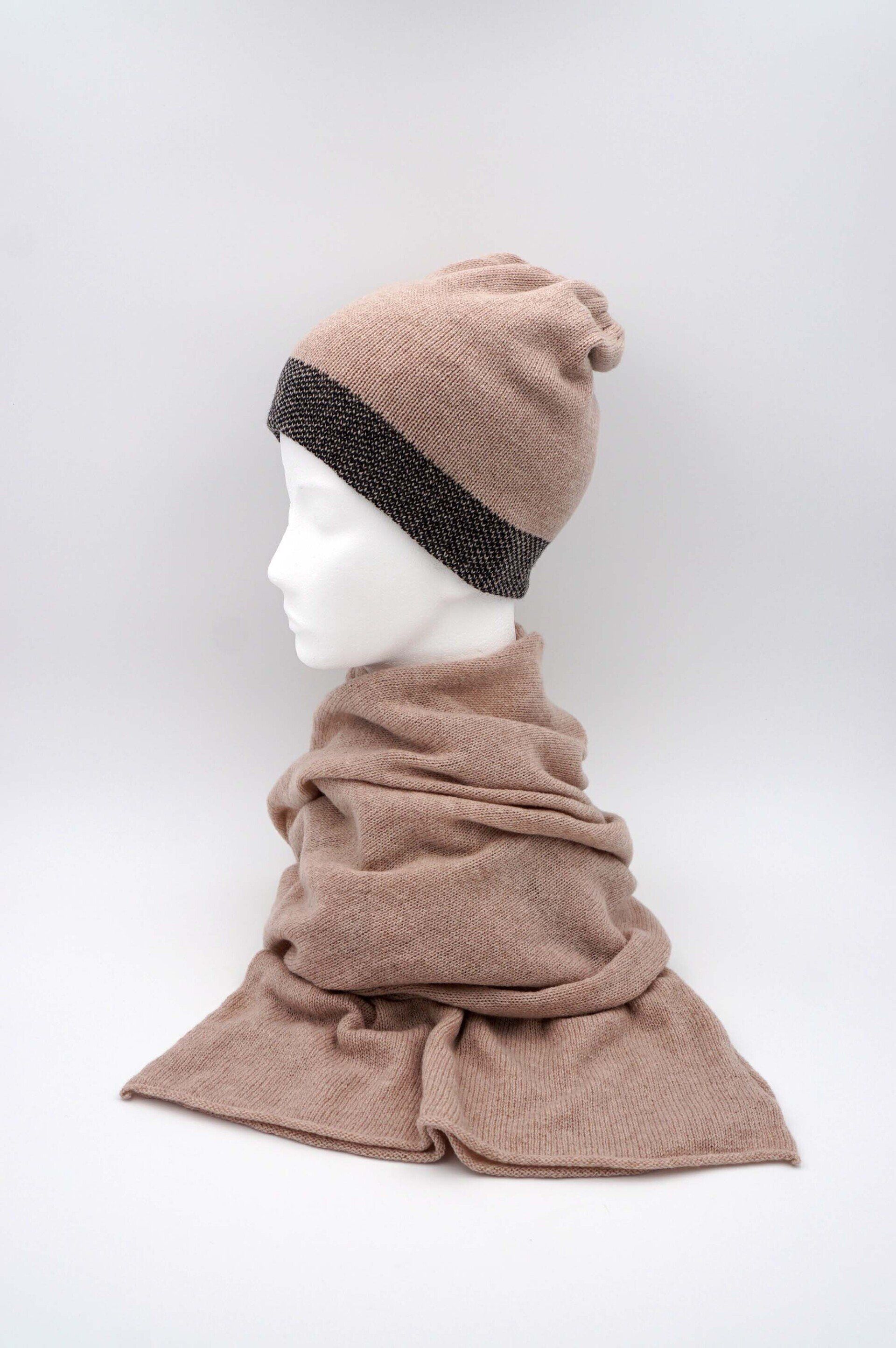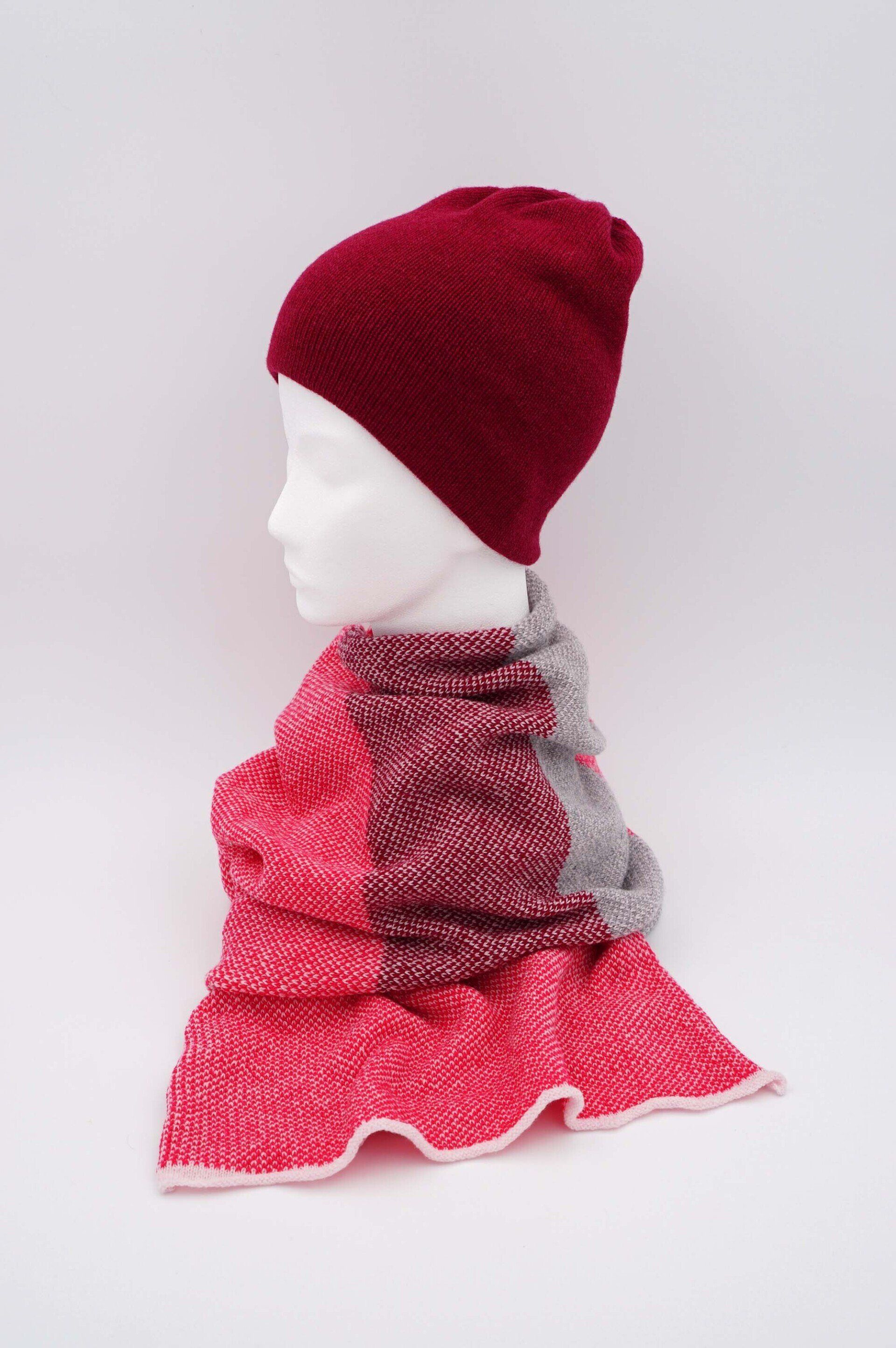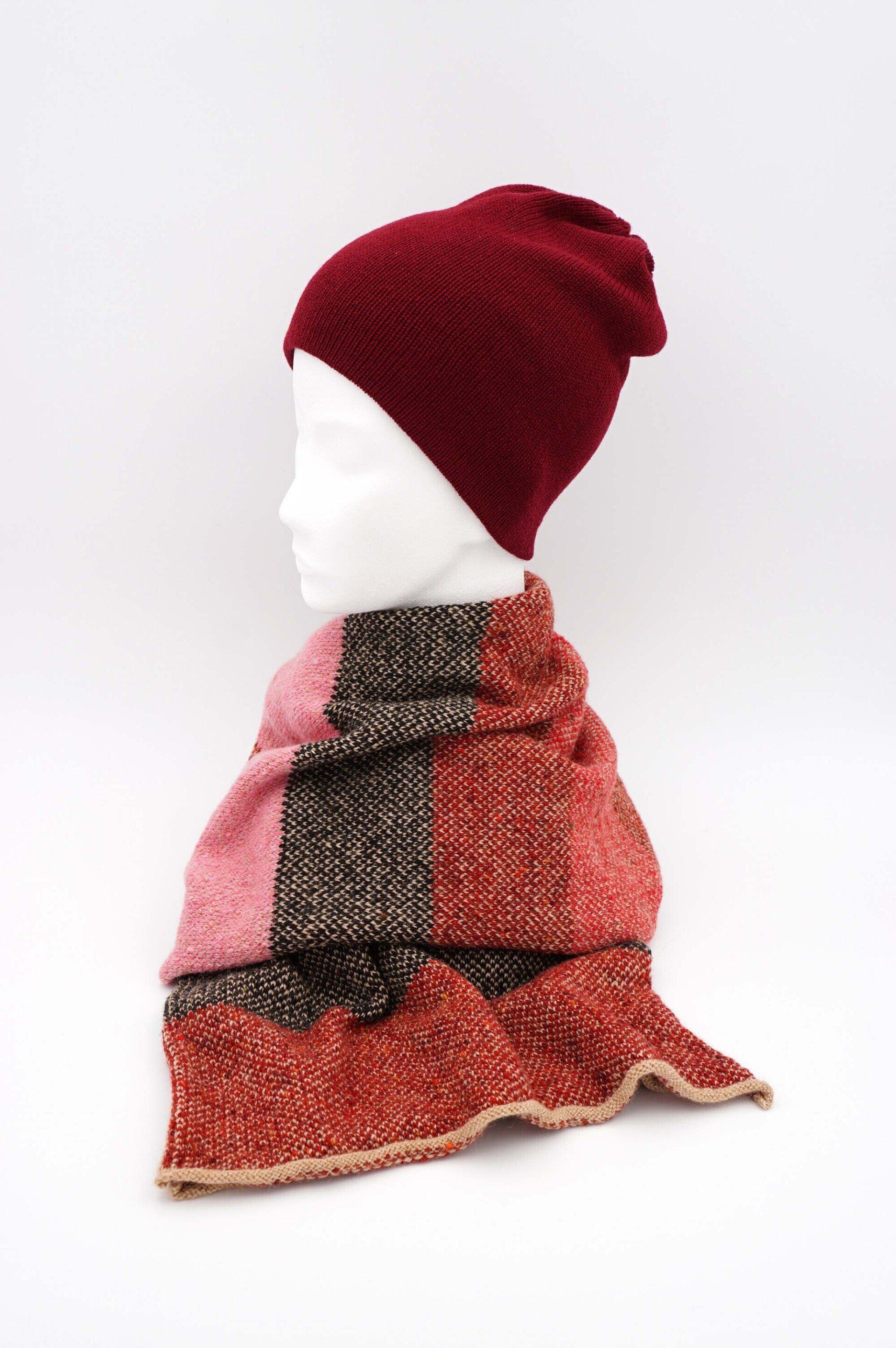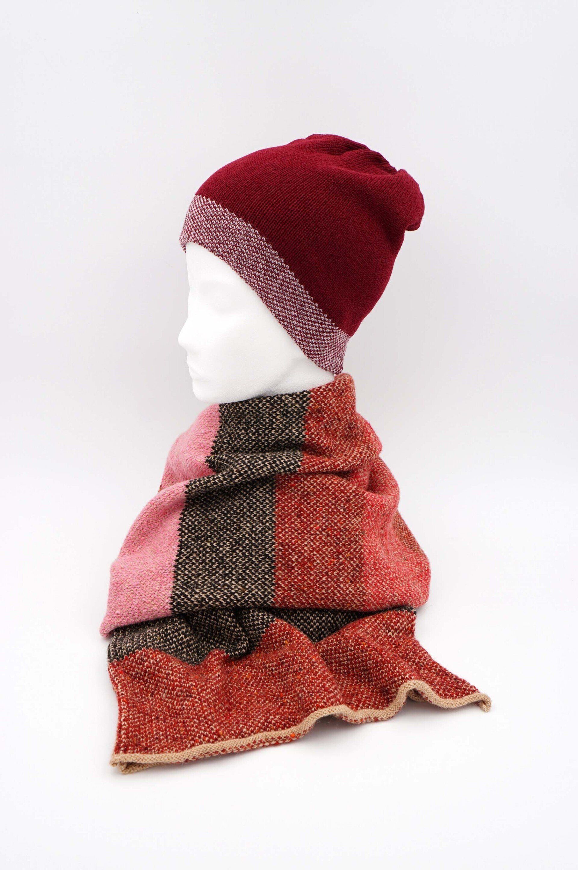 Zweifarbiger Wickelschal, Maße ca: 230x40 cm und dazu passend eine einfarbige oder zweifarbige Beanie