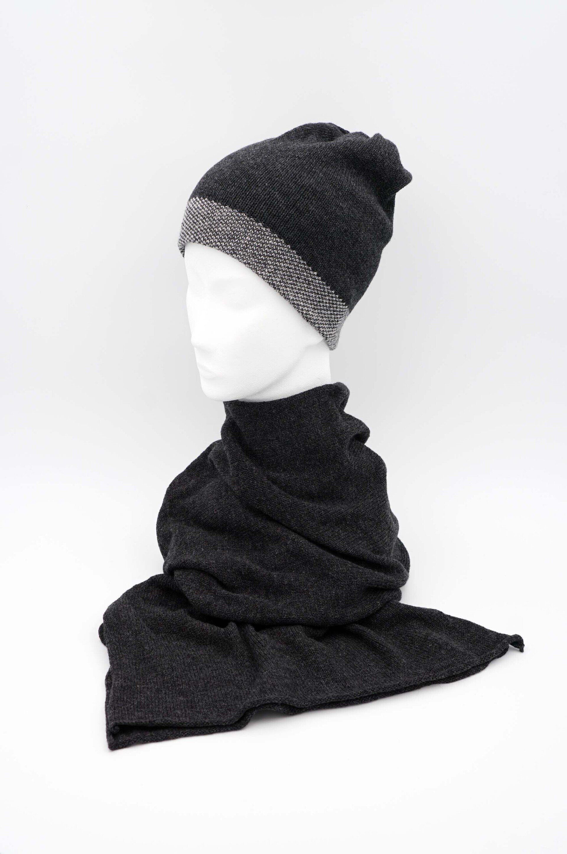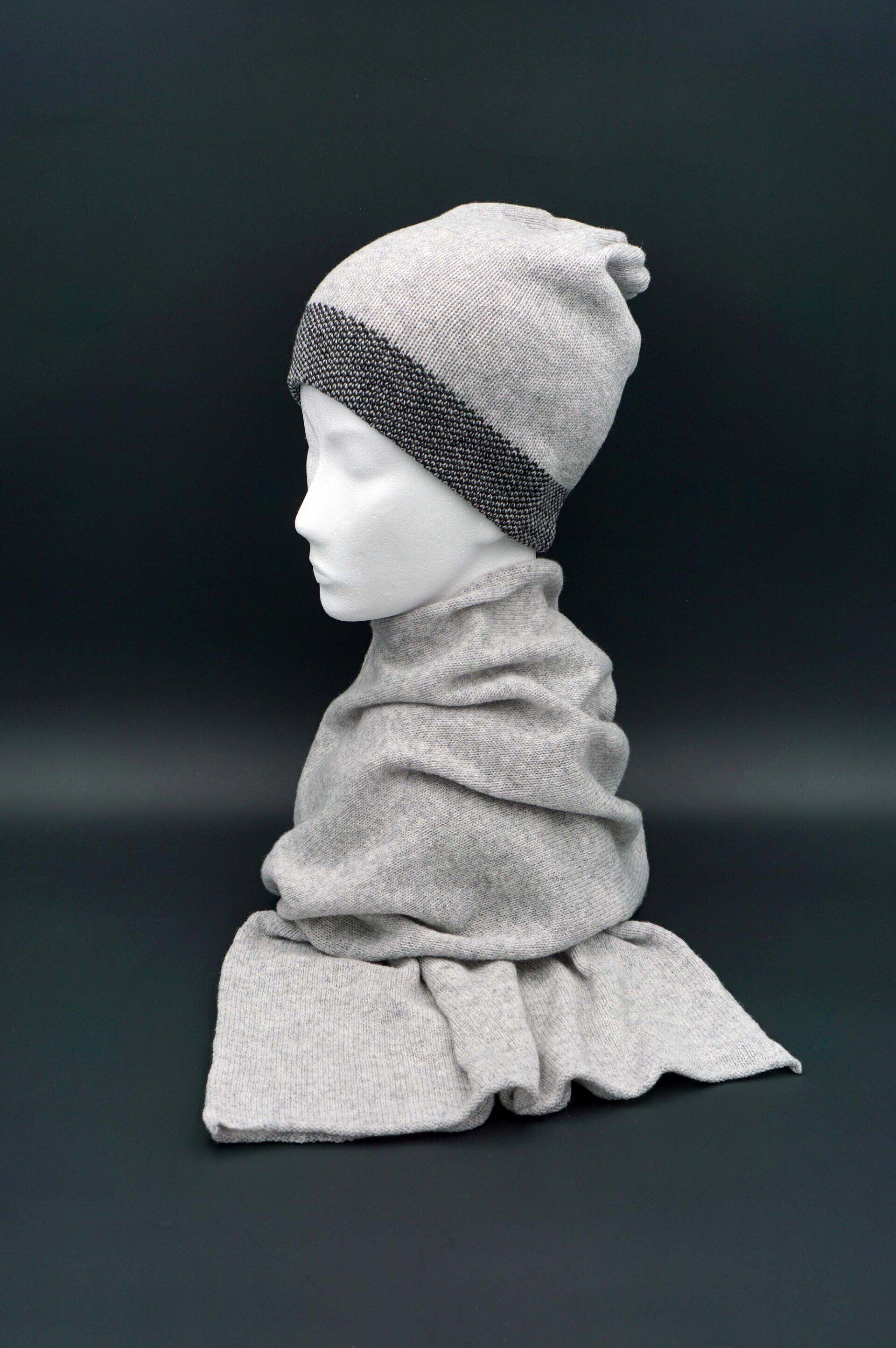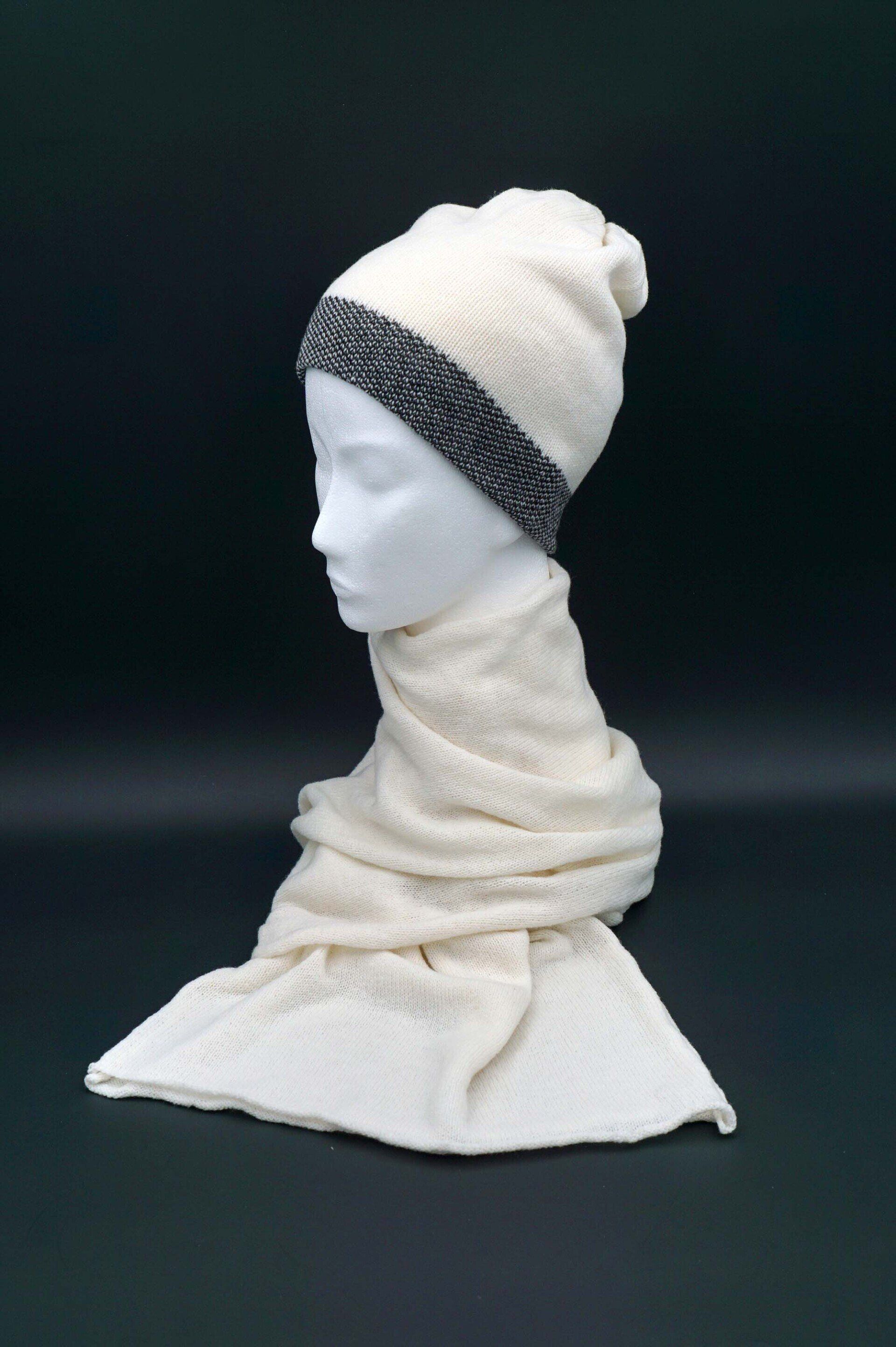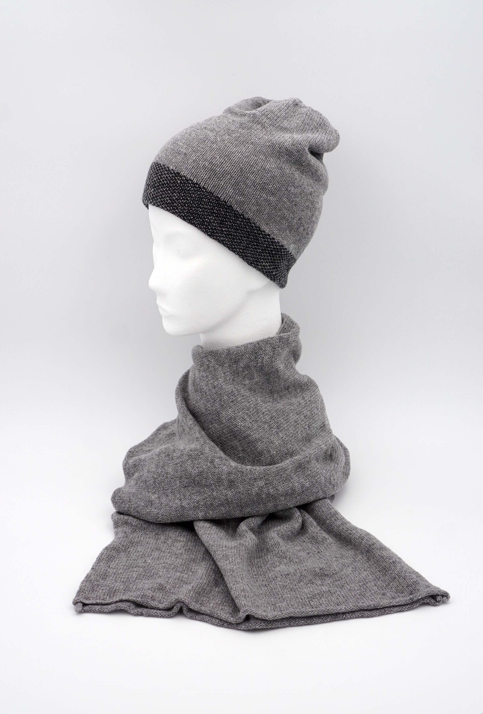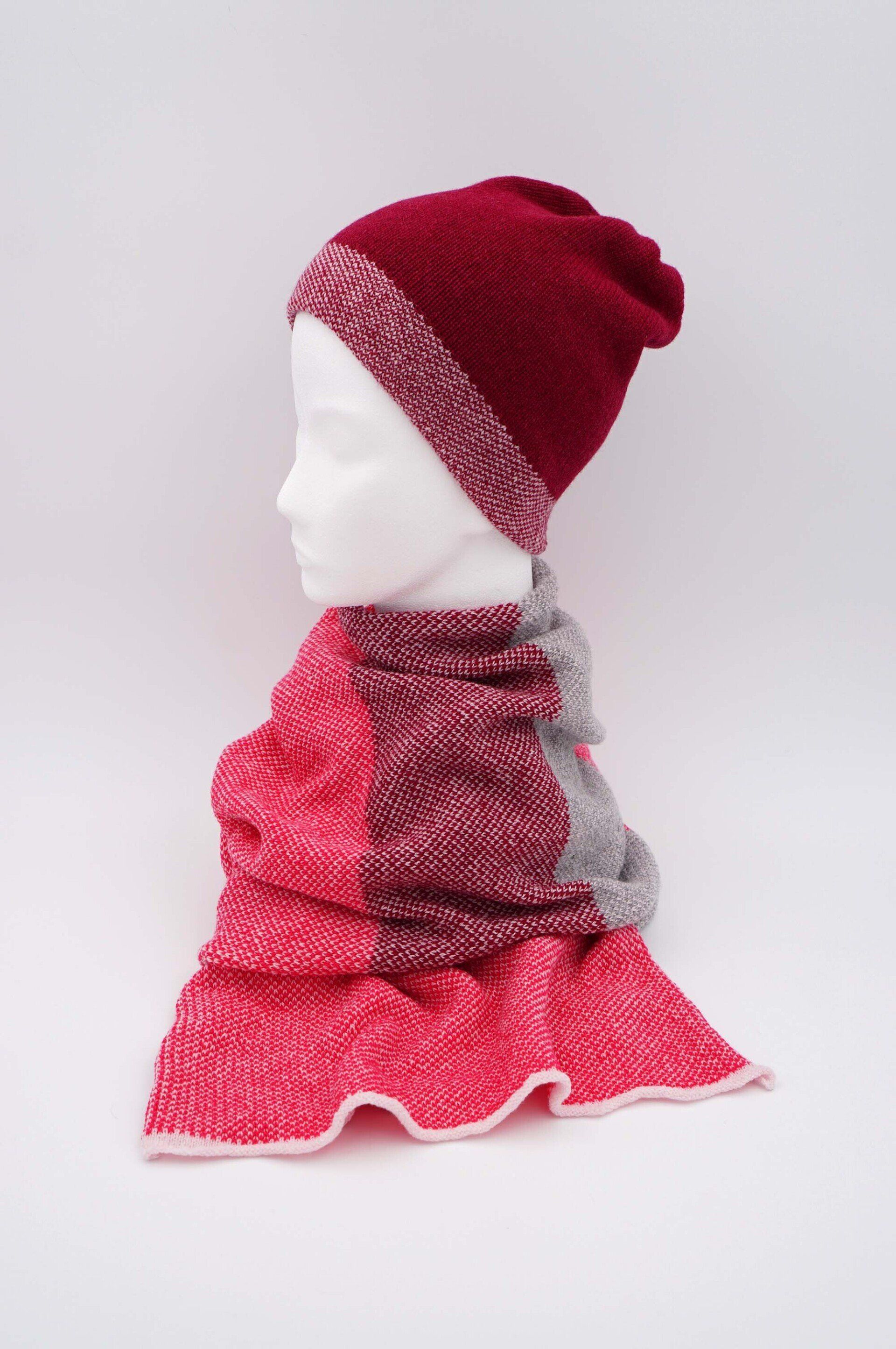 Zweifarbiger Wickelschal, Maße ca: 230x40 cm und dazu passend eine einfarbige oder zweifarbige Beanie