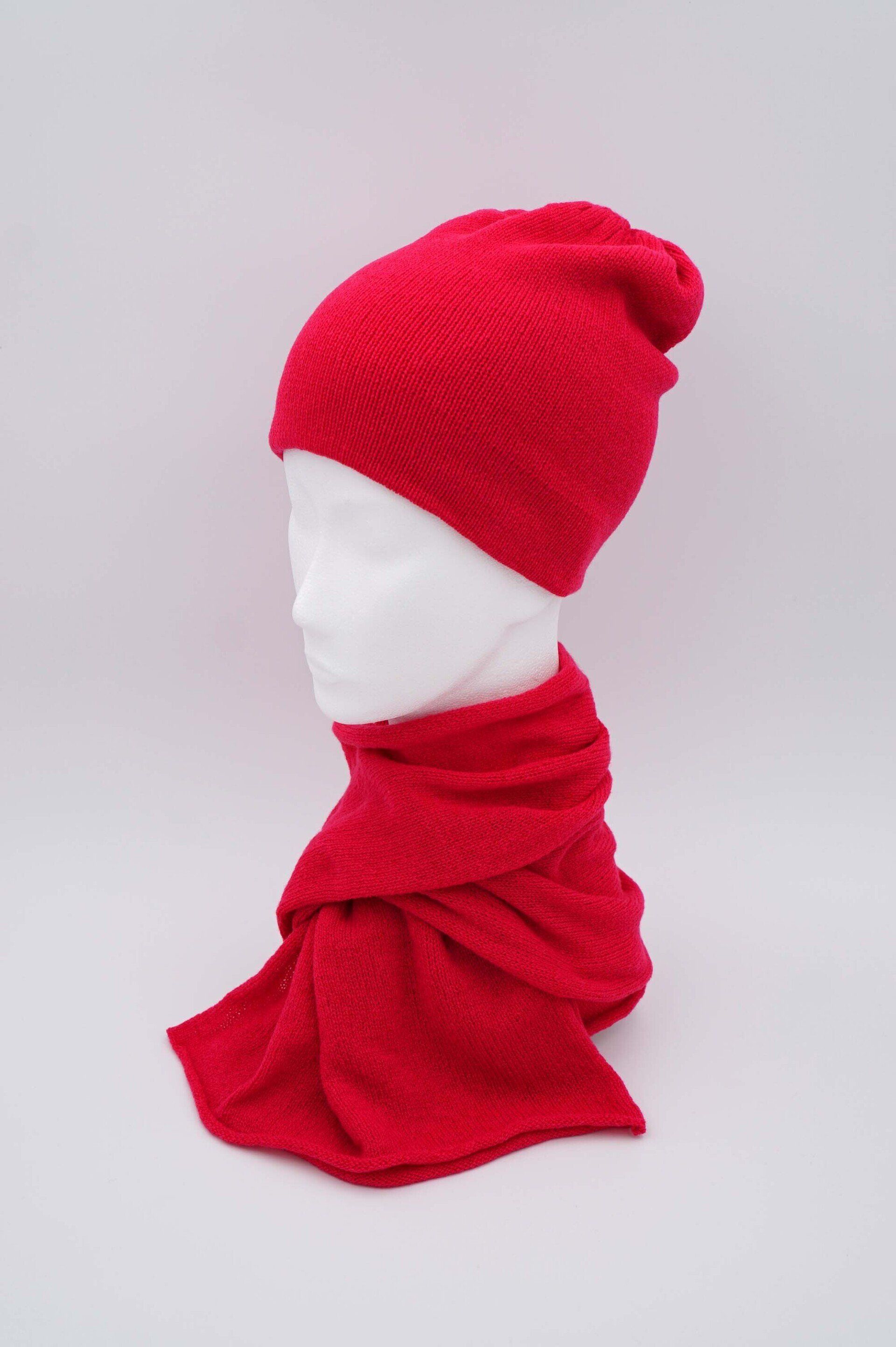Einfarbiger Wickelschal, Maße ca: 230x40 cm und dazu passend eine einfarbige oder zweifarbige Beanie