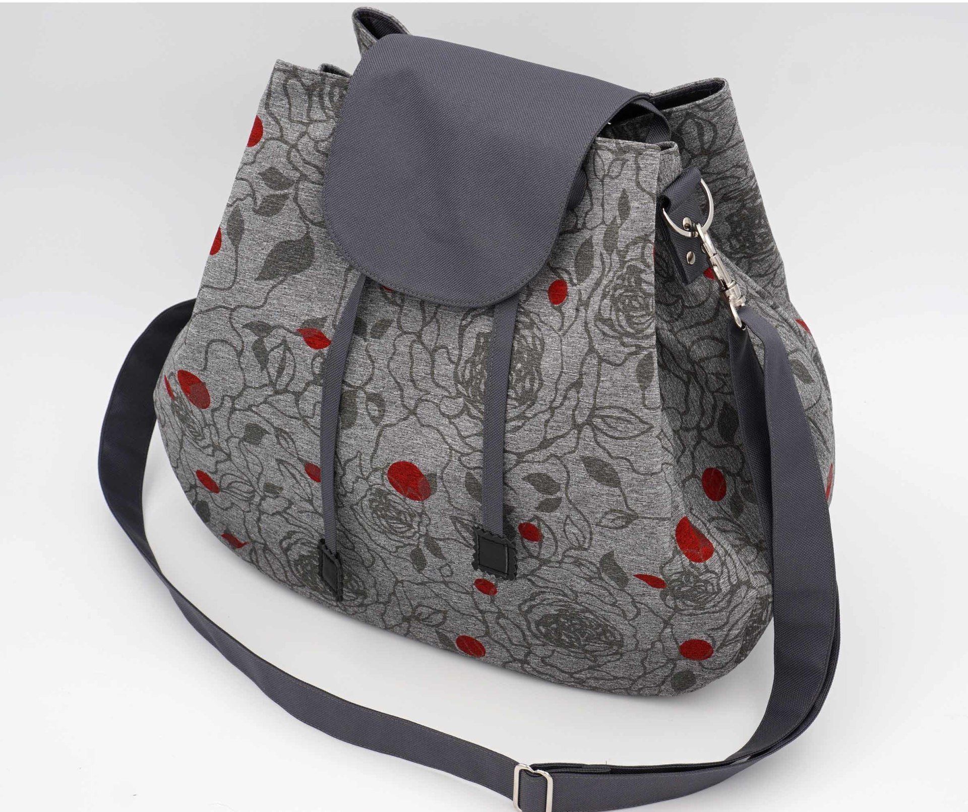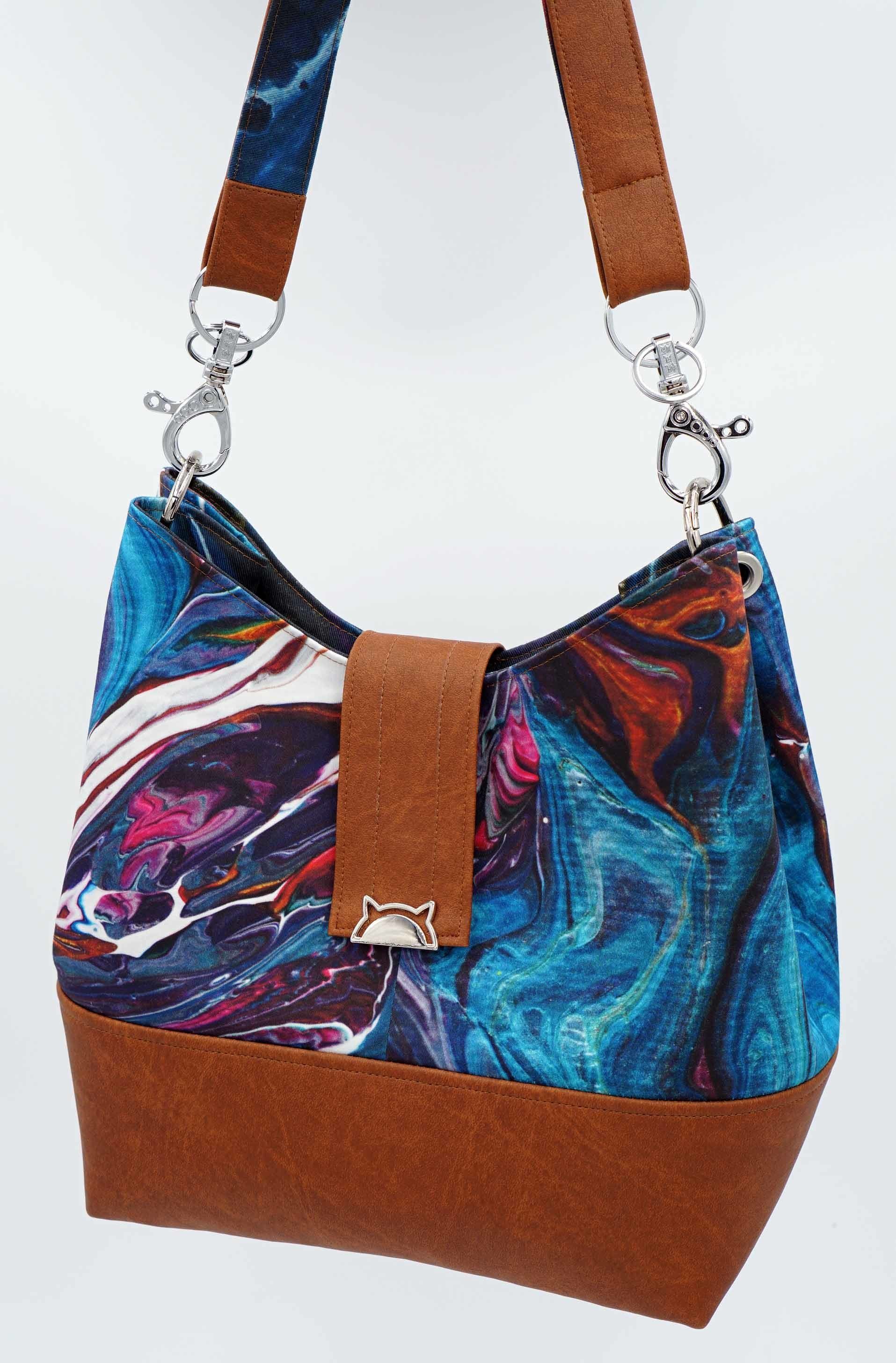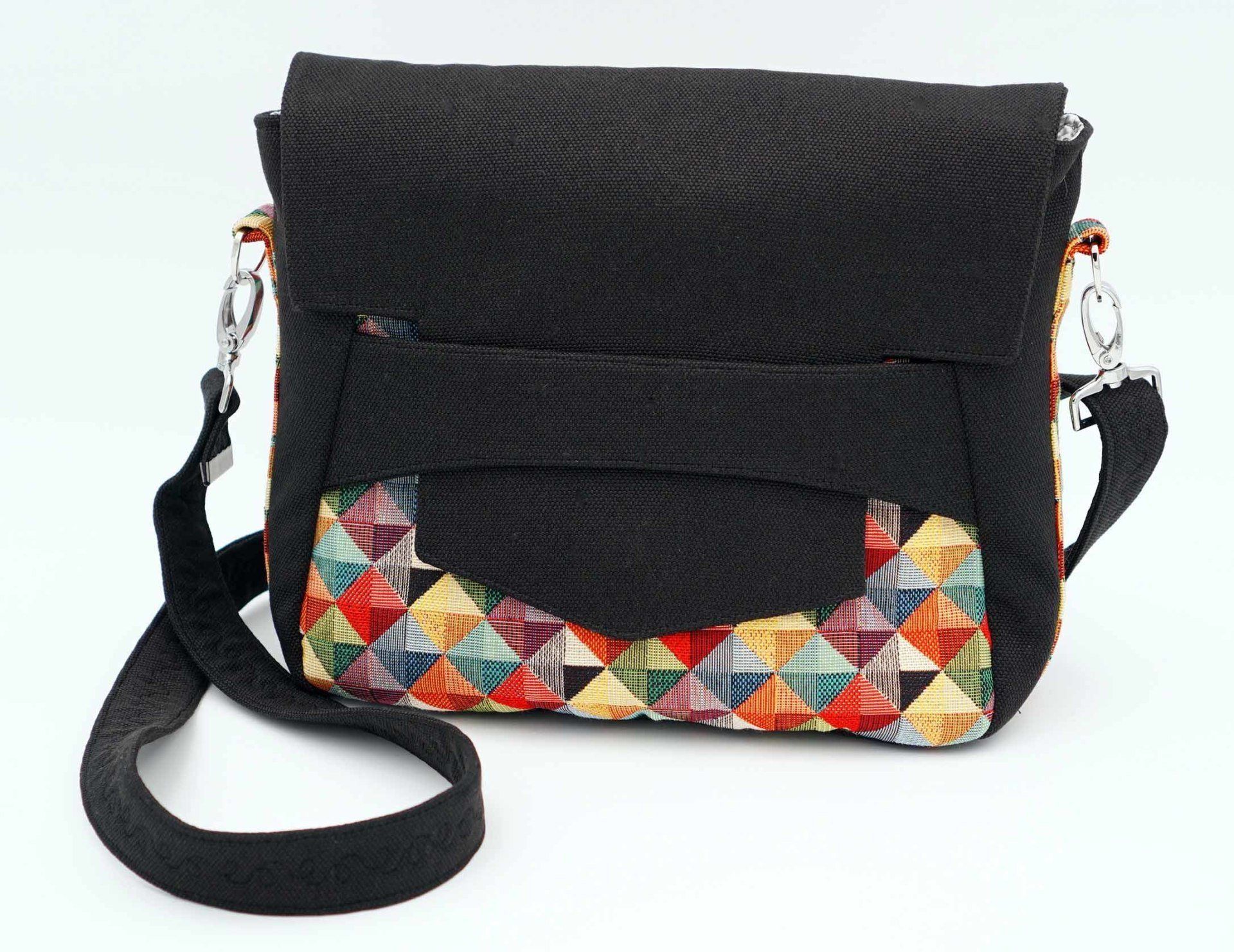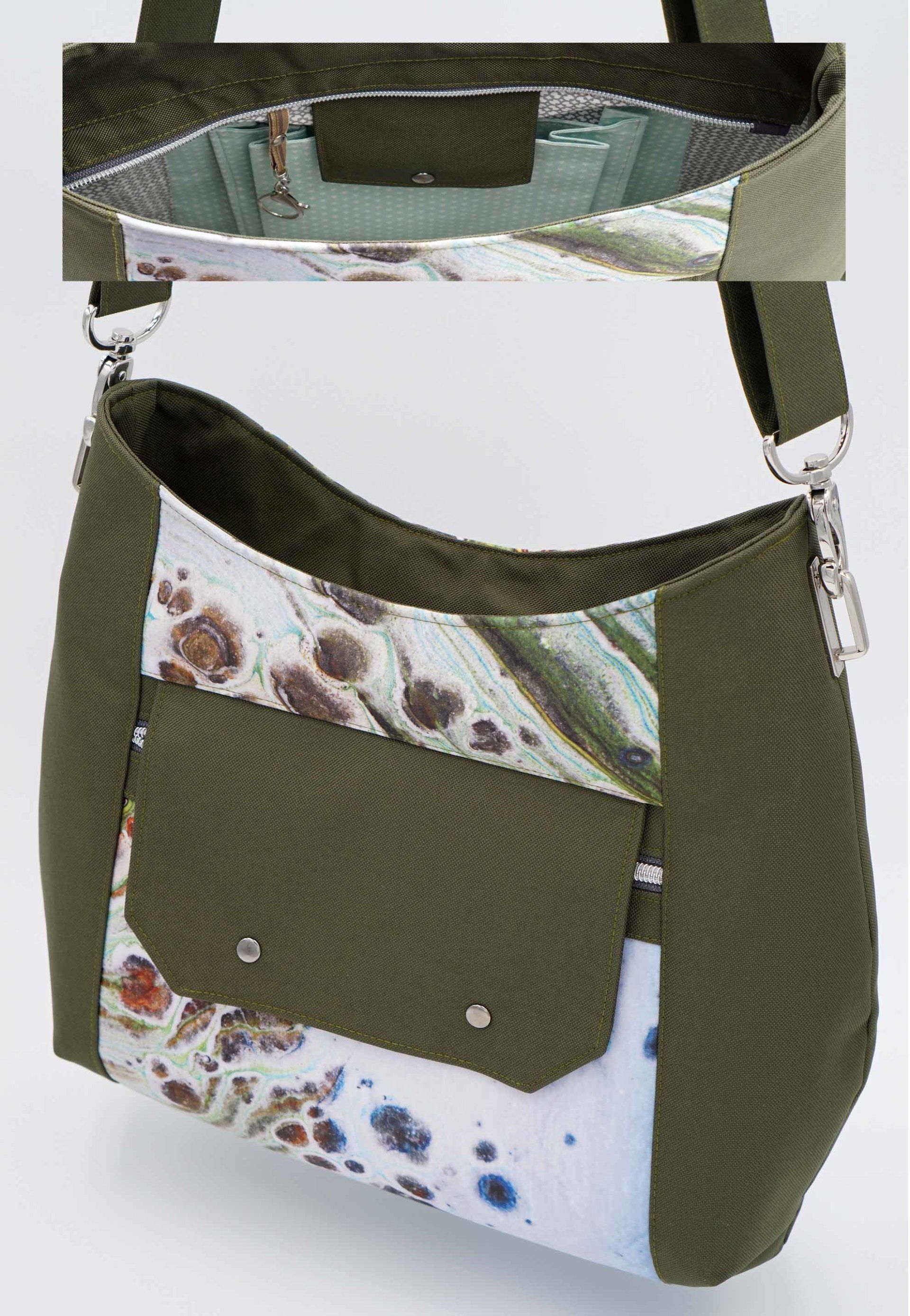 ButtonTasche Sadie (Swoonpatterns), 22x33x7 cm, Material Baumwolle/Kunstleder, Innenfutter Baumwolle, Außen- und Innentasche, Erweiterungsfalte unten mit Reißverschluß, Magnetknopf außen