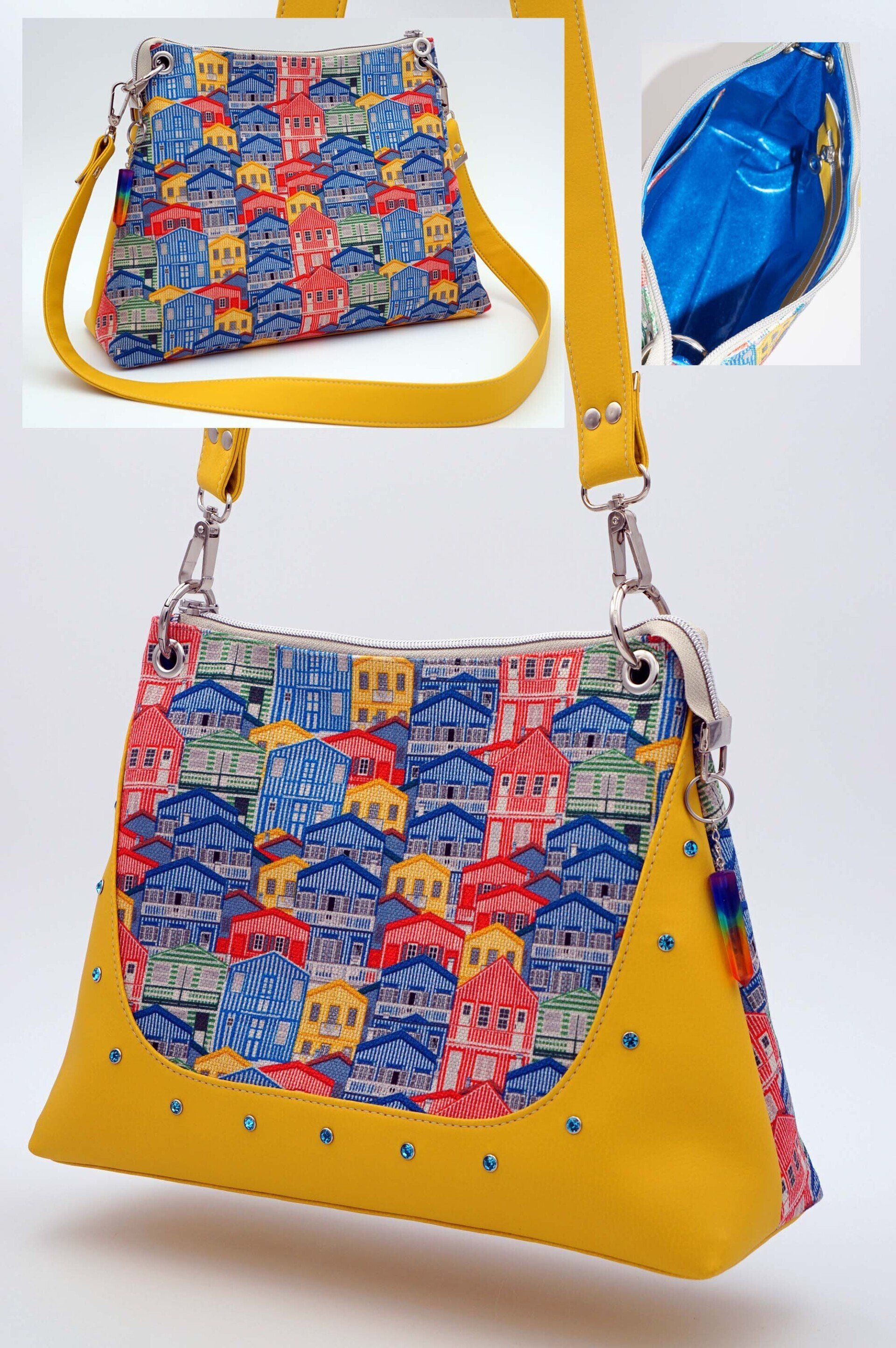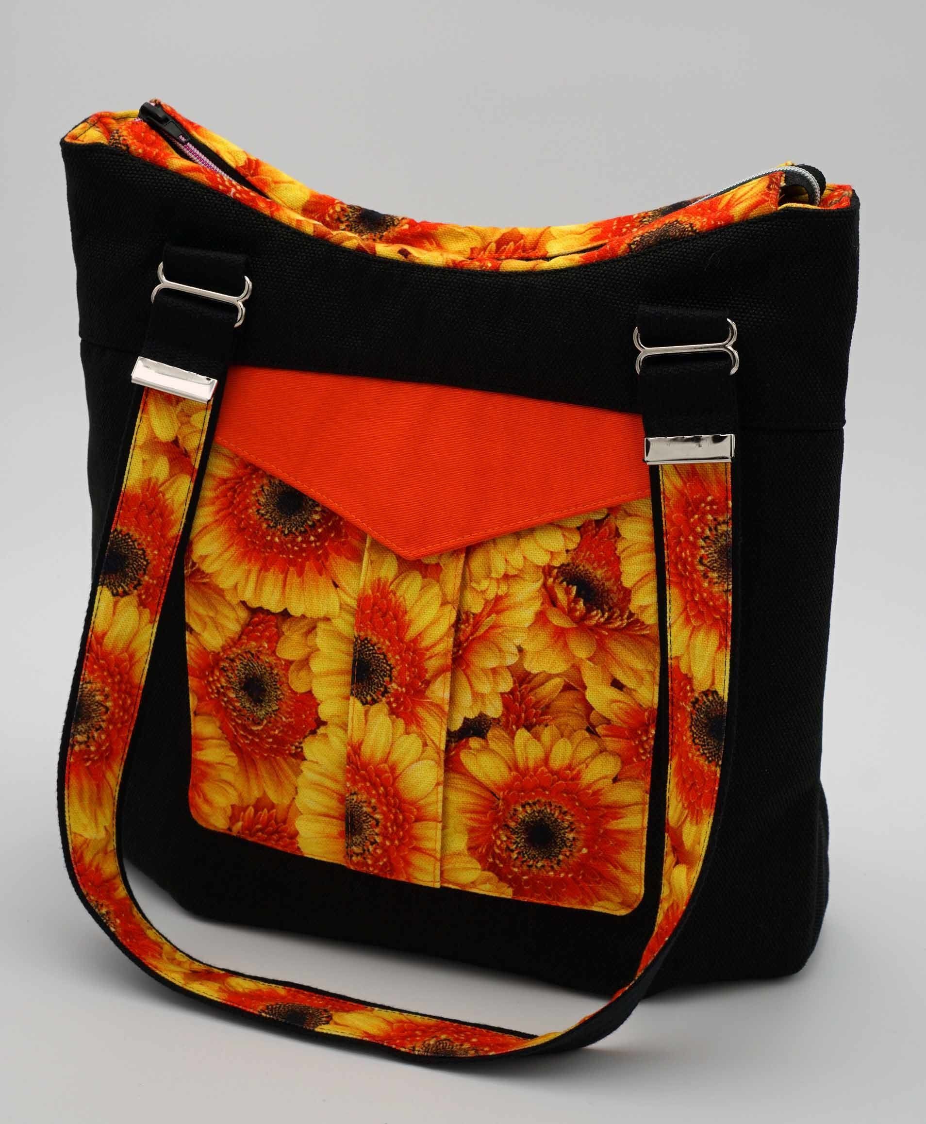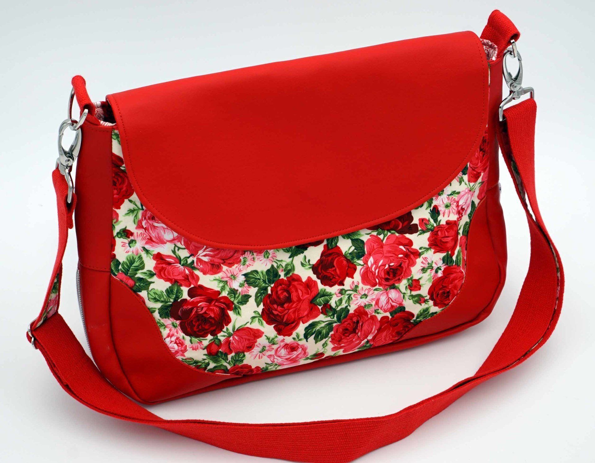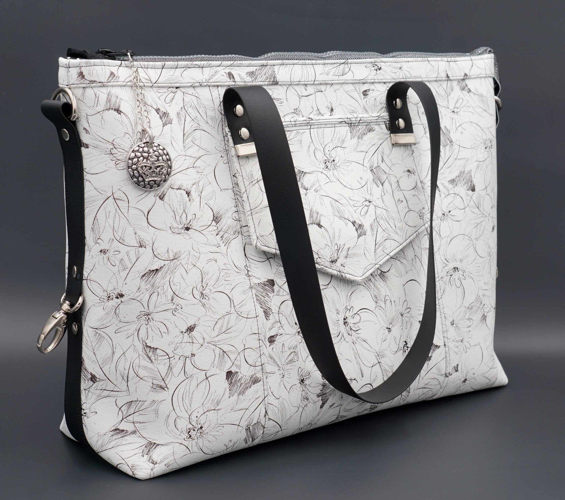 ButtonTasche Sadie (Swoonpatterns), 22x33x7 cm, Material Baumwolle/Kunstleder, Innenfutter Baumwolle, Außen- und Innentasche, Erweiterungsfalte unten mit Reißverschluß, Magnetknopf außen