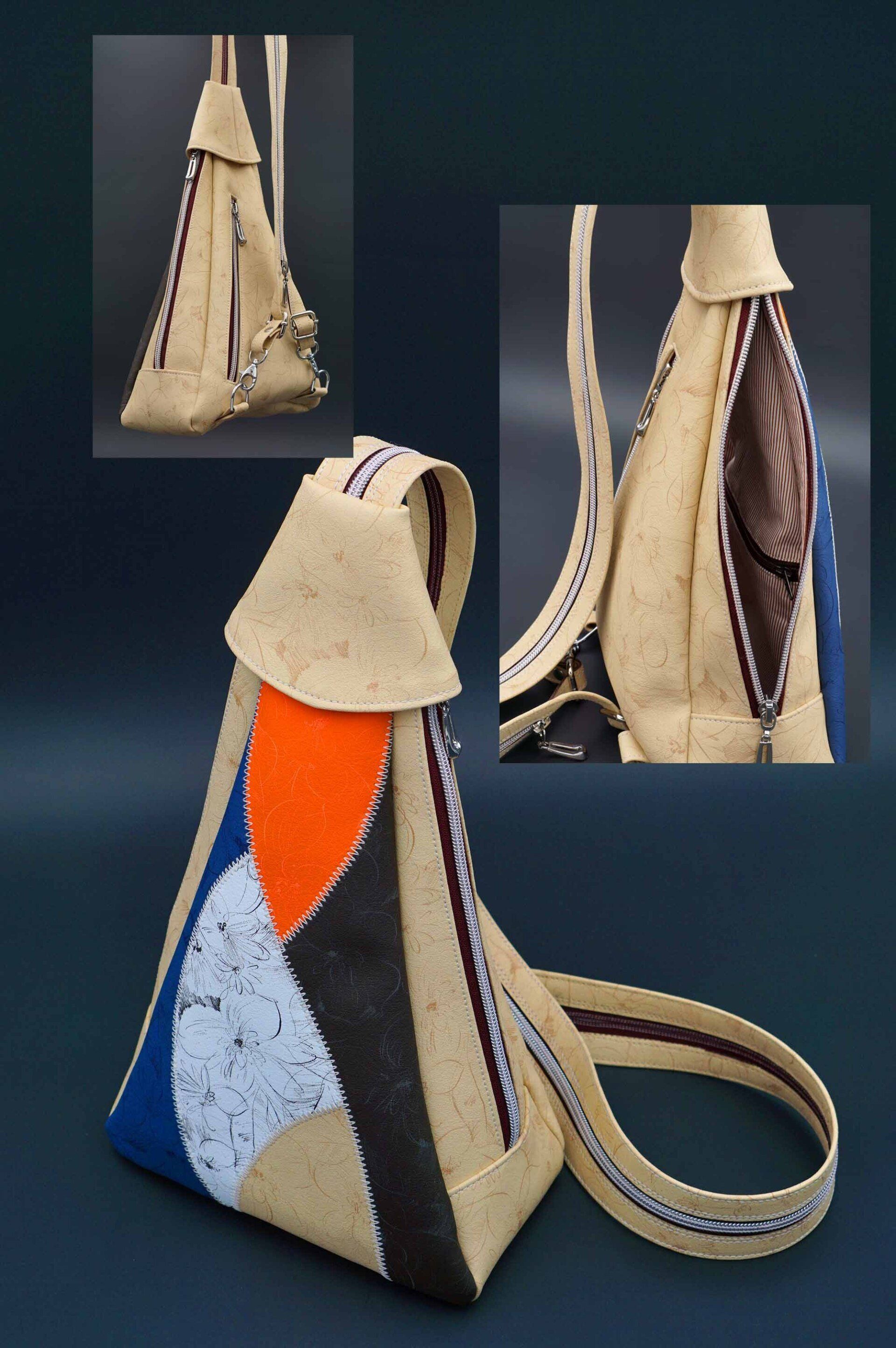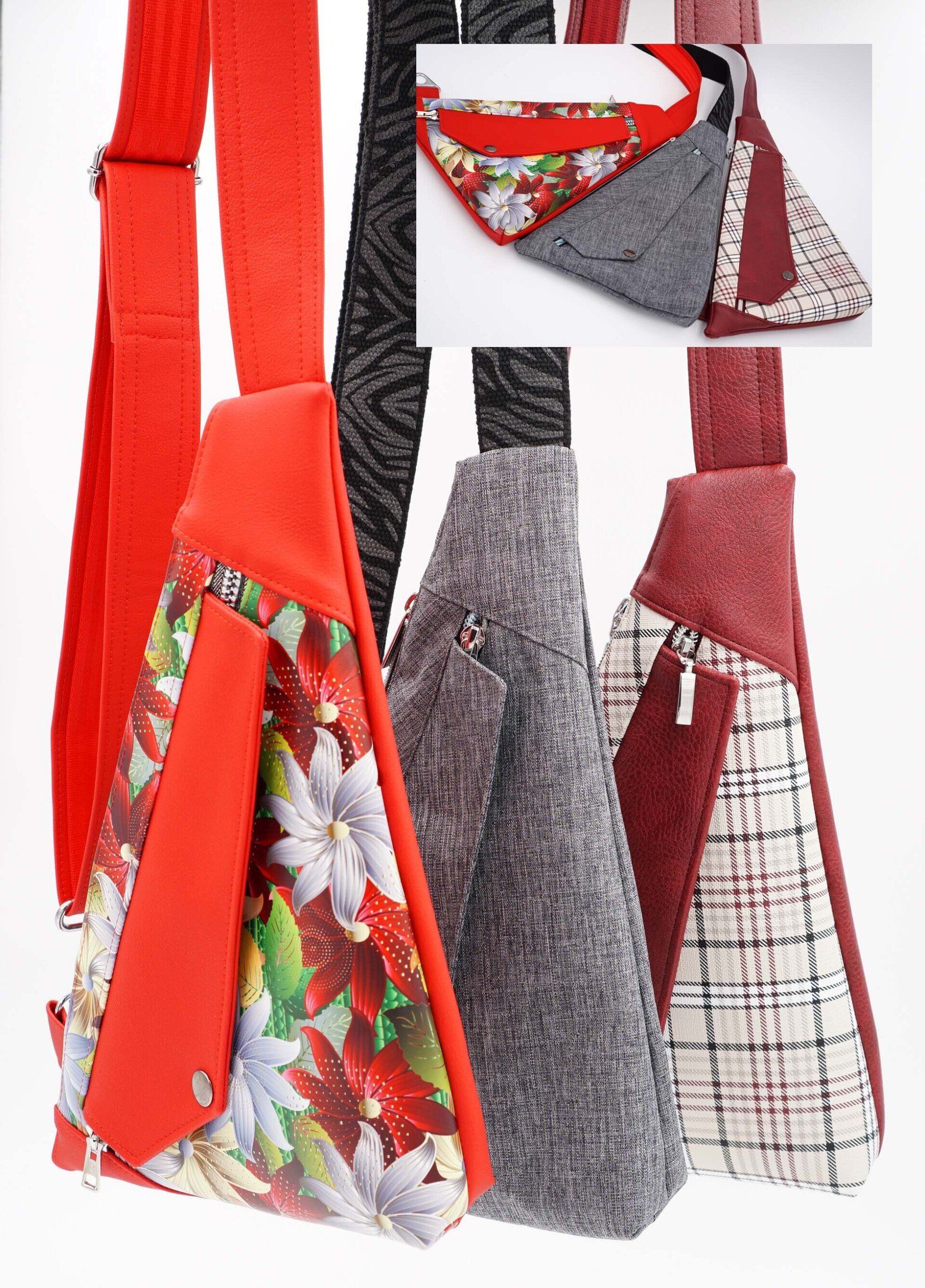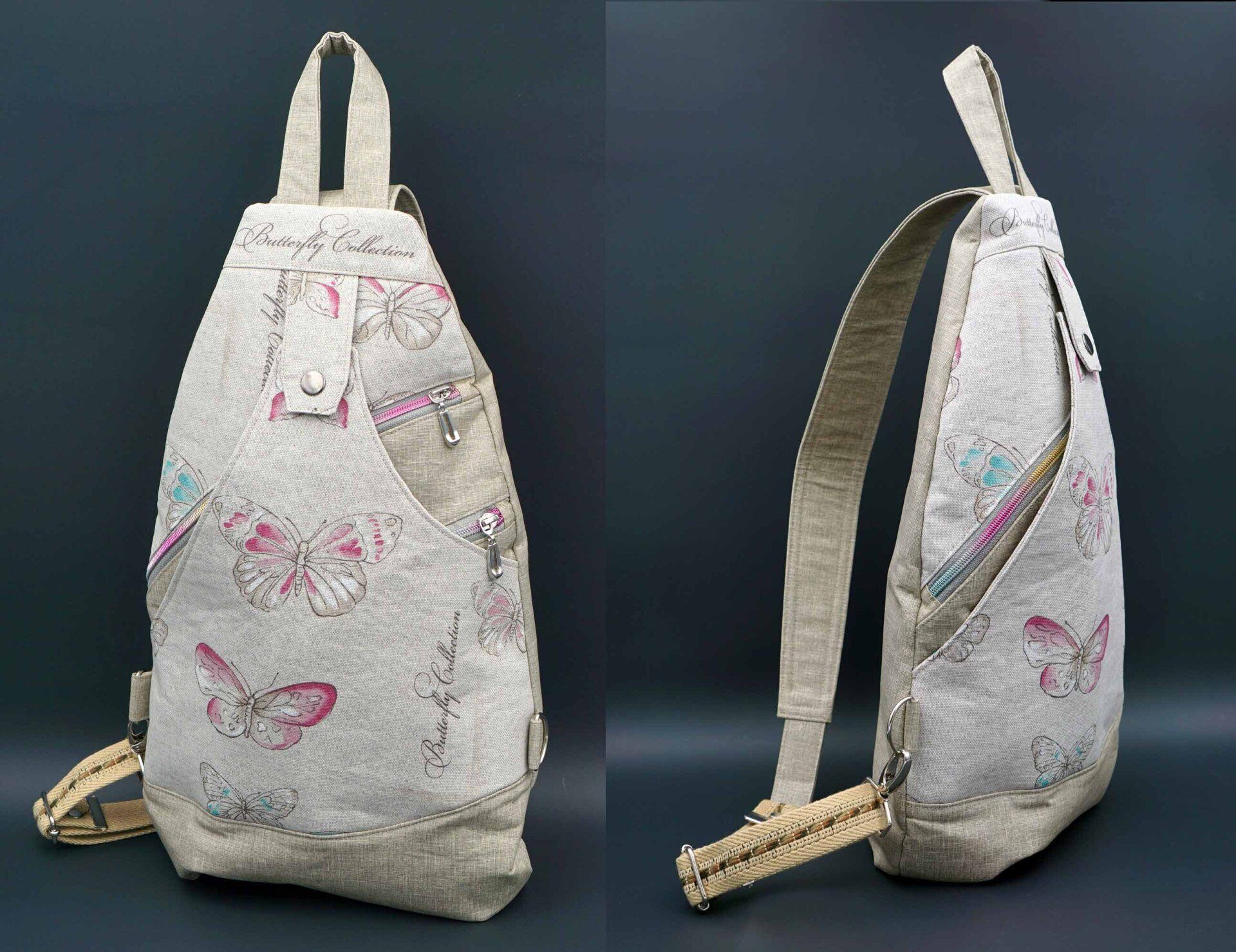 ButtonMaggy55 Pattern-Kerry Sling Pack mit Reißverschluß, 20x35x8 cm, Material Kunstleder, Innenfutter Baumwolle, Außen RV, Innen RV- und Steckfach, Applikation Front, kann als Slingbag oder Rucksack getragen werden