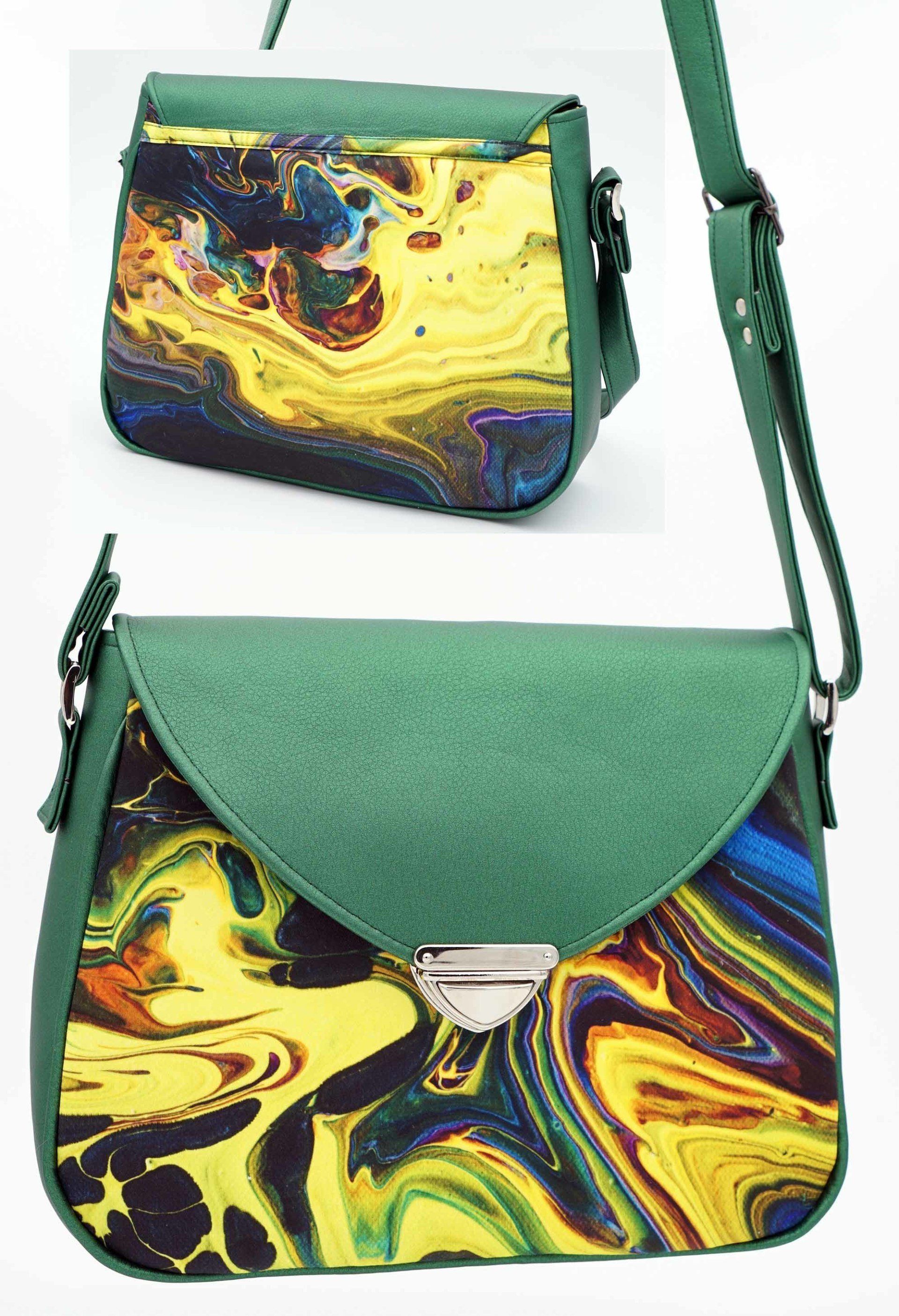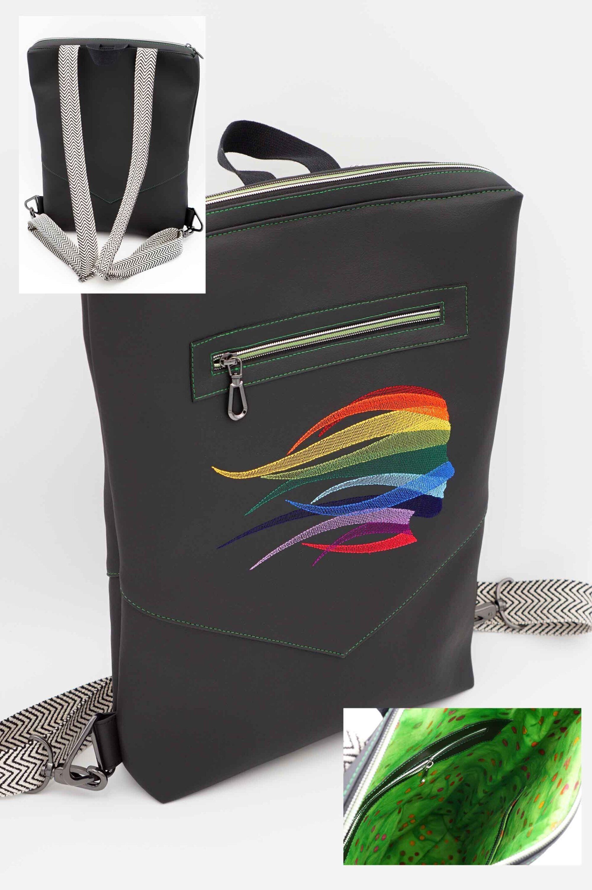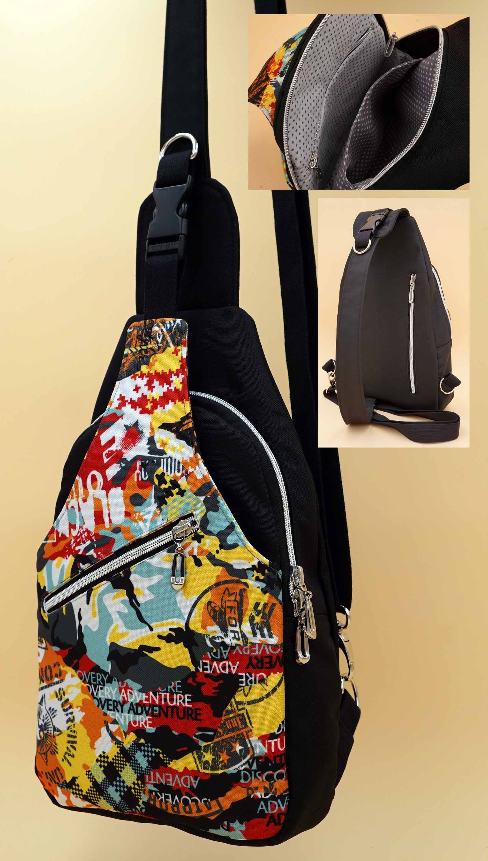 ButtonMaggy55 Pattern-Kerry Sling Pack mit Reißverschluß, 20x35x8 cm, Material Kunstleder, Innenfutter Baumwolle, Außen RV, Innen RV- und Steckfach, Applikation Front, kann als Slingbag oder Rucksack getragen werden