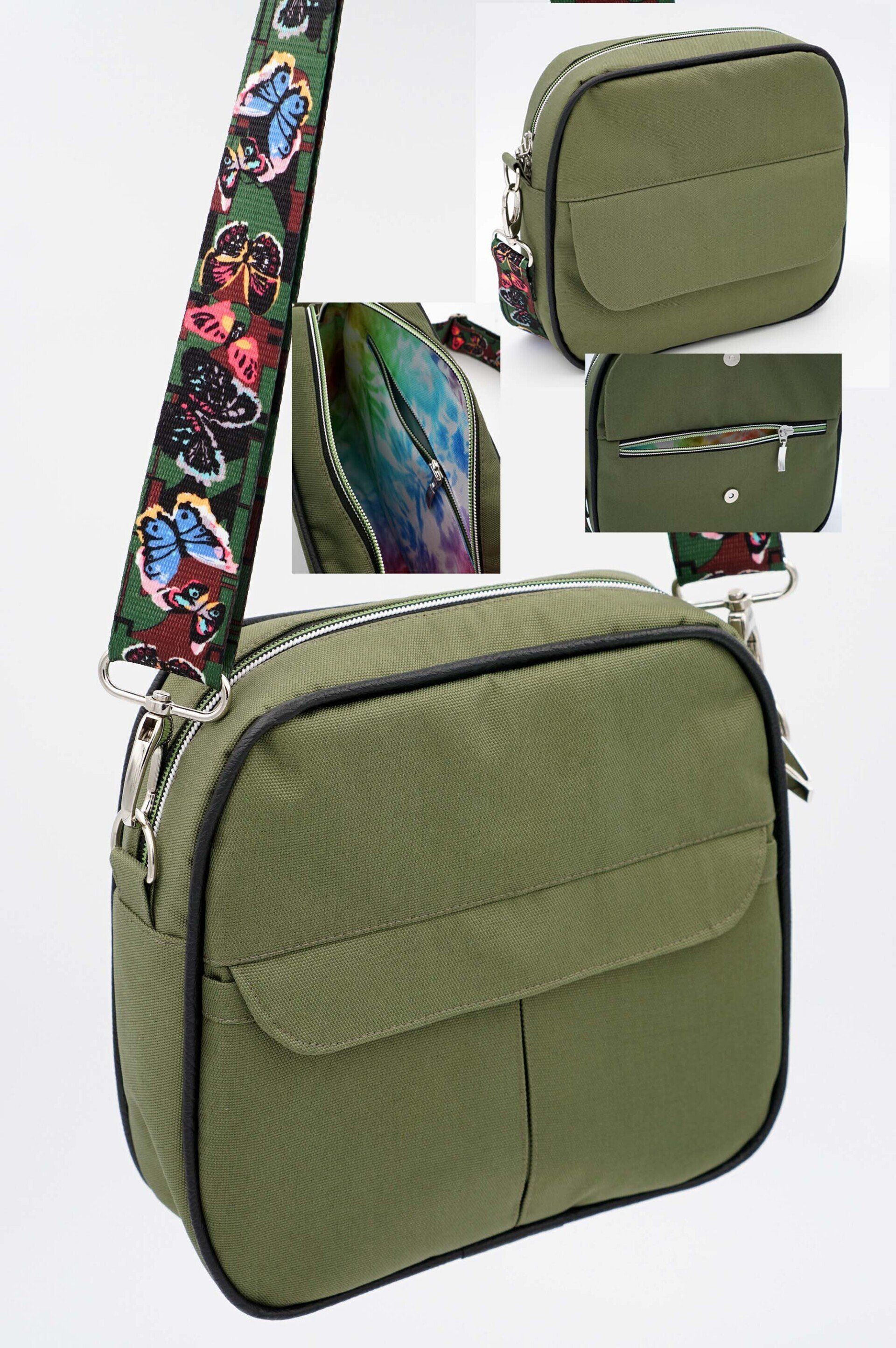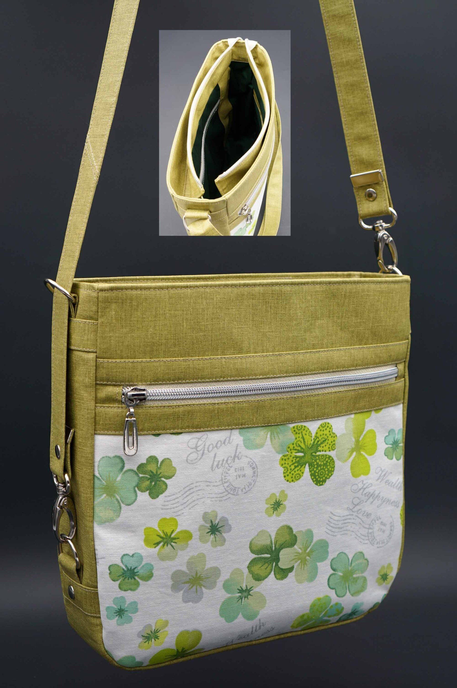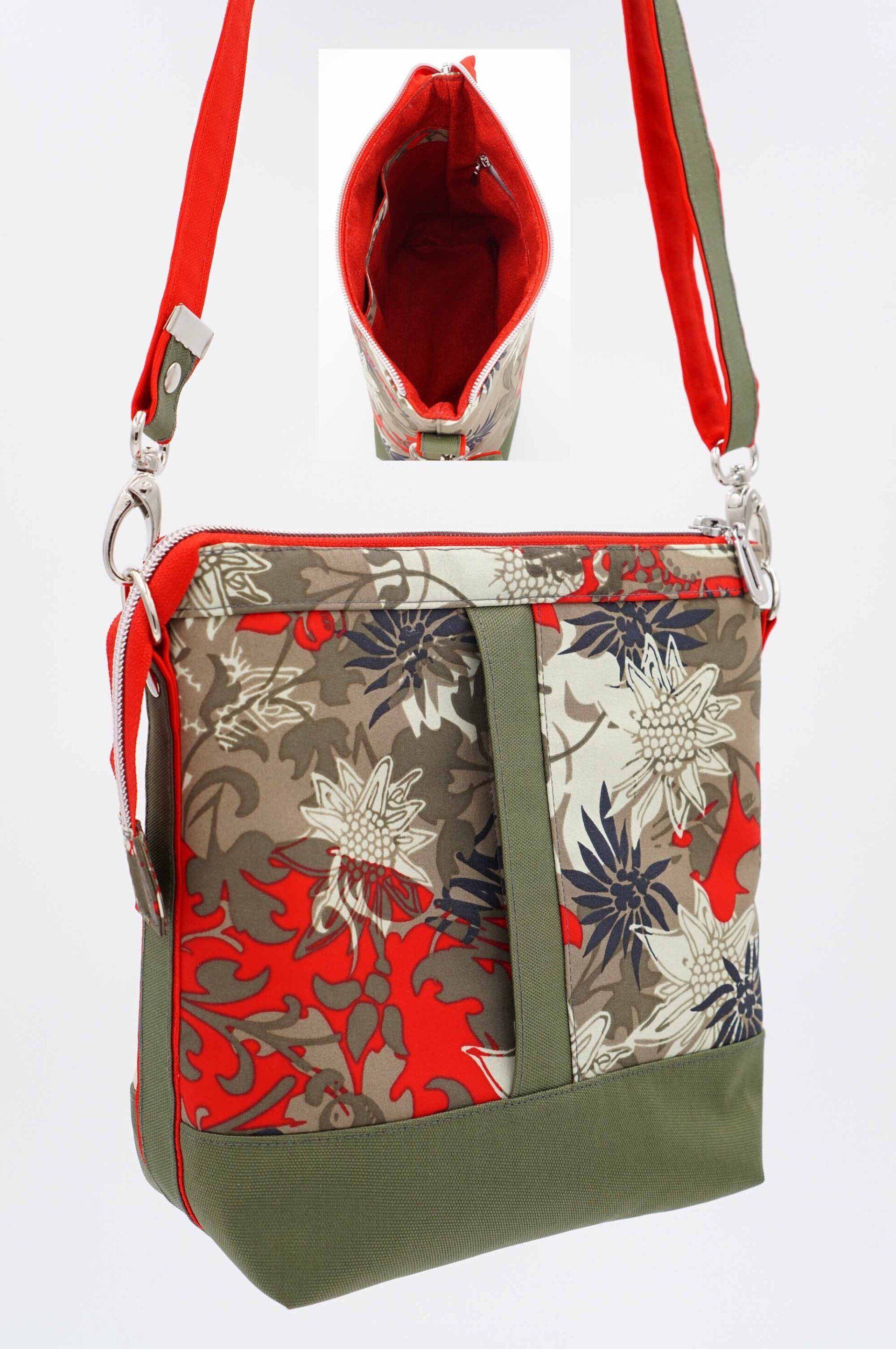 ButtonSteffmana Crossbag mit Reißverschluß und verstellbarem Gurt, 25x25x8 cm, Material beschichtete Baumwolle, Innenfutter Baumwolle, zus. Innen RV- und Steckfach und Außen RV-Fach
