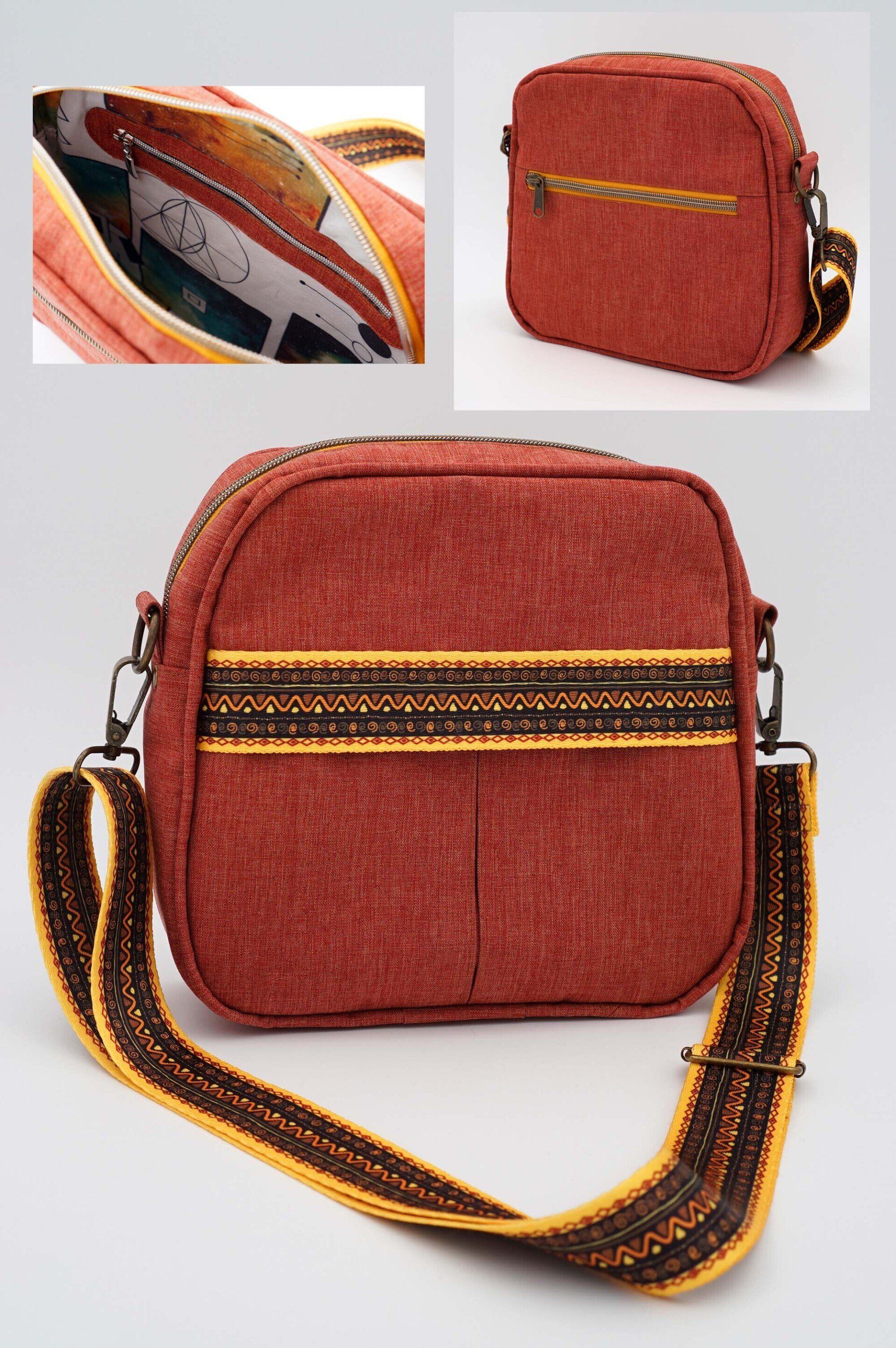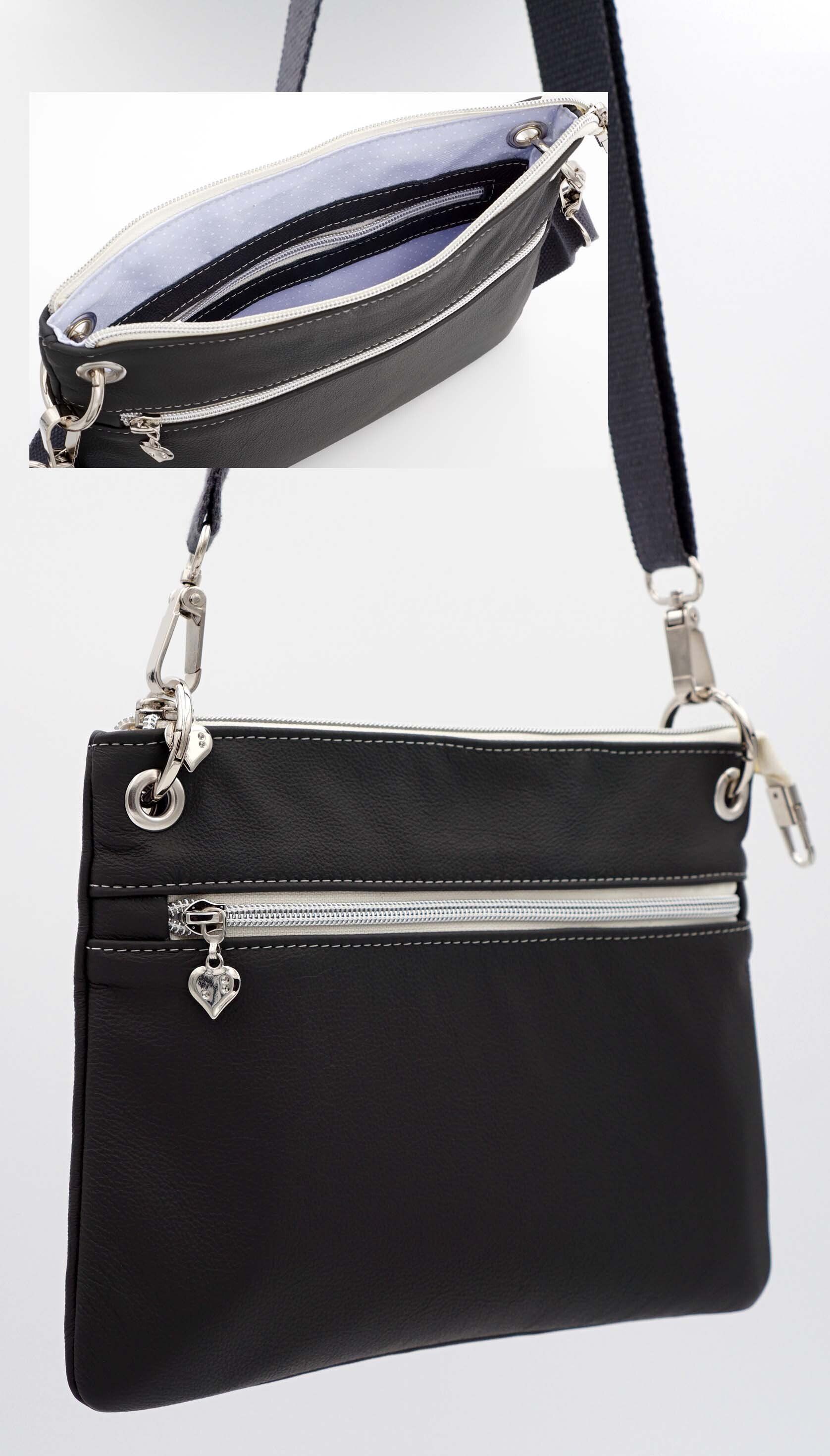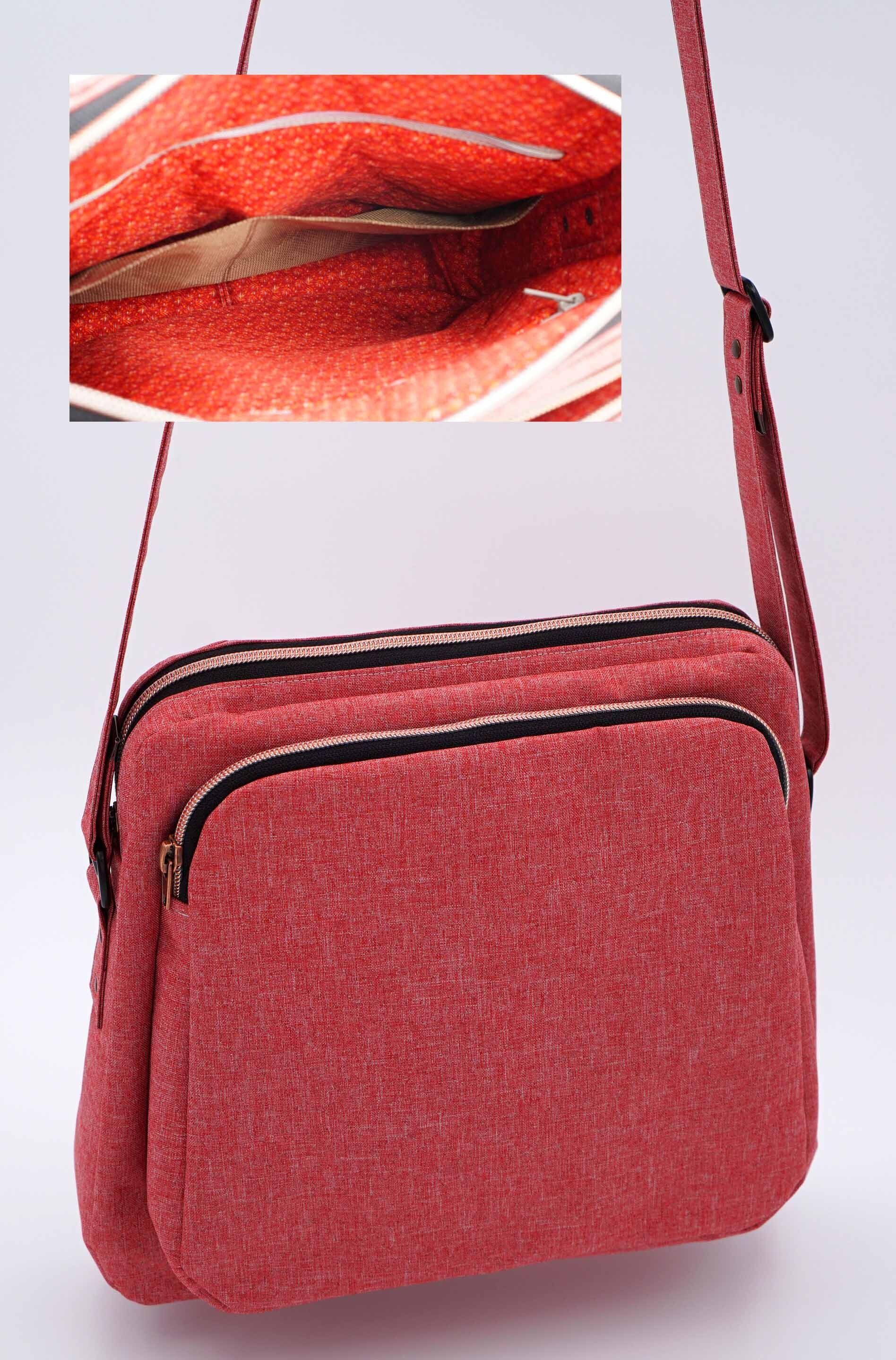 ButtonSteffmana Crossbag mit Reißverschluß und verstellbarem Gurt, 25x25x8 cm, Material beschichtete Baumwolle, Innenfutter Baumwolle, zus. Innen RV- und Steckfach und Außen RV-Fach
