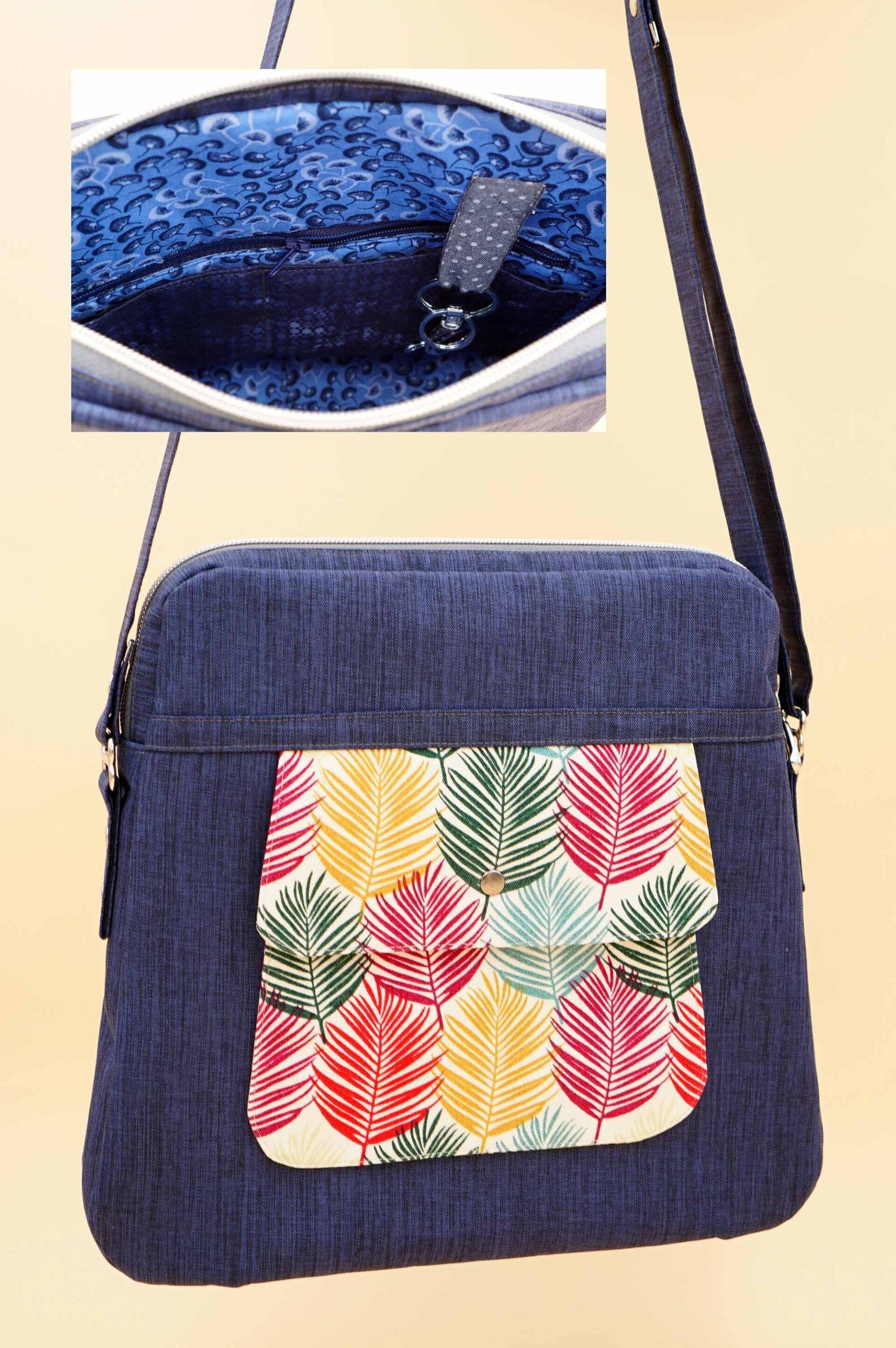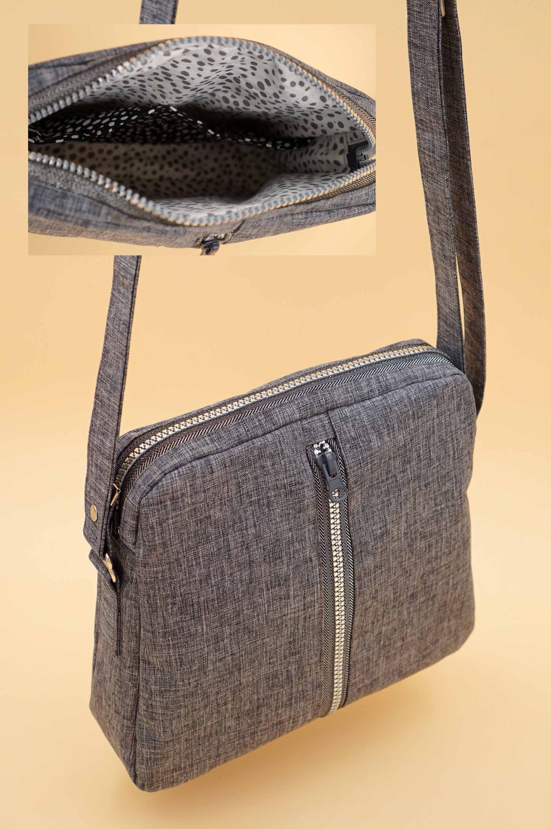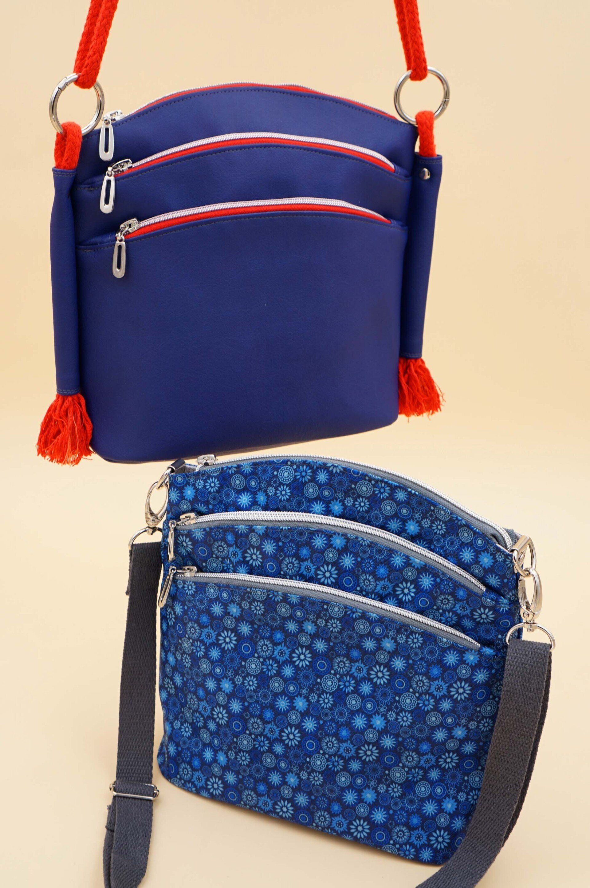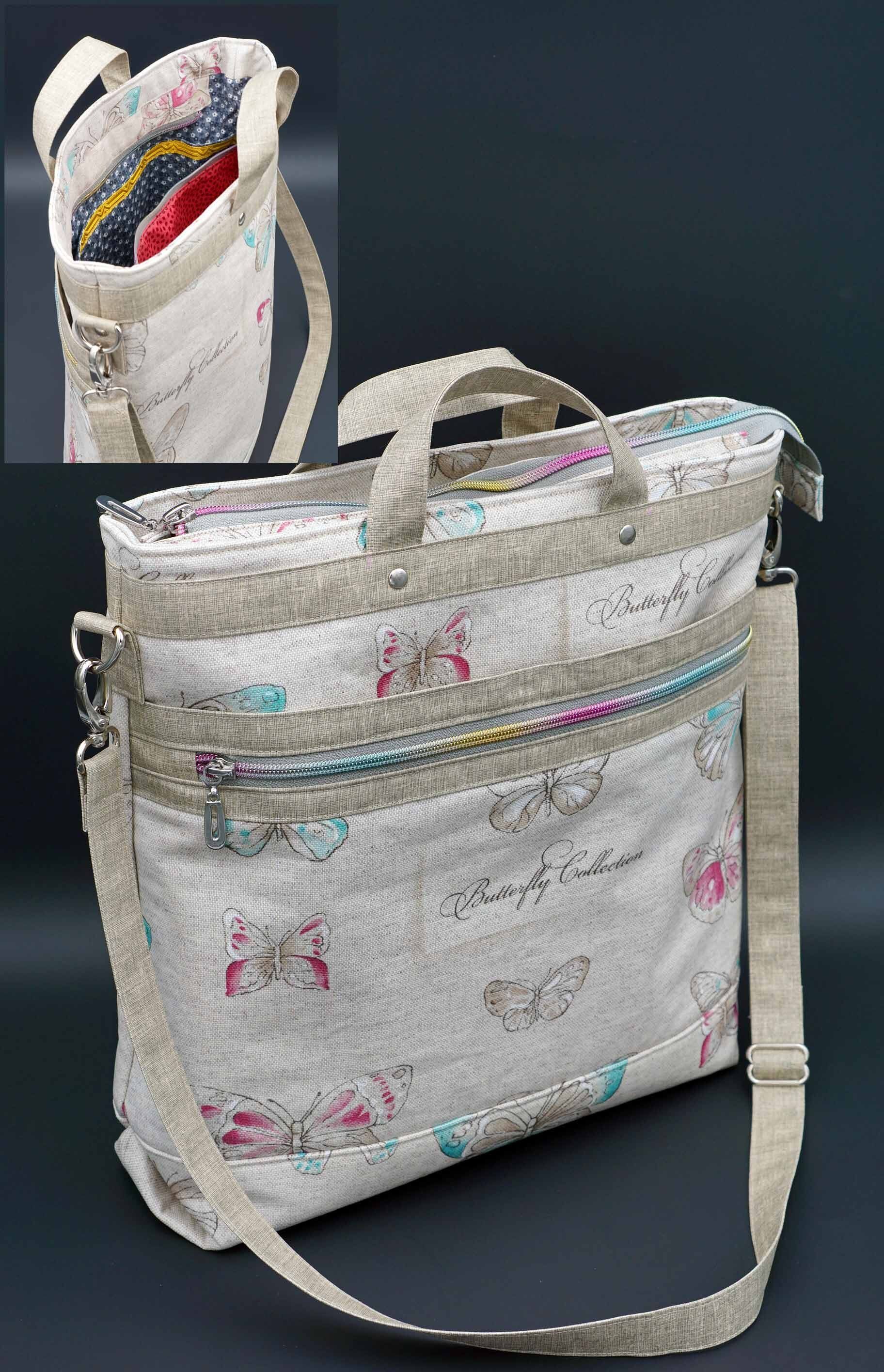 ButtonTriple Zip Bag (Sew Da Kine), 30x25x5 cm, mit Reißverschluß und Kette, Material Gobelin, Innenfutter Baumwolle, Außen- und Innentaschen