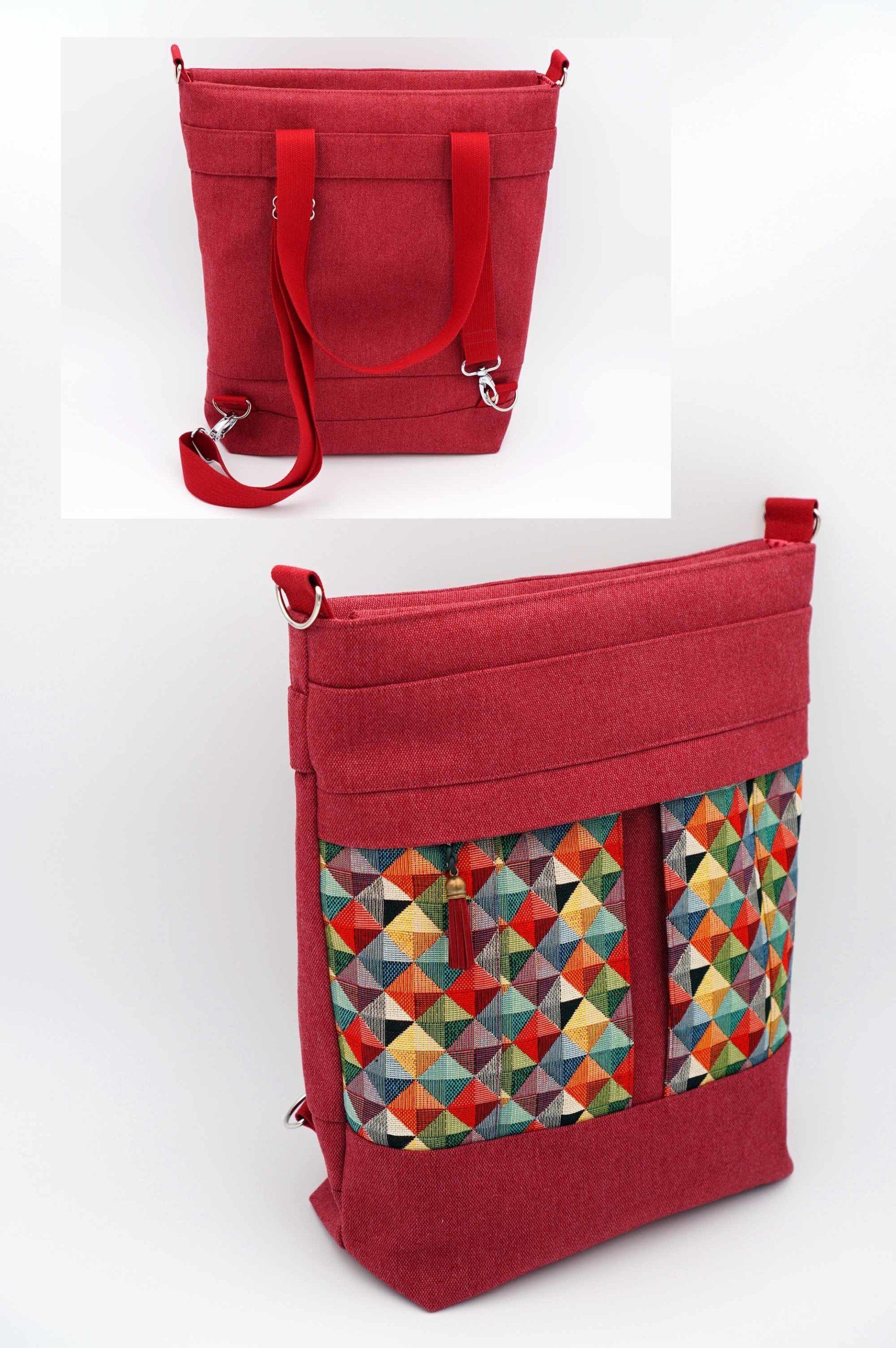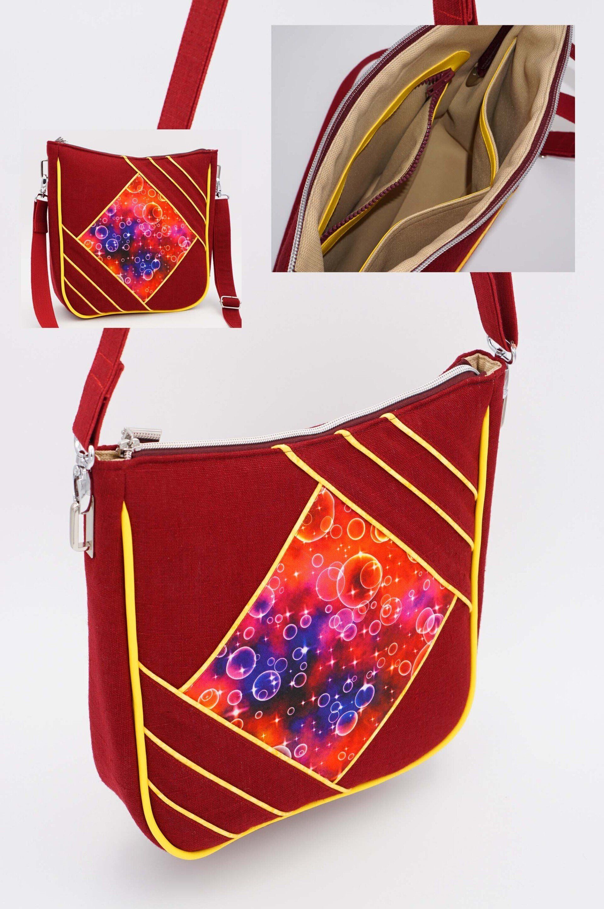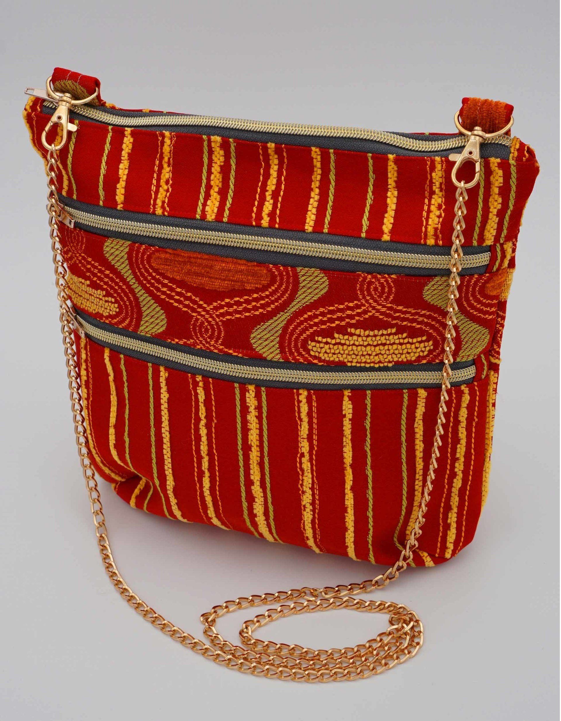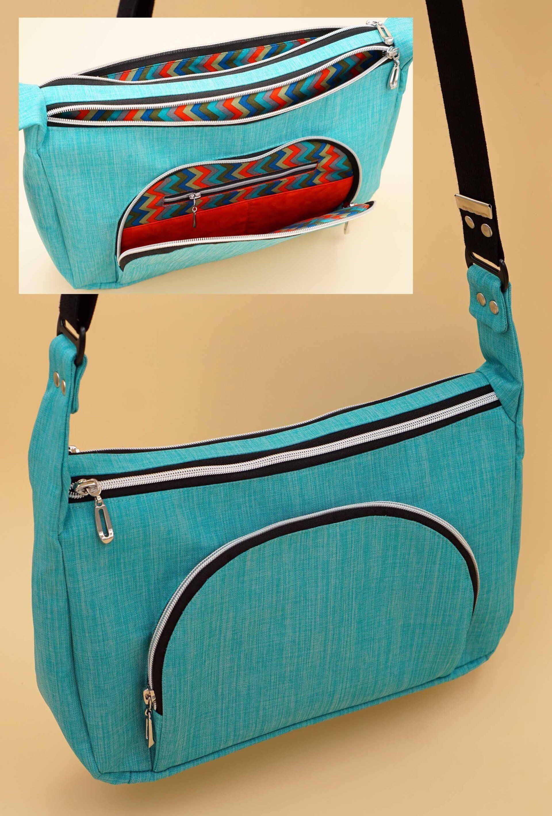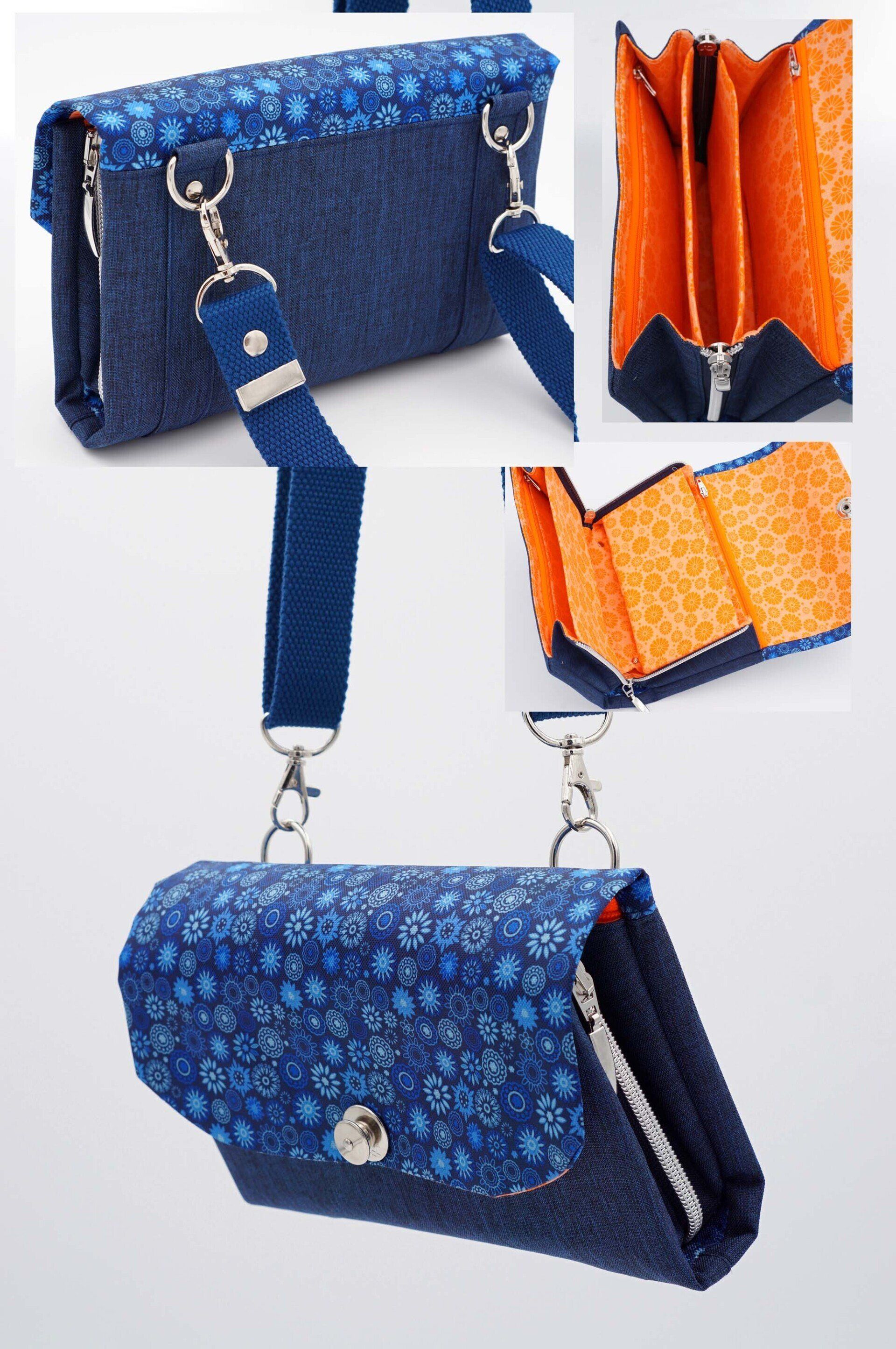 ButtonTriple Zip Bag (Sew Da Kine), 30x25x5 cm, mit Reißverschluß und Kette, Material Gobelin, Innenfutter Baumwolle, Außen- und Innentaschen