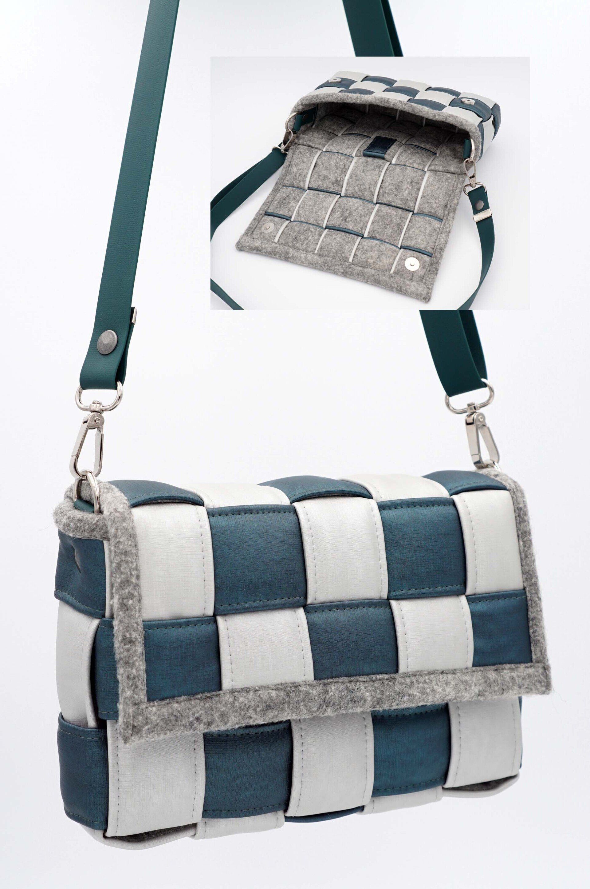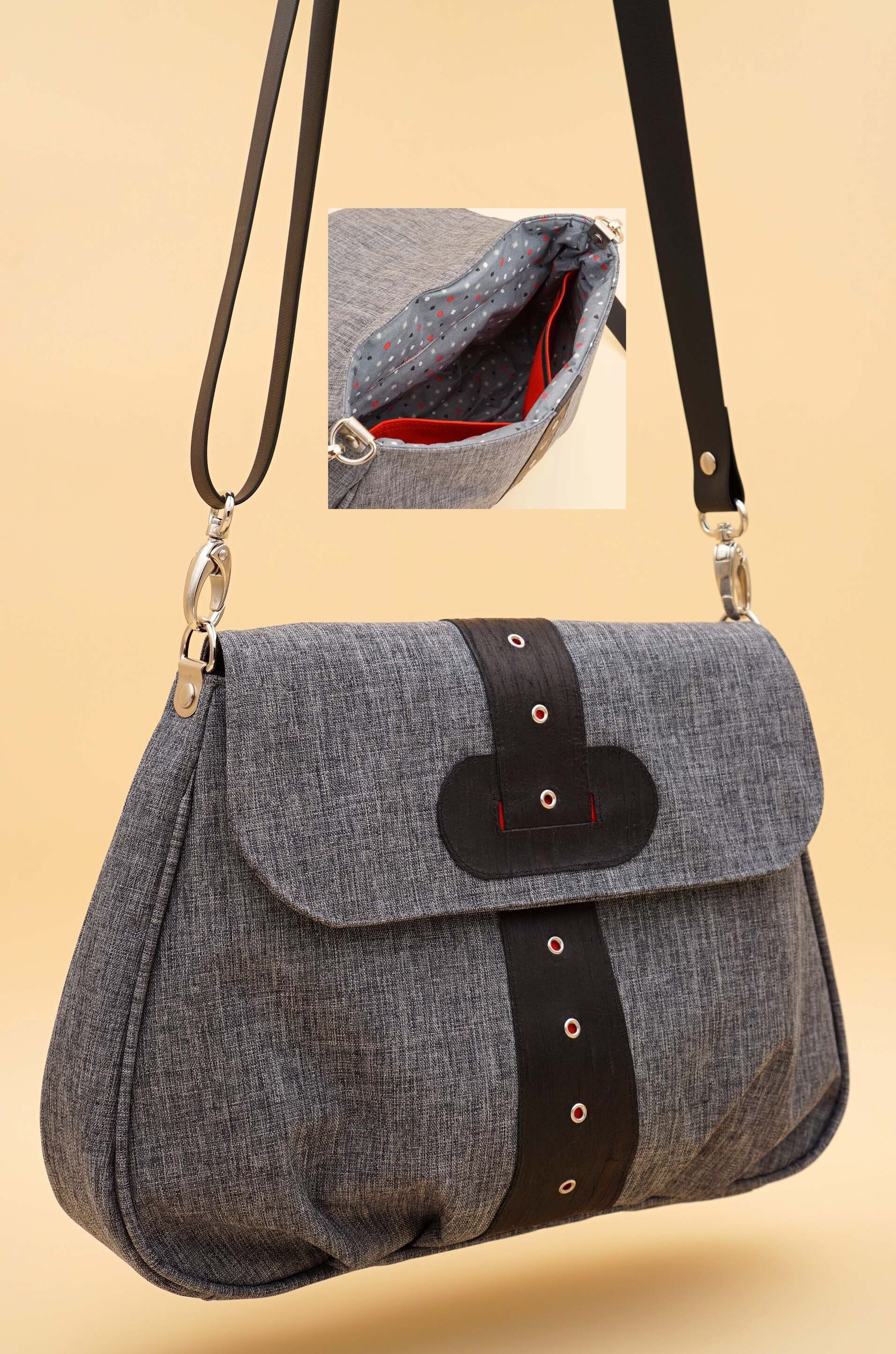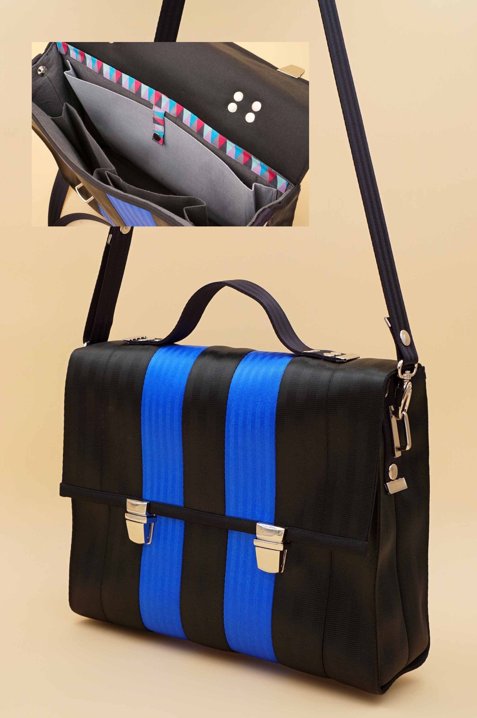 ButtonMessenger Bag mit Steckschlösser, 28x35x8 cm, Material Sicherheitsgurte, Innenfutter Baumwolle, Innen Steckfächer, mit verstellbarem Tragegurt