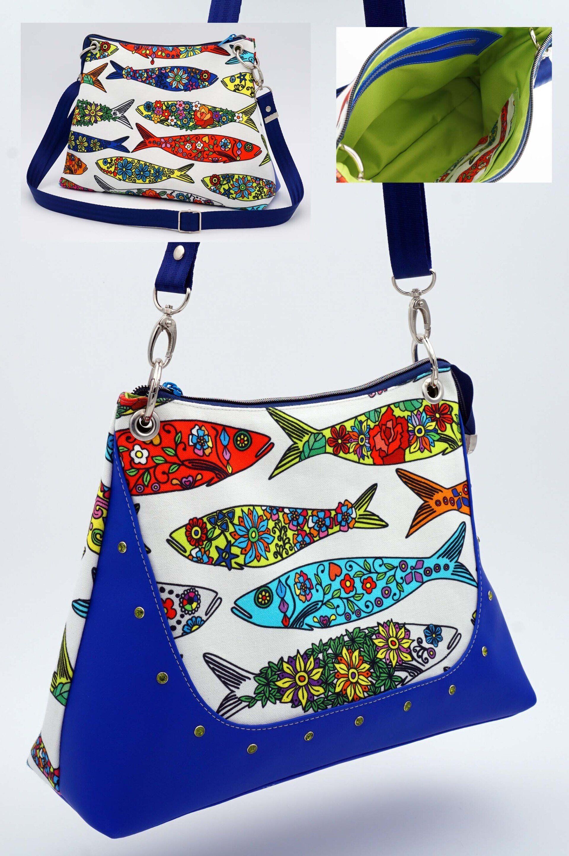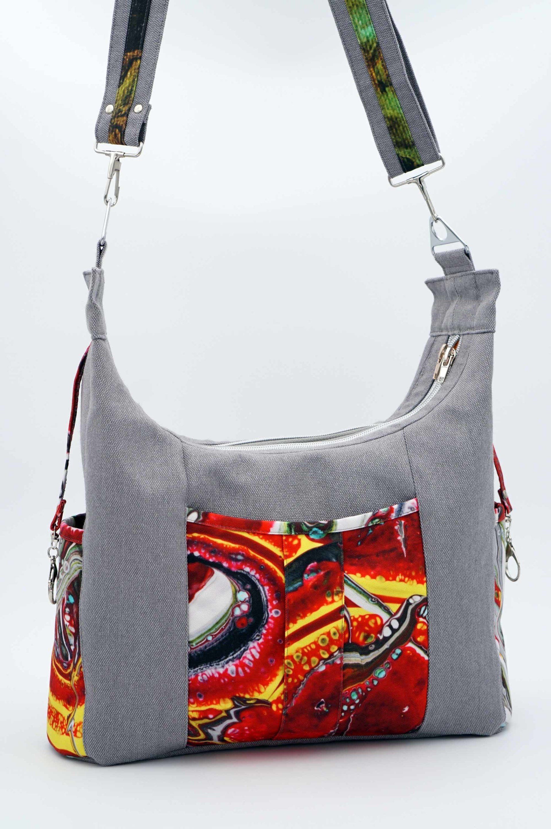 ButtonUnikati Slingbag Malea mit Reißverschluß, 46x30x6 cm, Material beschichtete Baumwolle, Innenfutter Baumwolle, Innen RV- und Steckfach, Außen RV- und Steckfach