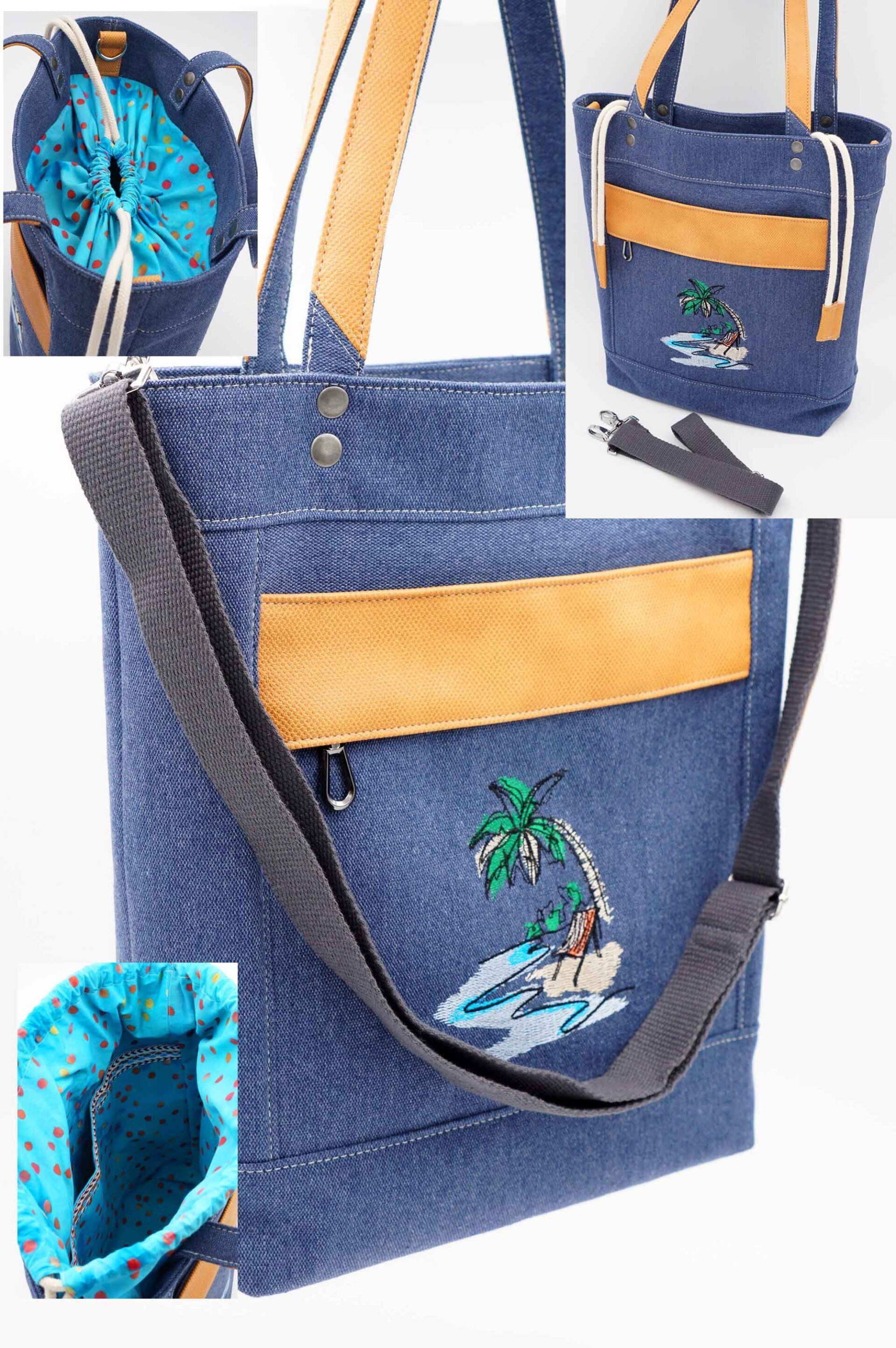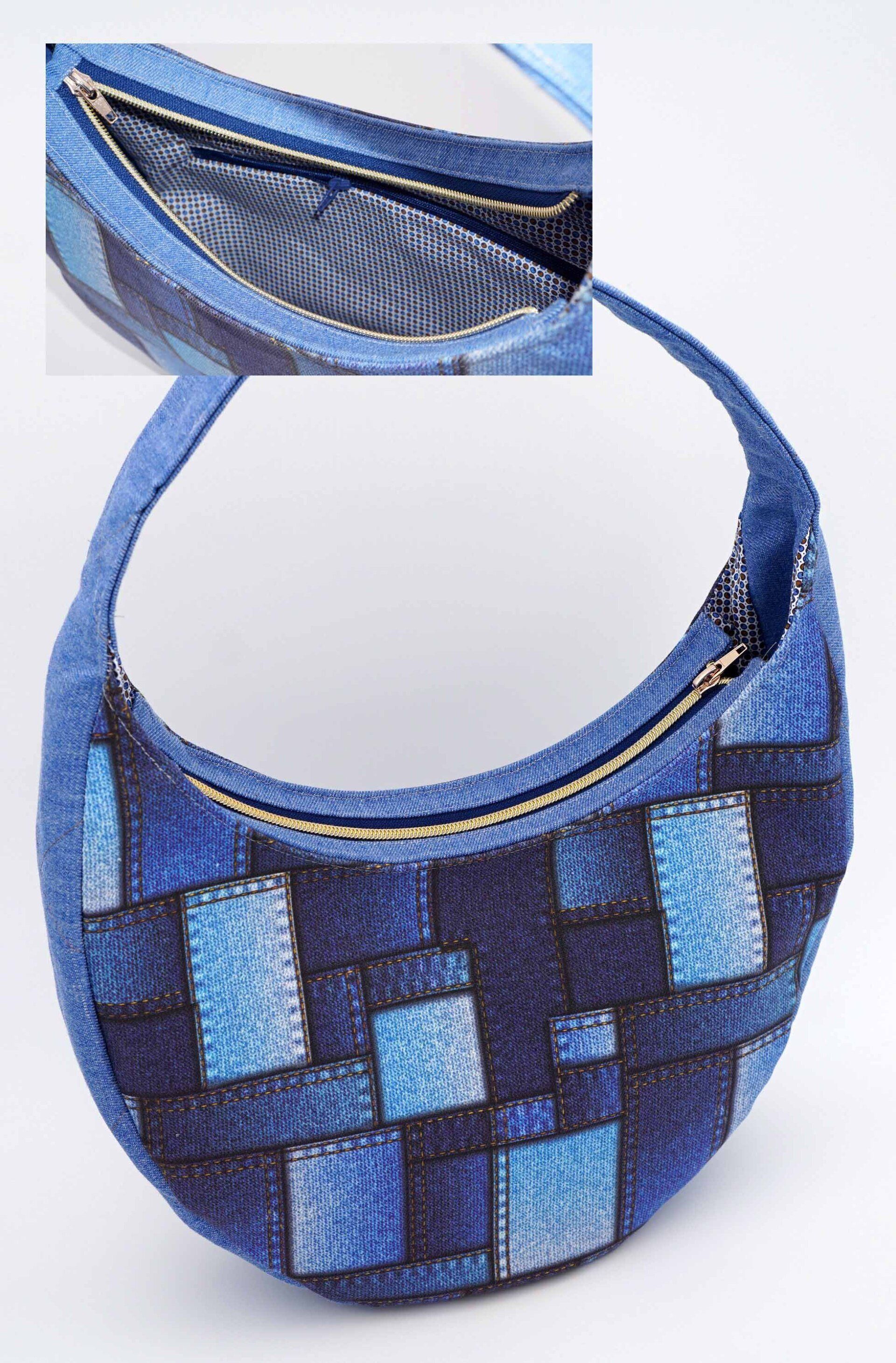 ButtonSpencer Ogg "Inner Circle Bag" mit Reißverschluß (optional längerer Henkel möglich), 24x46x8 cm, Material Jeansstoff, Innenfutter Baumwolle, innen großes Steck- und RV-Fach