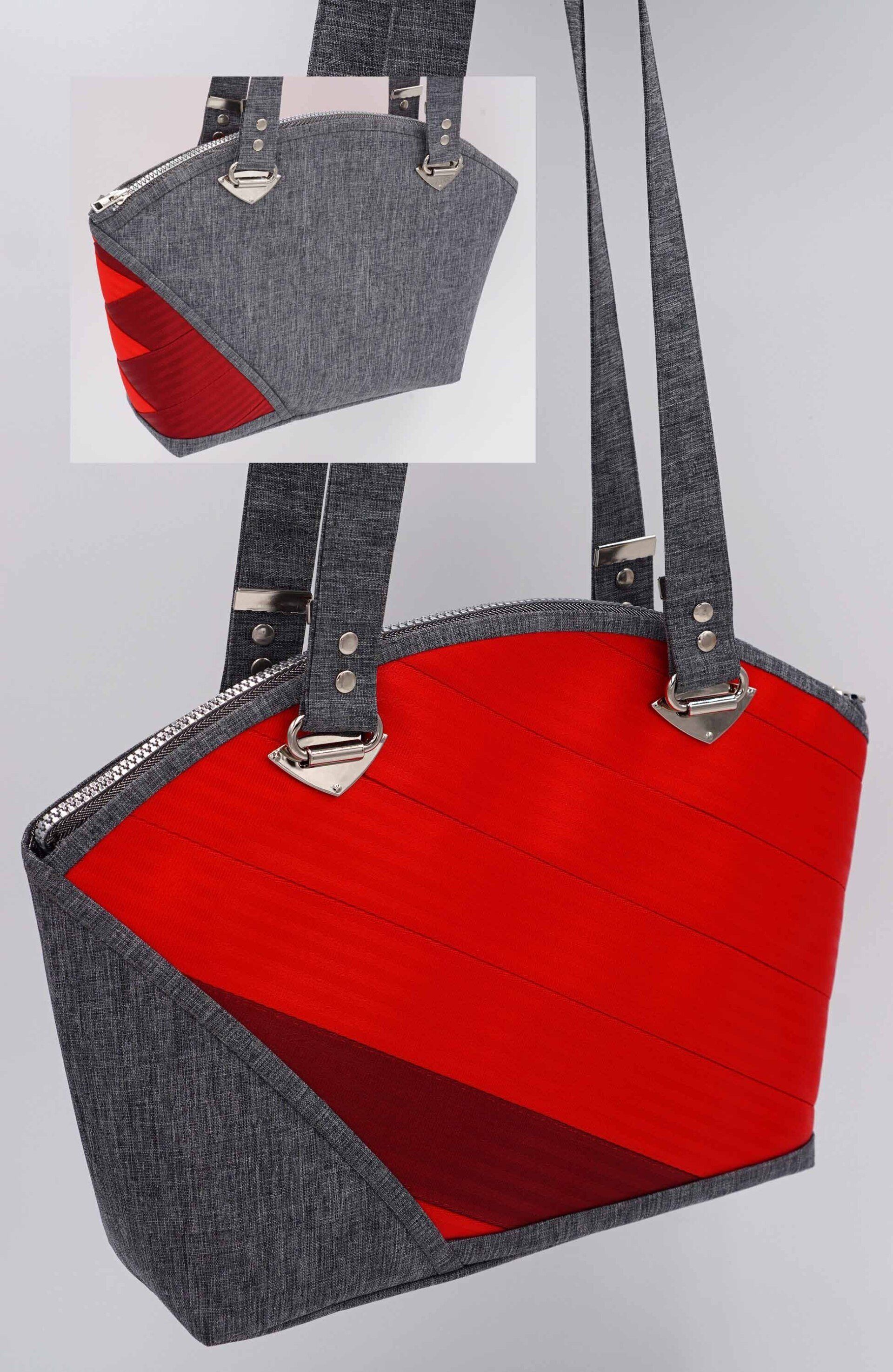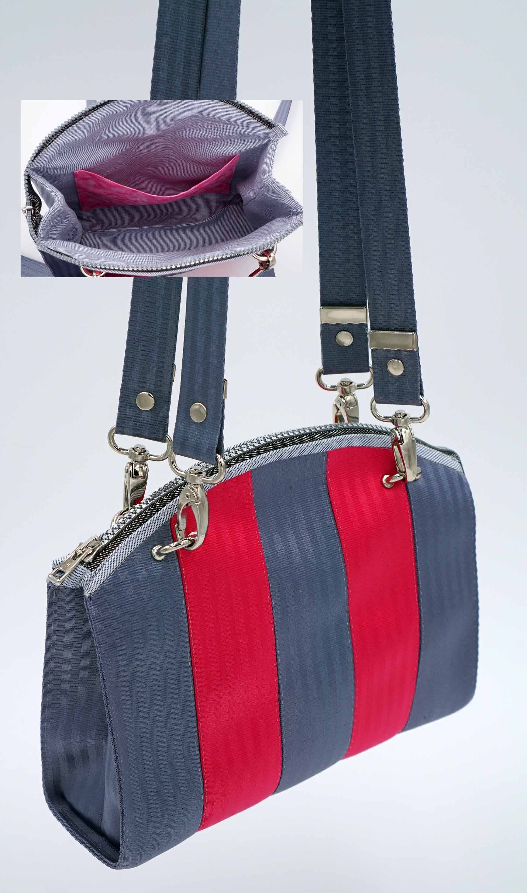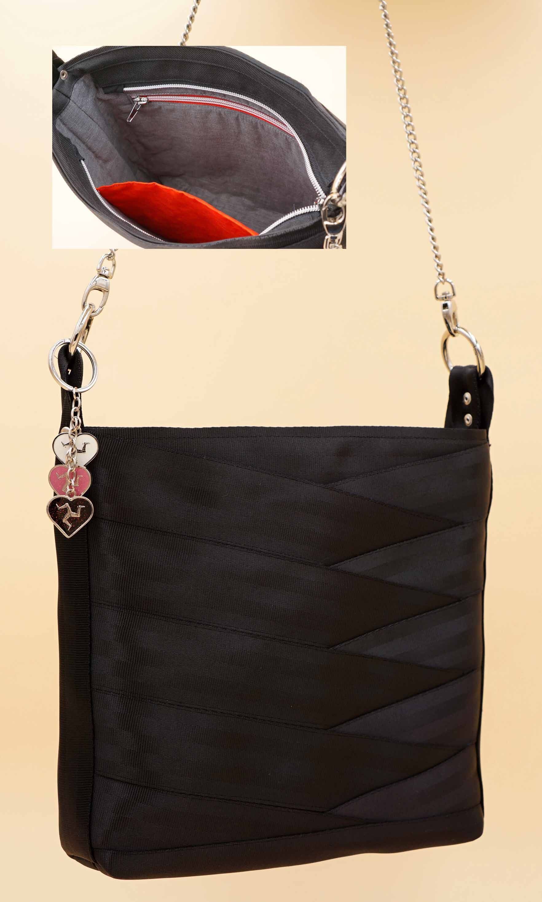 ButtonSeatbelt-Tasche mit Reißverschluß, 30x25x5 cm, Material Sicherheitsgurte, Innenfutter Baumwolle, RV-Fach und Steckfach innen, Taschenkette (Anhänger optional)