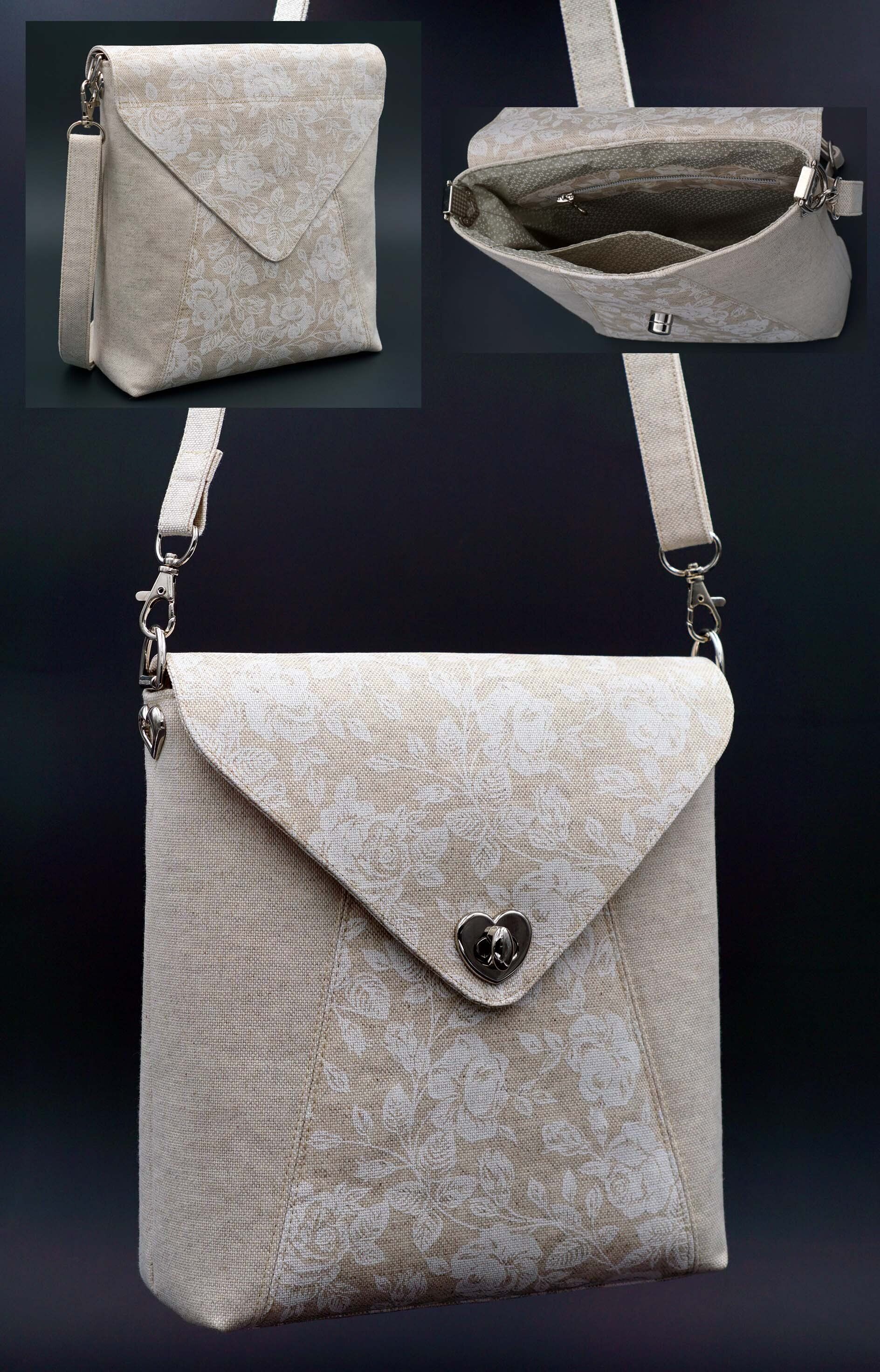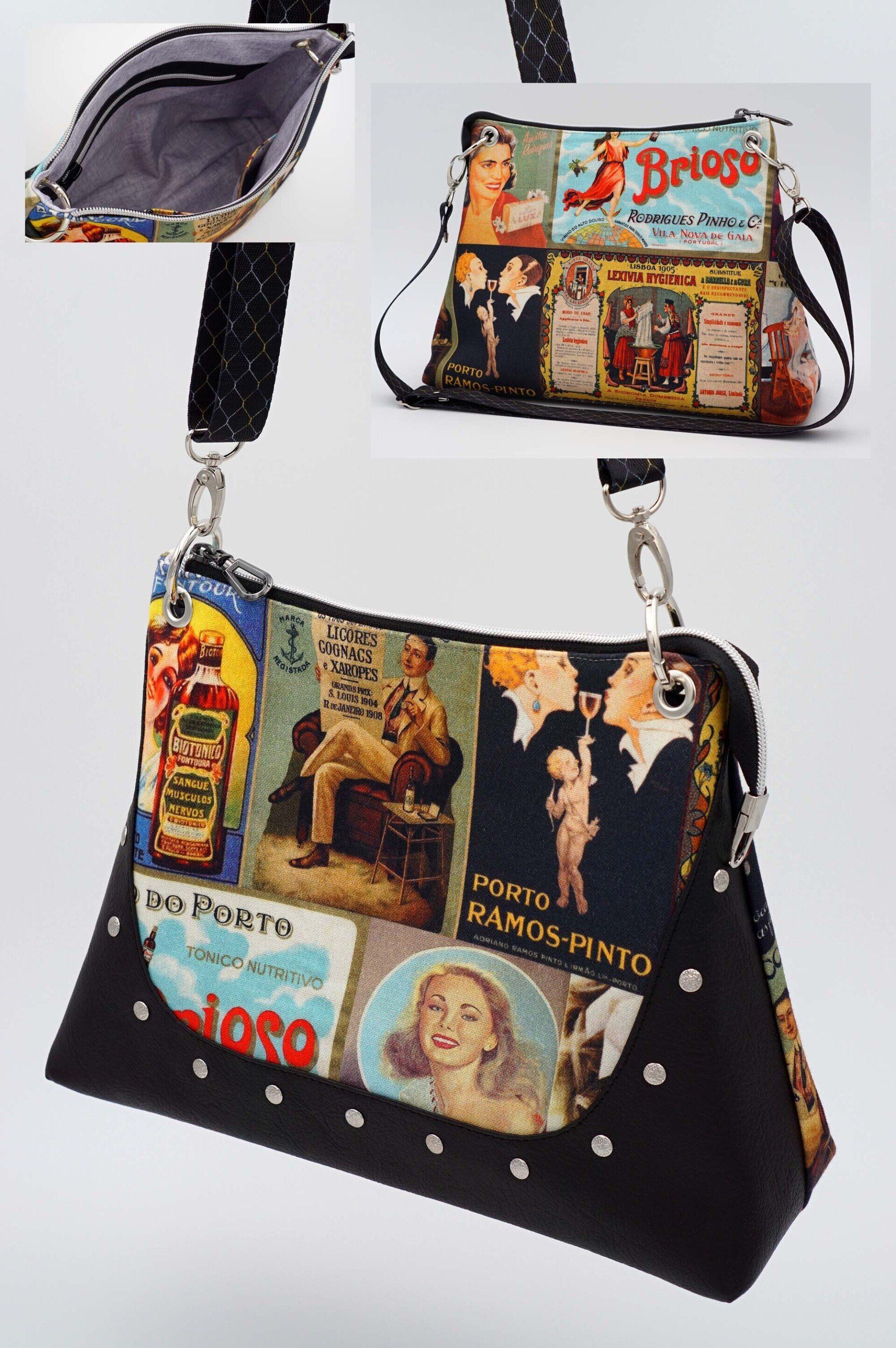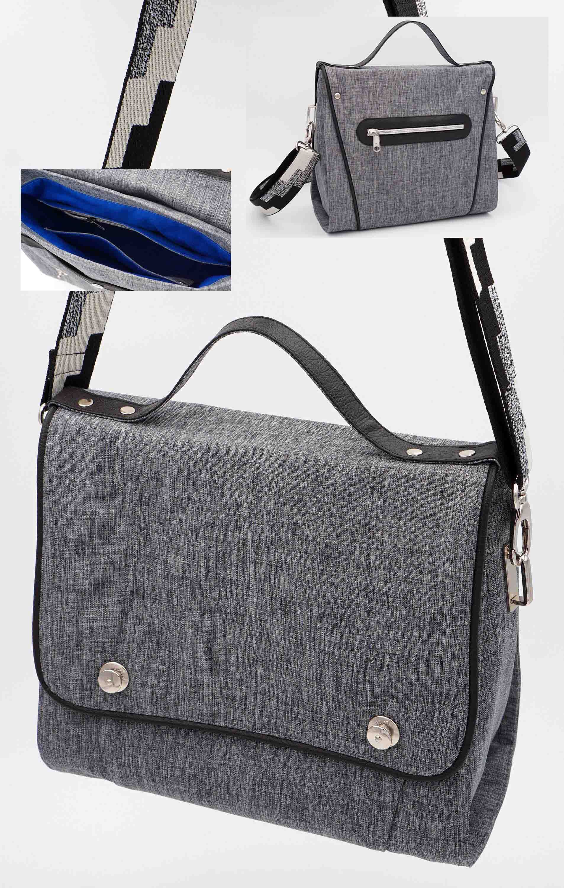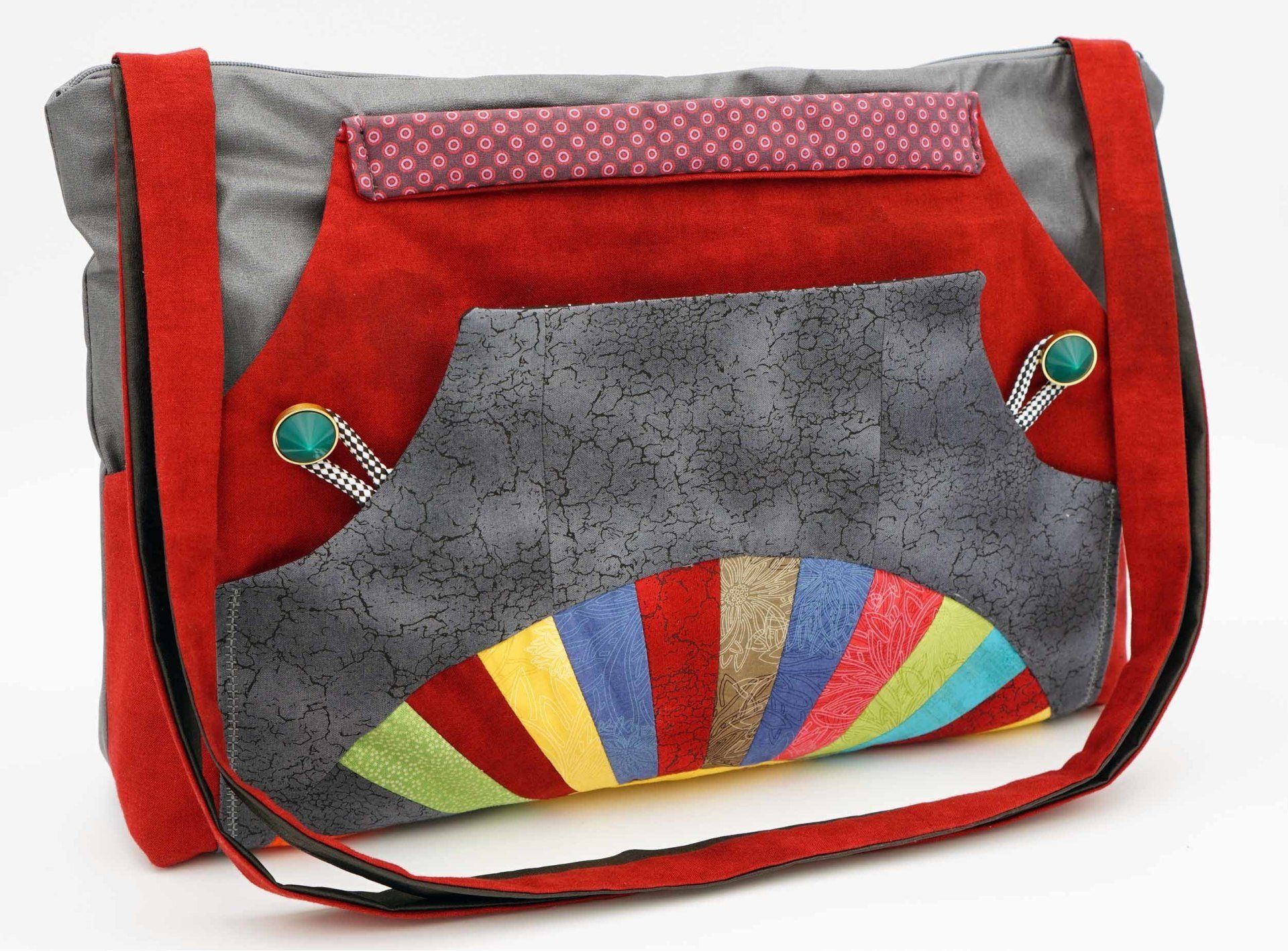 ButtonSchleifentasche, Material Canvas/Kunstleder mit Magnetverschluß und Tragegurt zum Binden, 40x35x10 cm, Innenfutter Baumwolle, Außen- und Innentasche mit Reißverschluß