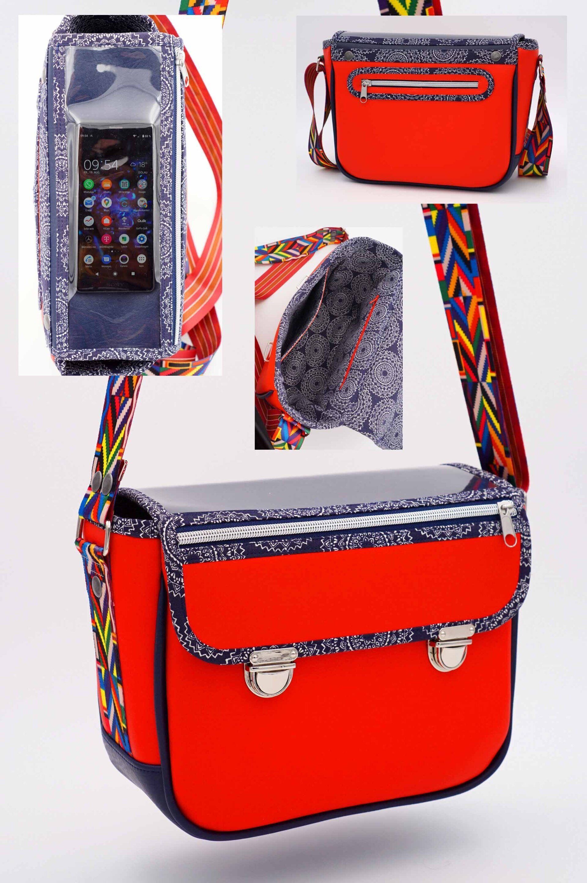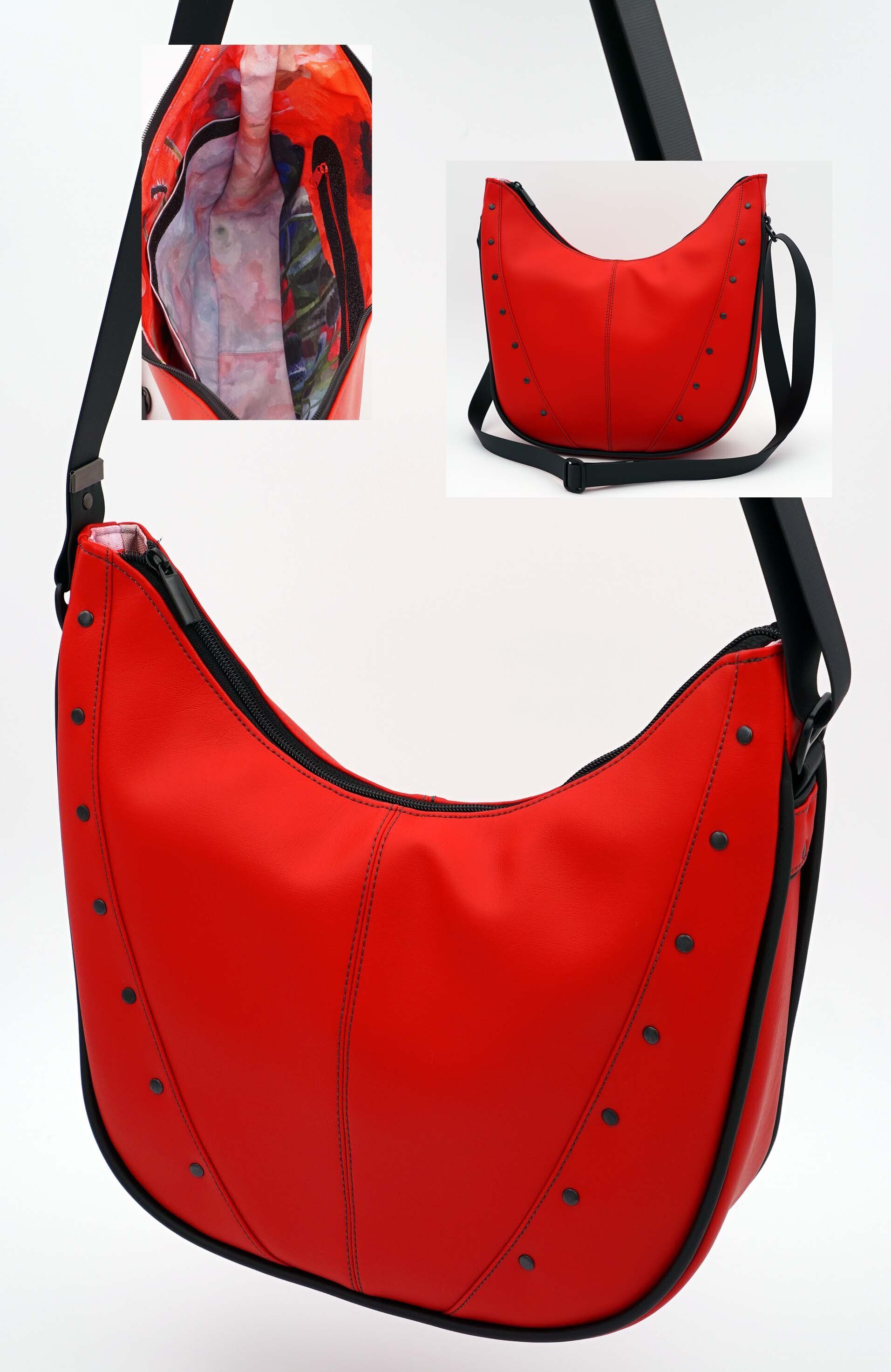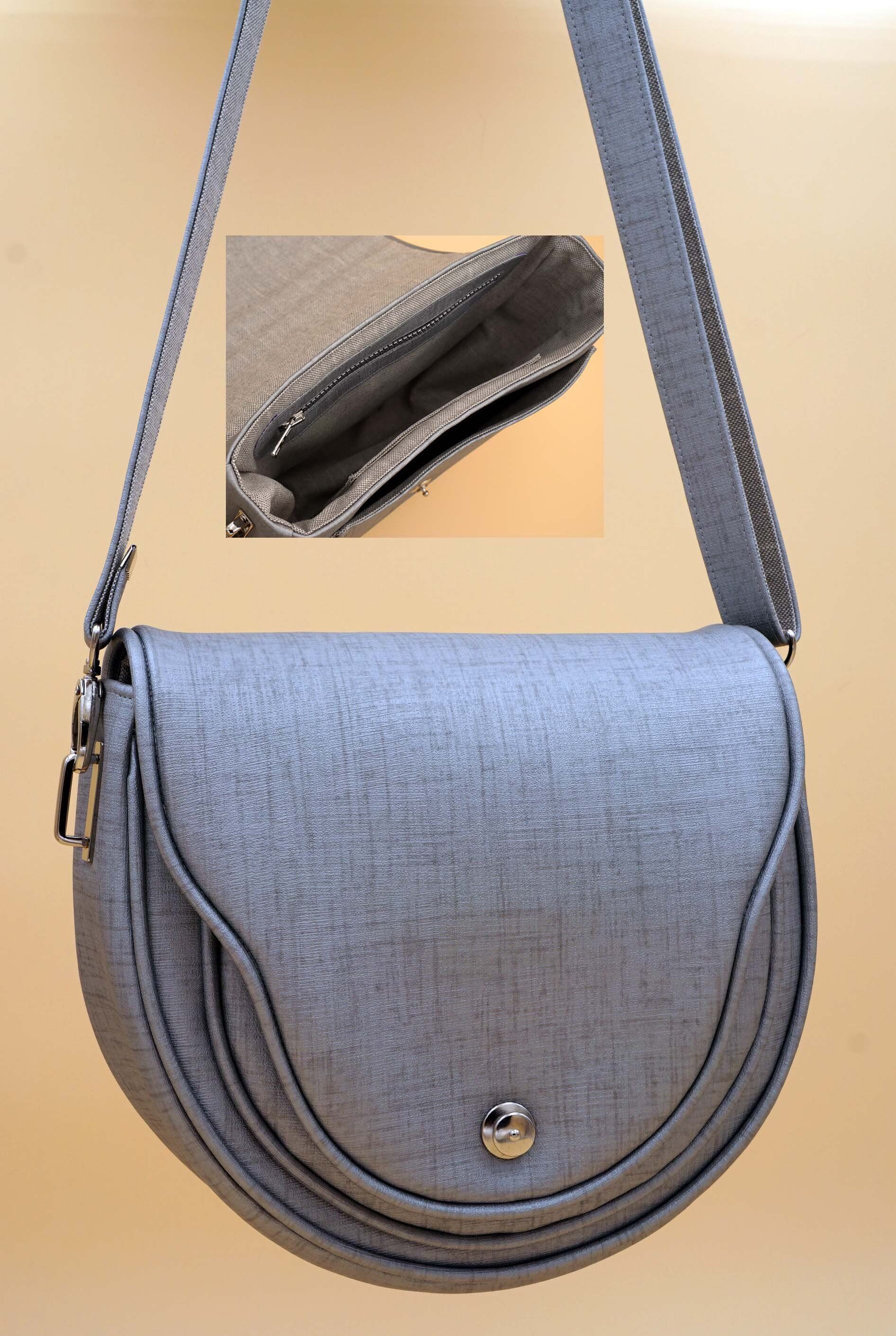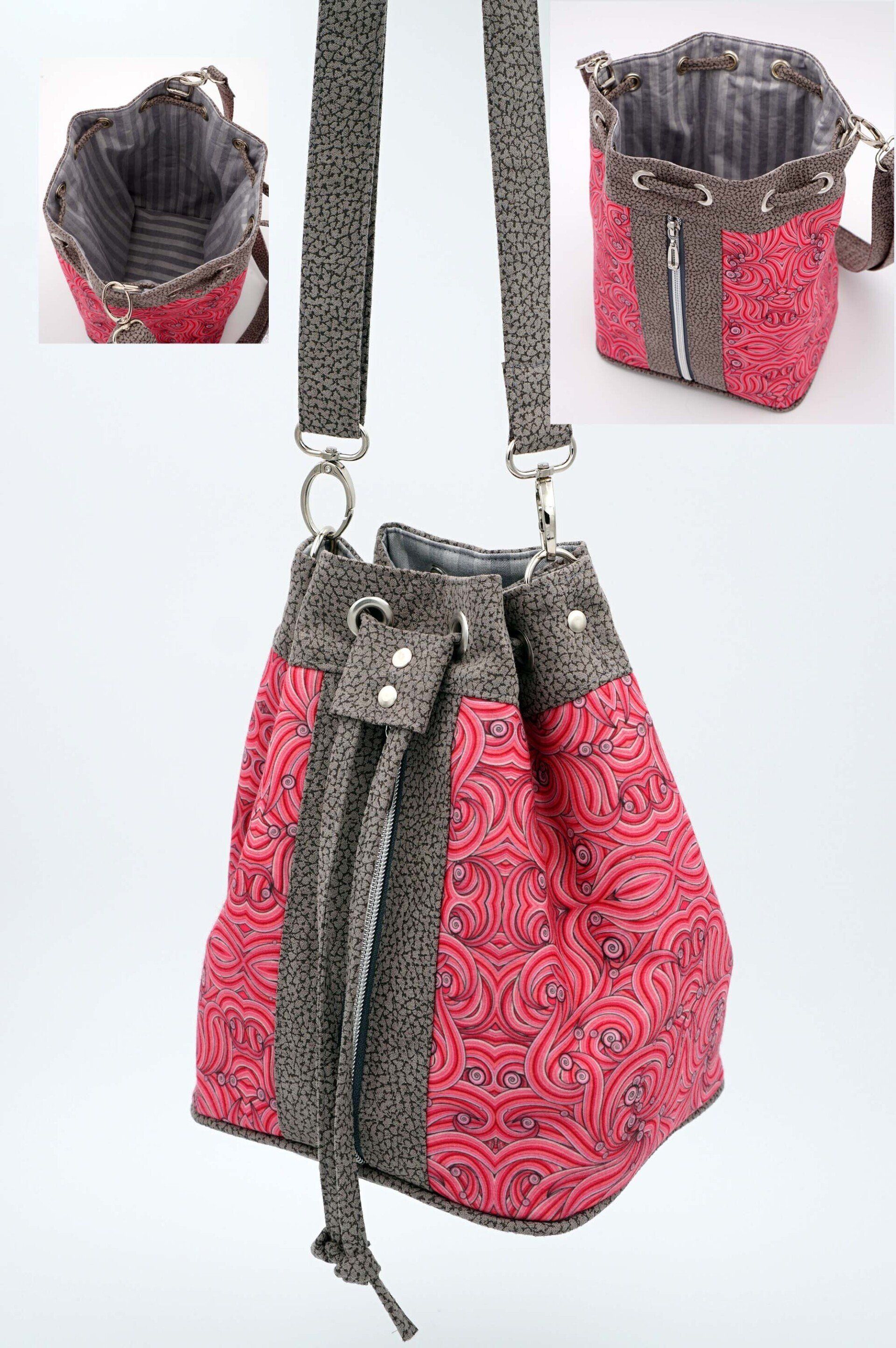 ButtonSchleifentasche, Material Canvas/Kunstleder mit Magnetverschluß und Tragegurt zum Binden, 40x35x10 cm, Innenfutter Baumwolle, Außen- und Innentasche mit Reißverschluß