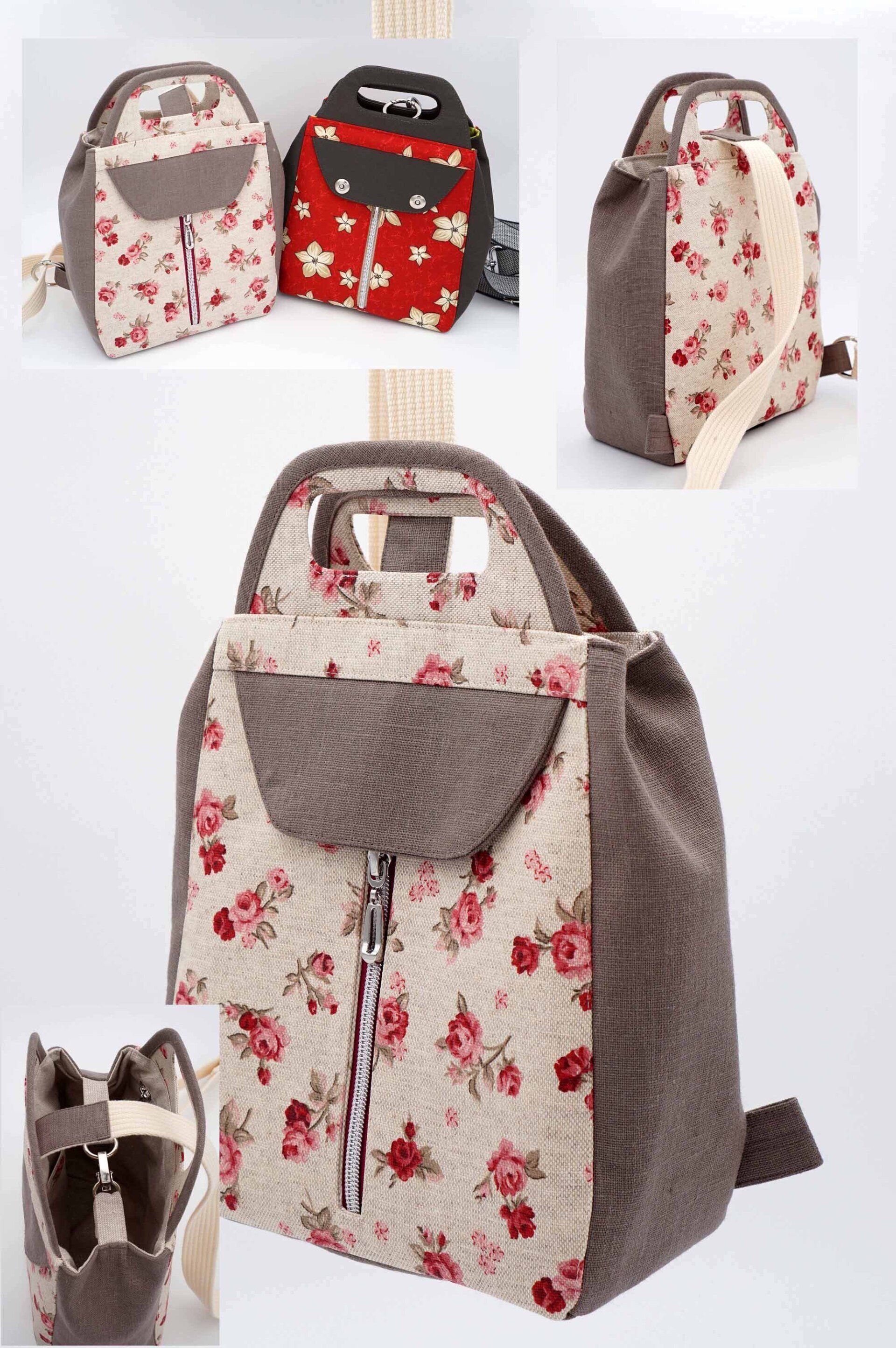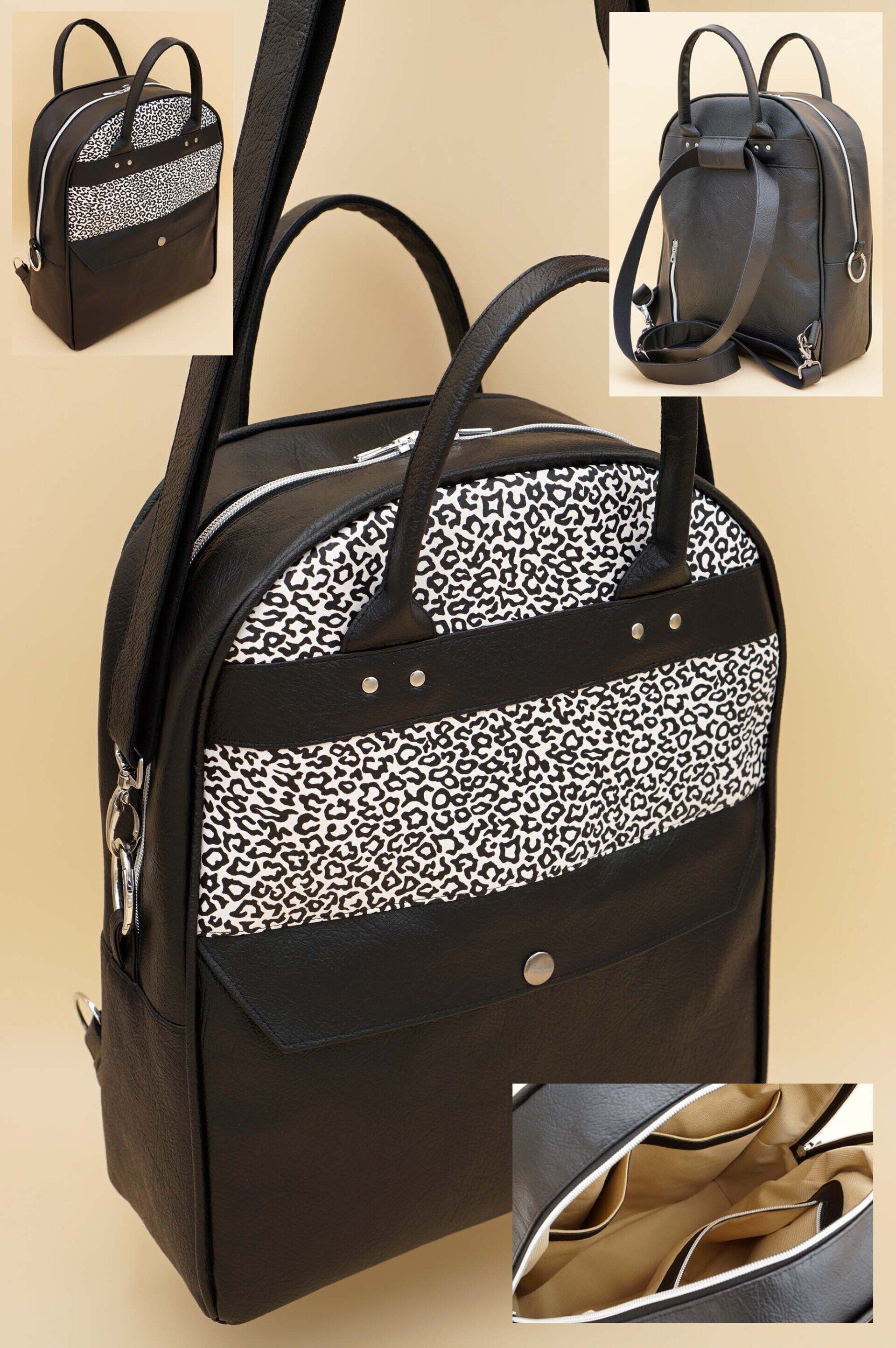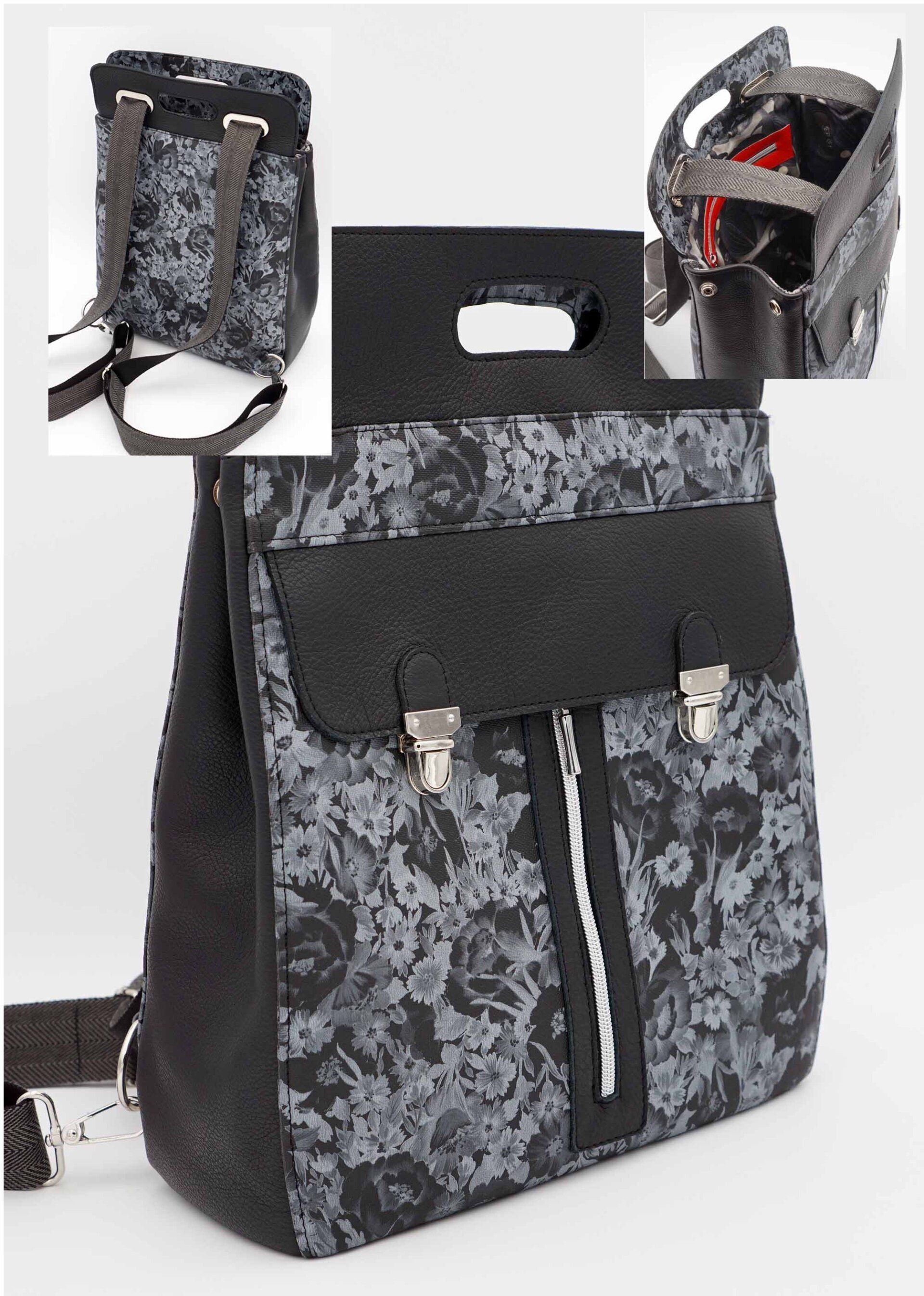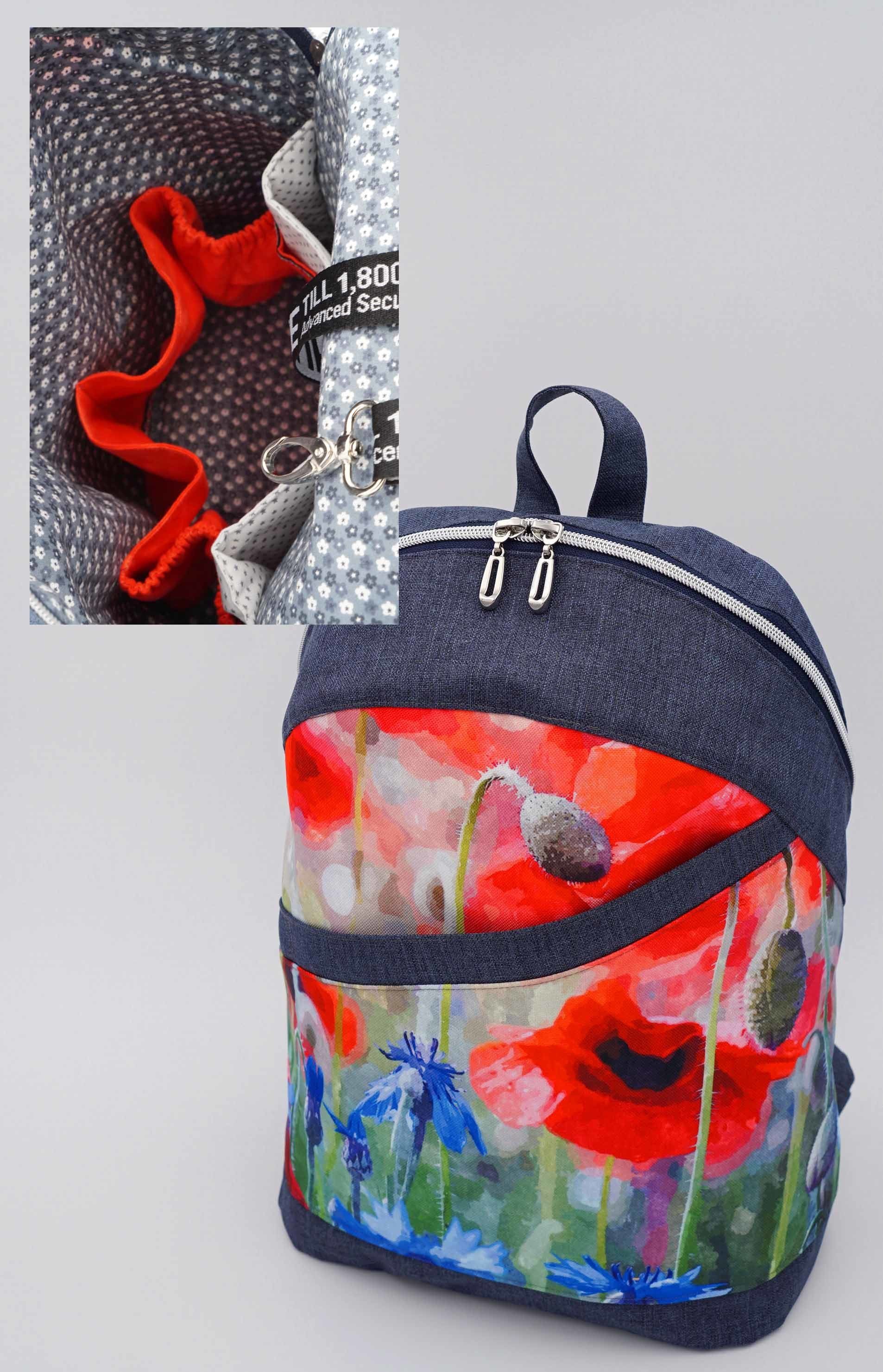 ButtonSteffmana Rucksack mit Reißverschluß und Taschenklappe mit Druckknöpfen, 30x30x10 cm, Material beschichtete Baumwolle, Innenfutter Baumwolle, Innen RV- und Steckfach
