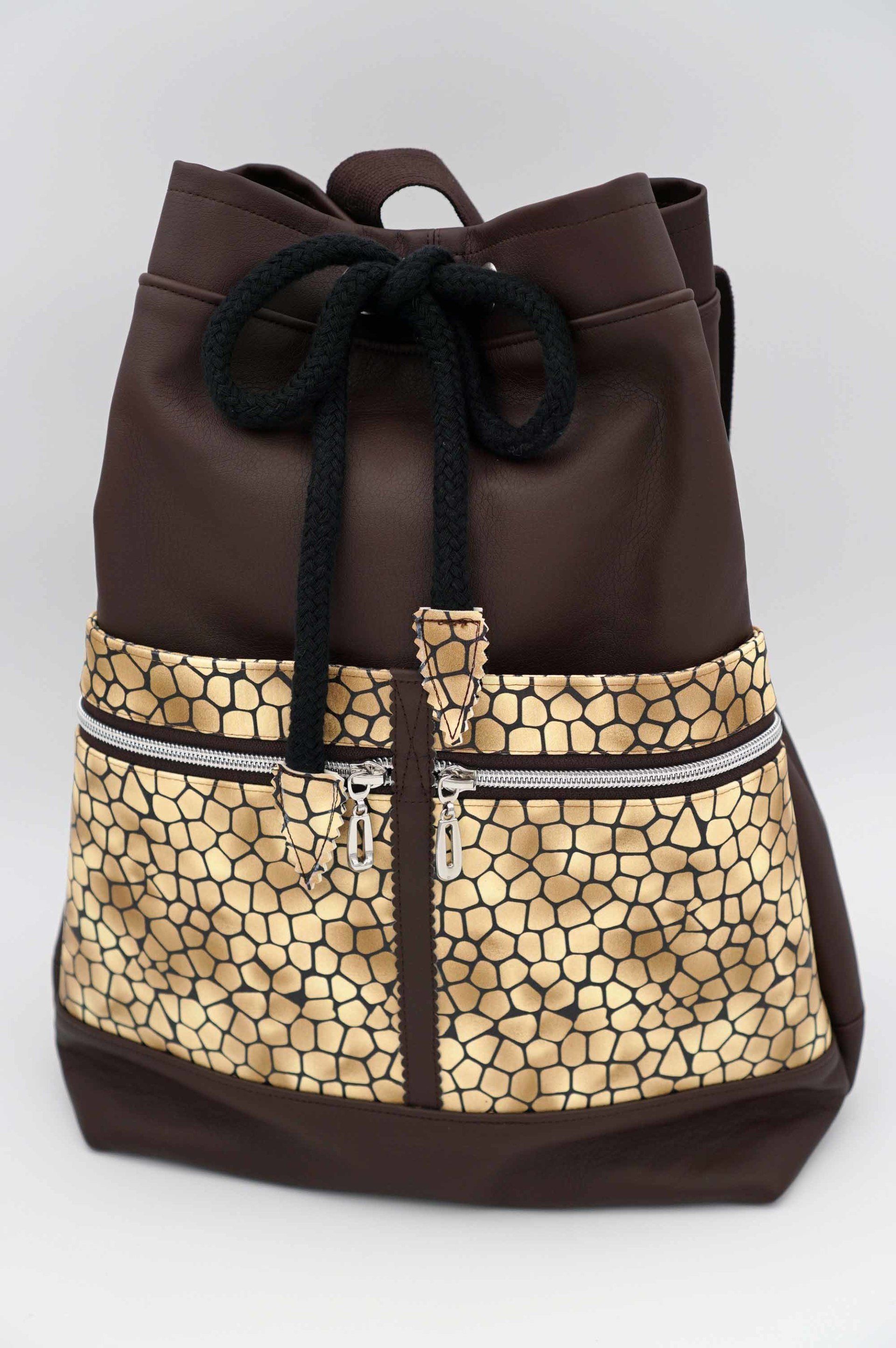 ButtonRucksack Enna (unikati), 40x28x10 cm, mit Kordel, Material Kunstleder, Innenfutter Baumwolle, Reißverschlußtaschen innen und außen
