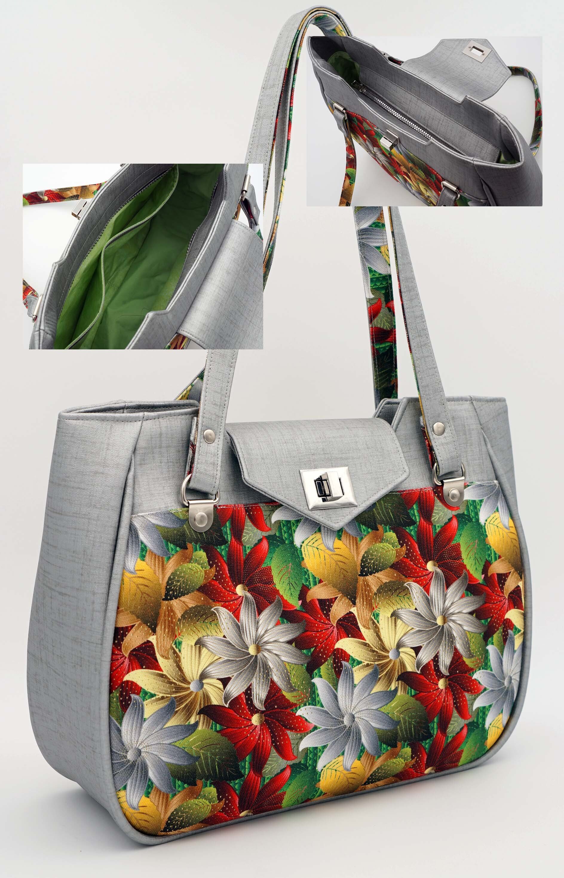 ButtonShopper Tanila Bag (unikati), 36x35x12 cm, mit Magnetknopf, Material Canvas gesteppt, Innenfutter Baumwolle, Reißverschlußtaschen innen und außen