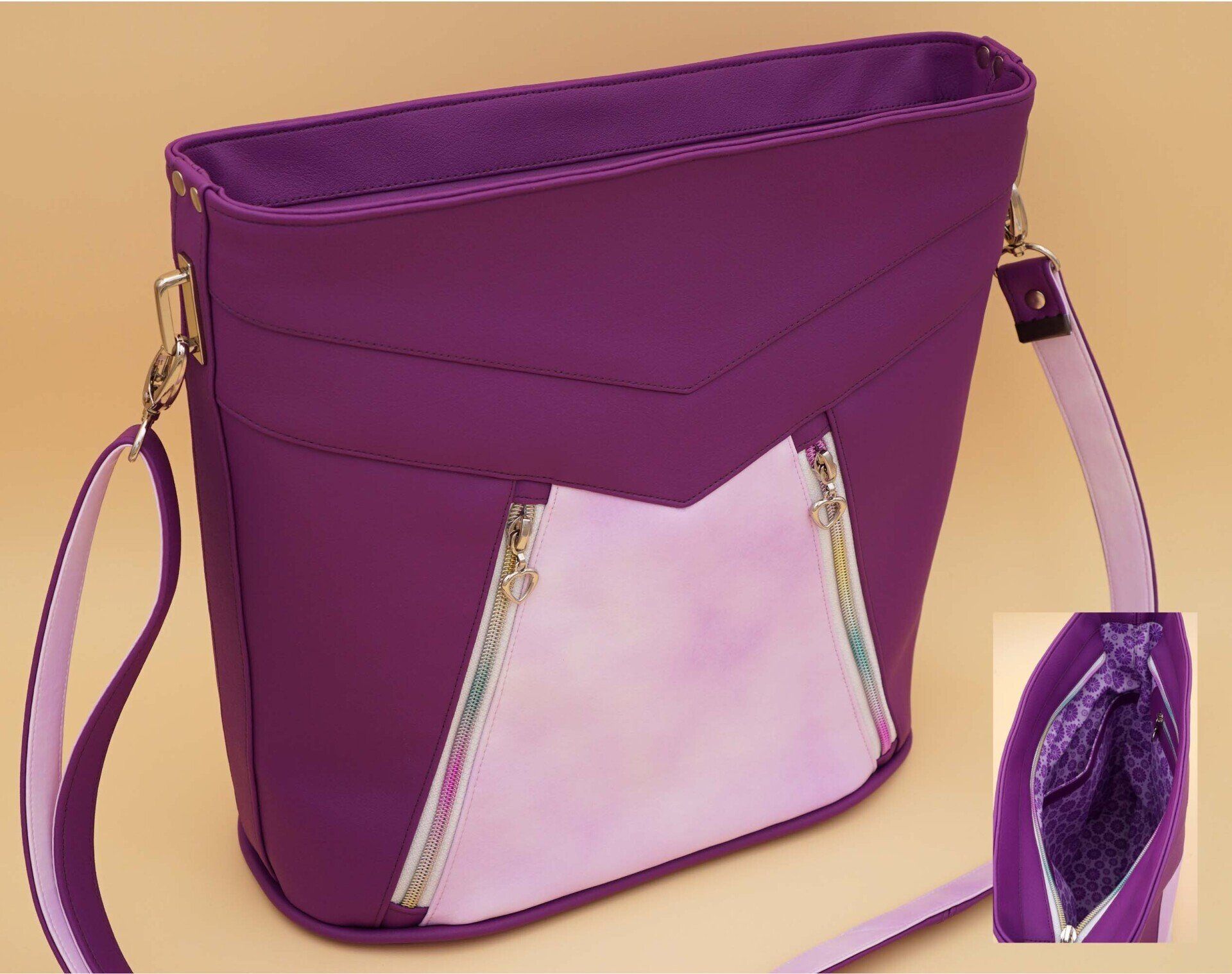 ButtonShamballa Violetta Bag mit Reißverschluß, 29x37x10 cm, Material Kunstleder/Baumwollsatin, Innenfutter Baumwolle, Innentaschen mit RV und Steckfach, Außensteckfach mit Magnetknopf