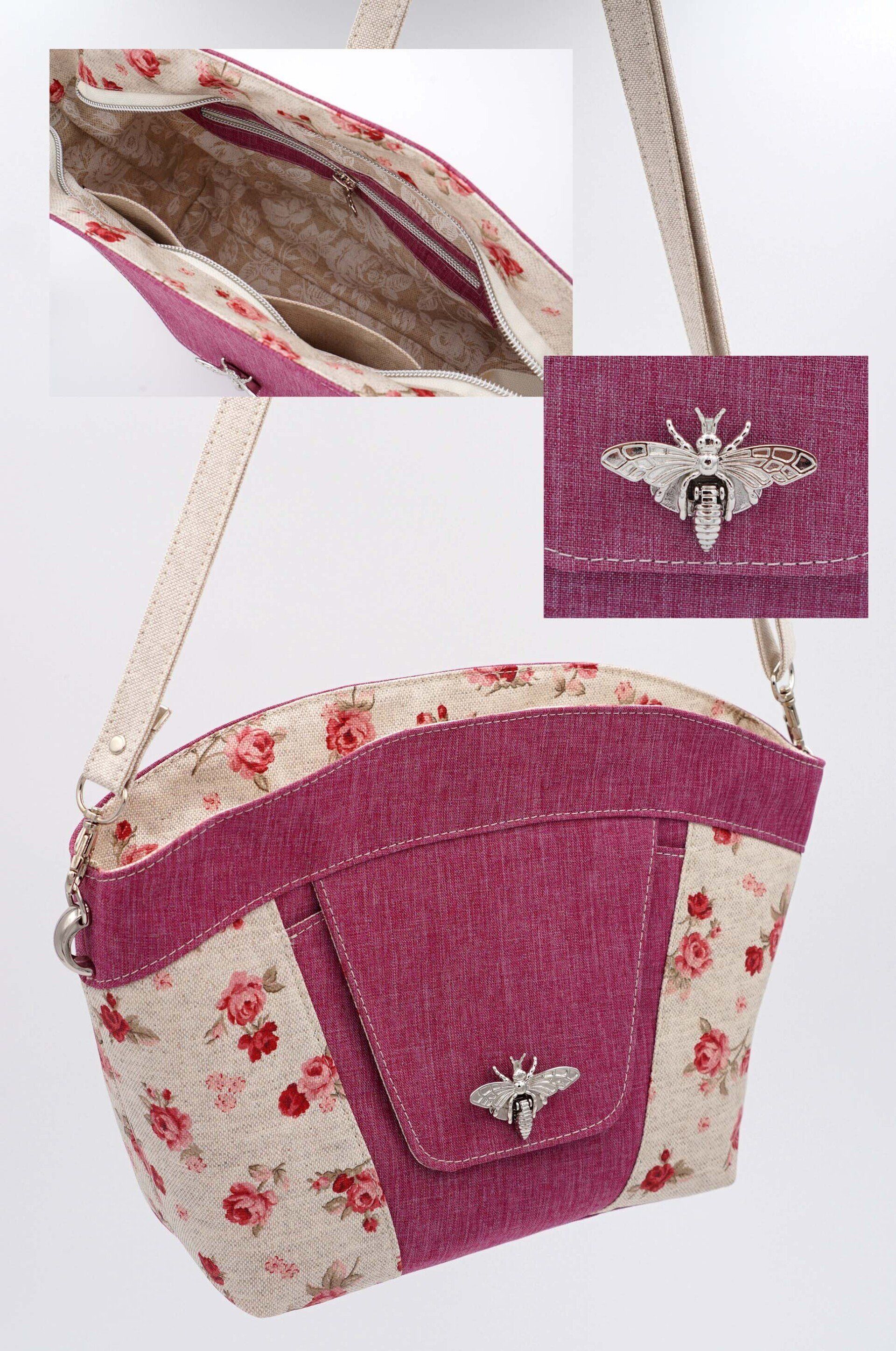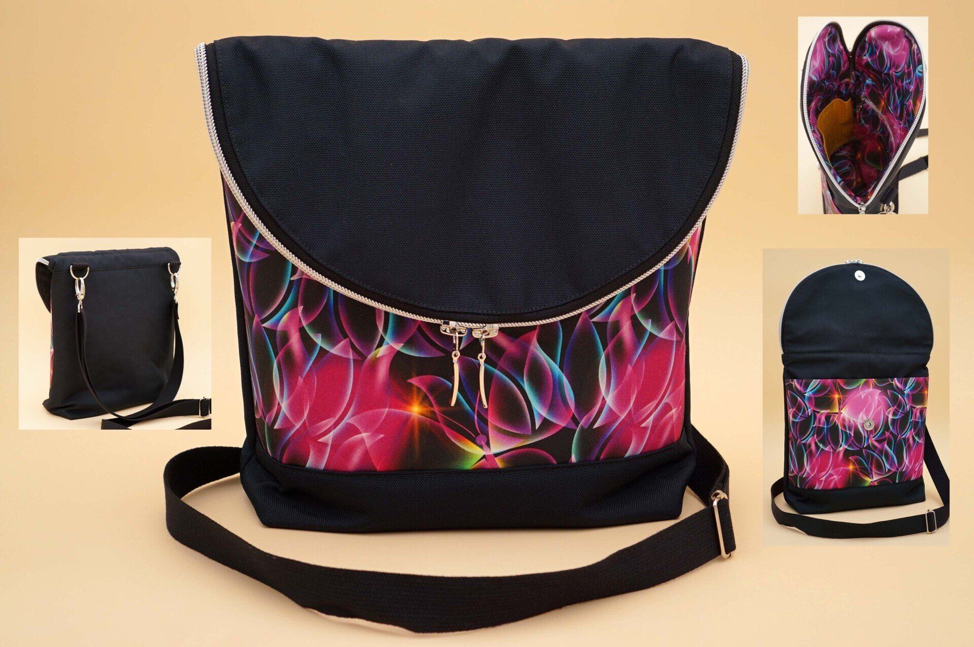 ButtonShamballa Molly Bag mit Reißverschluß und Magnetknopf, 27x34x10 cm, Material beschichtete Baumwolle und Baumwollsatin, Innenfutter Baumwolle, Steck- und RV-Fach innen