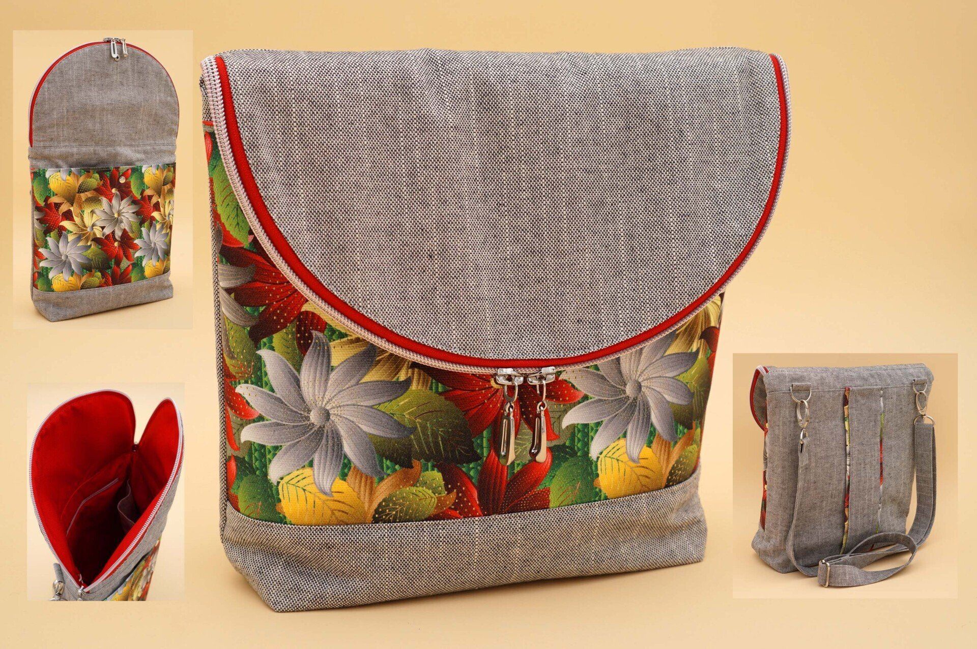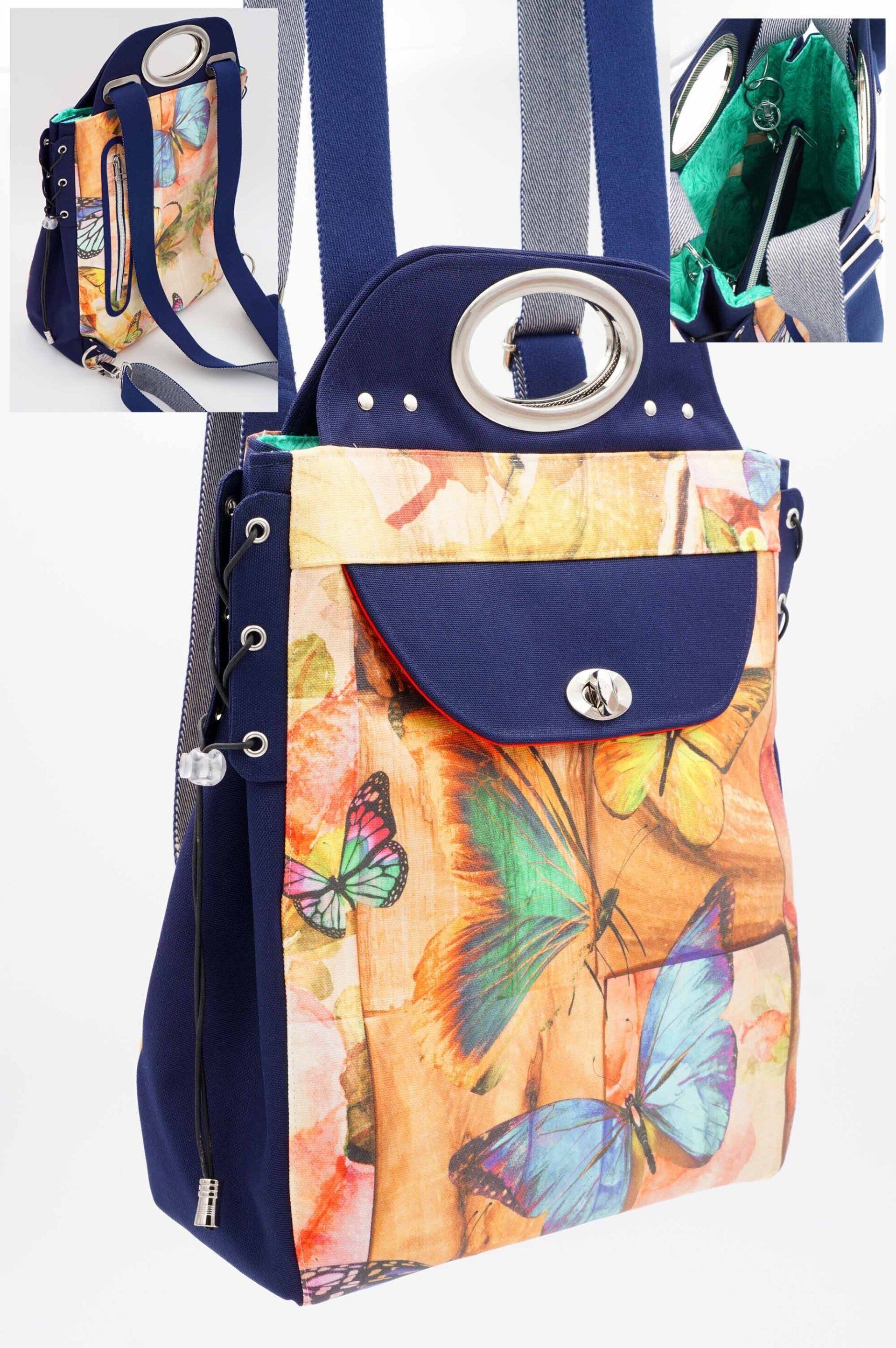 ButtonUnikati Taniia Bag mit Reißverschluß, 36x35x12 cm, Material Canvas, Innenfutter Baumwolle, Außen- und Innentaschen (Steckfach und RV-Fach, Getränkehalterung)