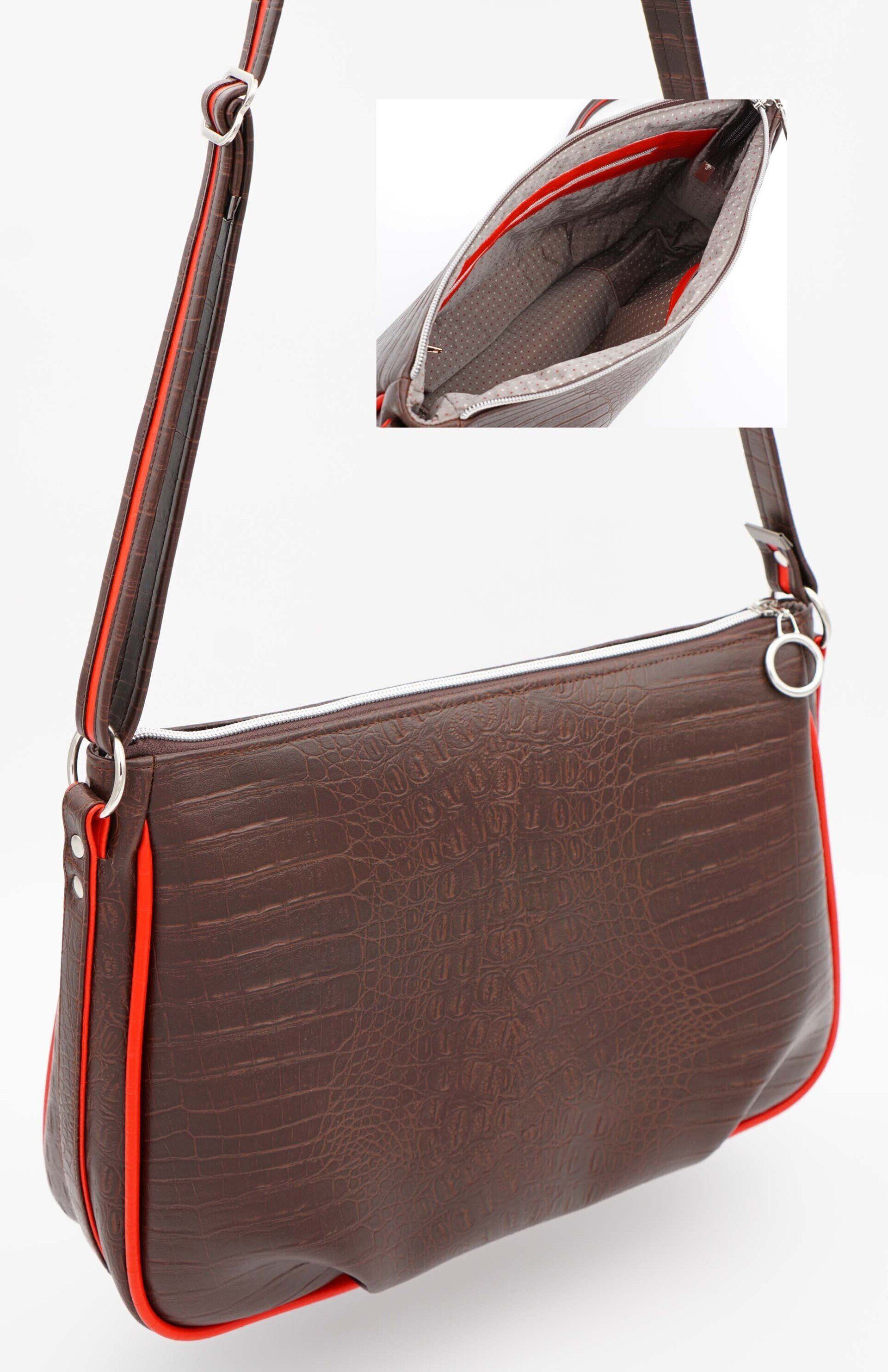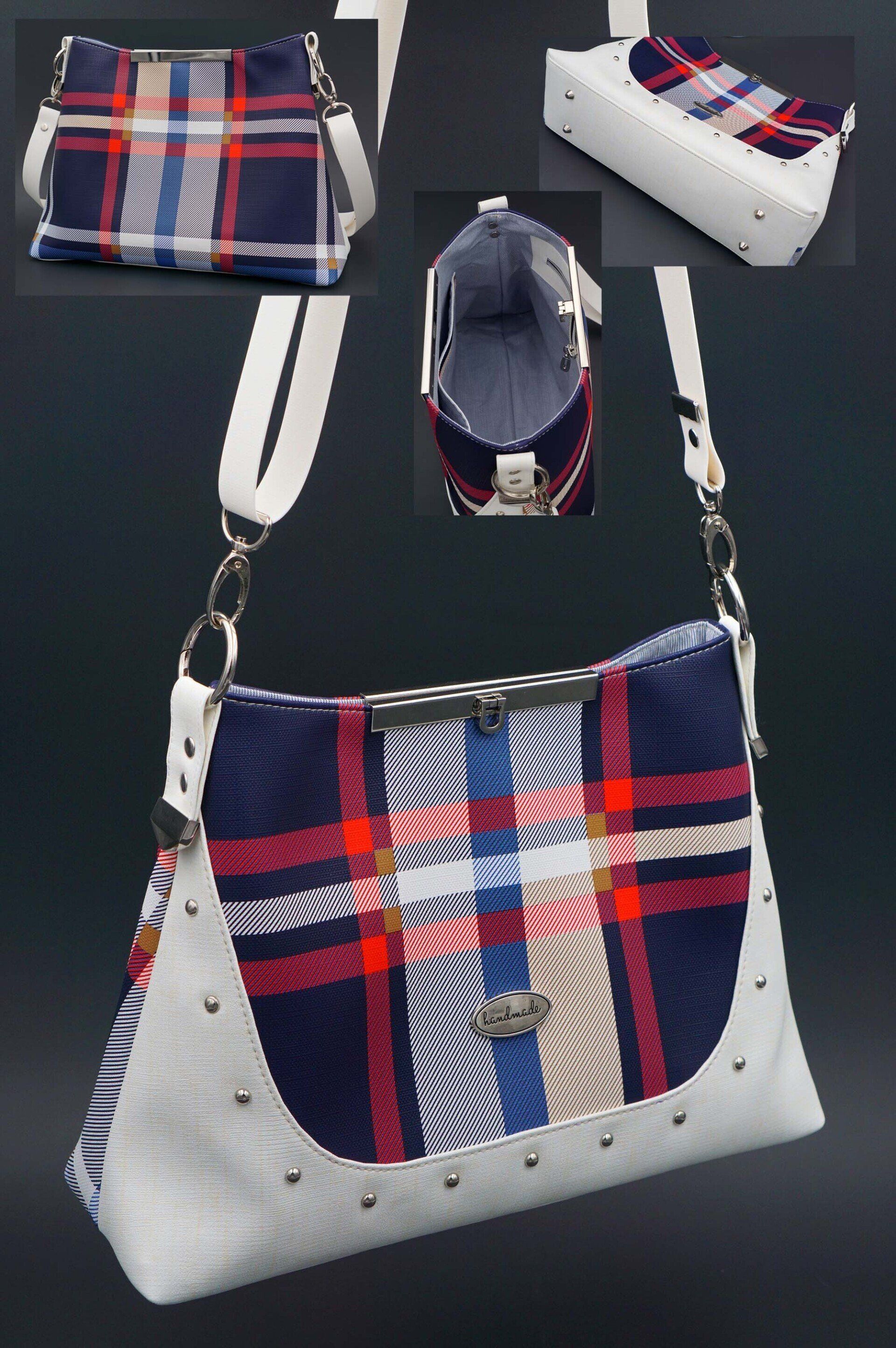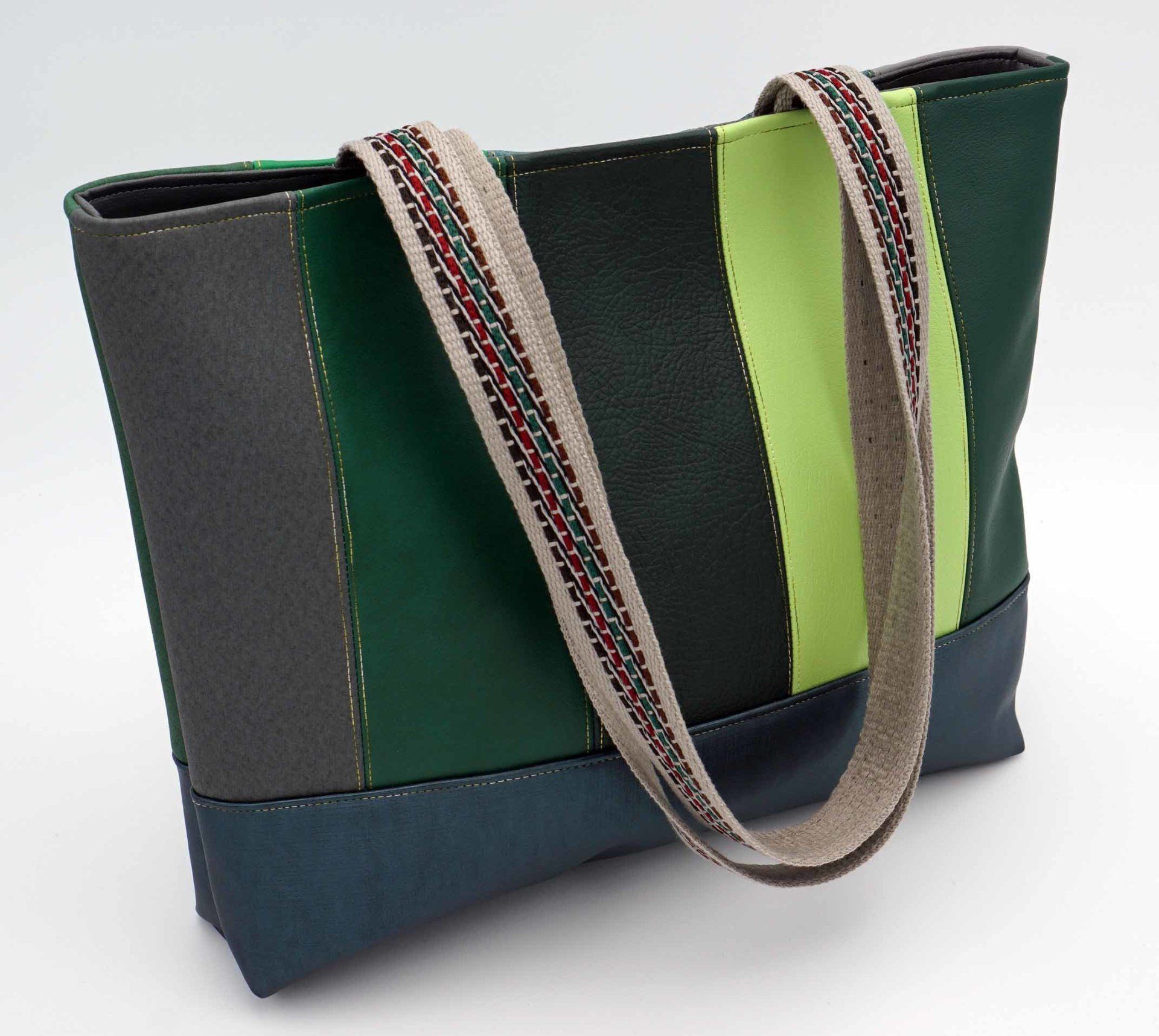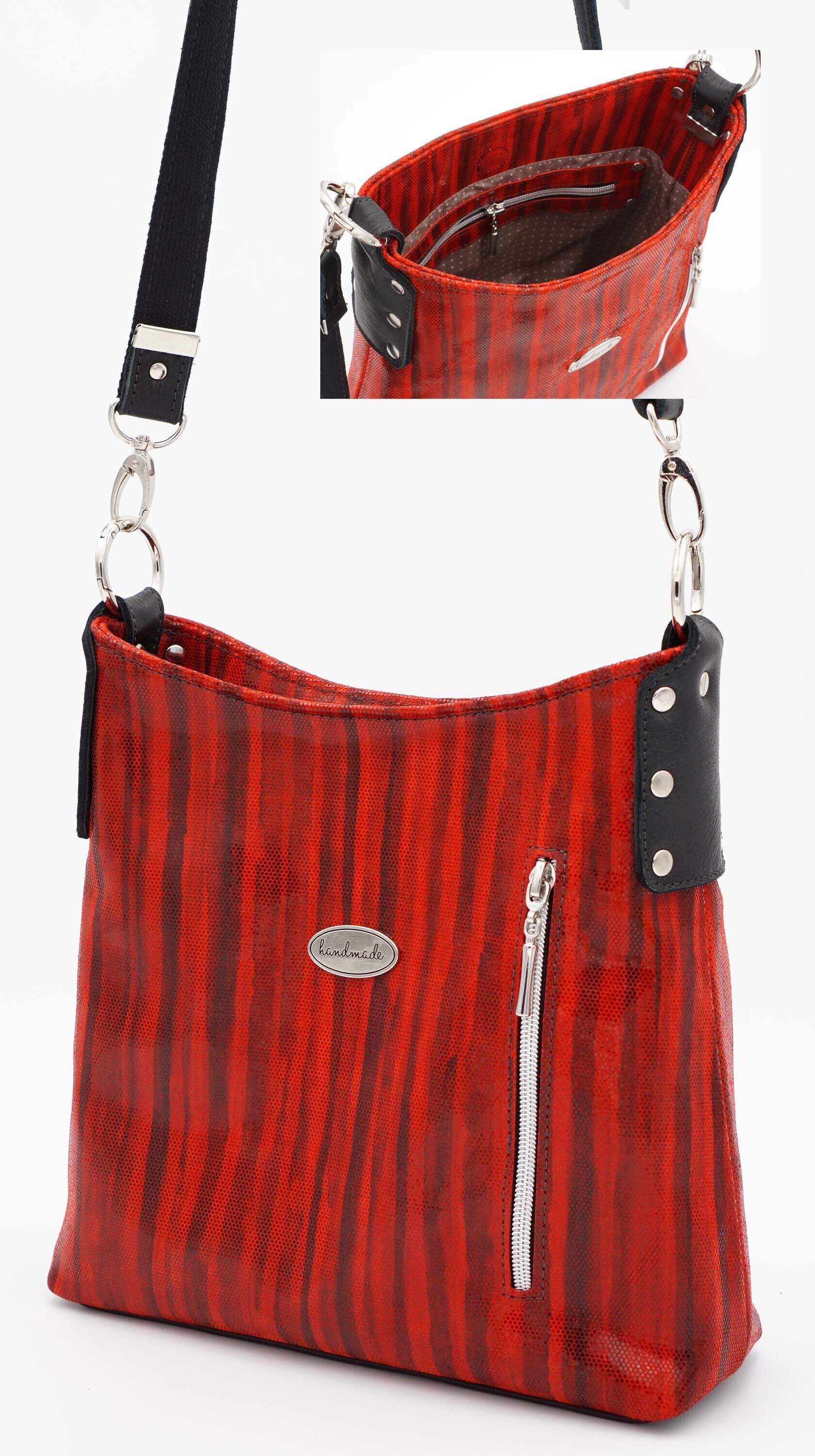 ButtonTasche Streifen, 34x30x10 cm, mit Magnetknopf, Material Kunstleder, Innenfutter Baumwolle, Innentasche mit Reißverschluß
