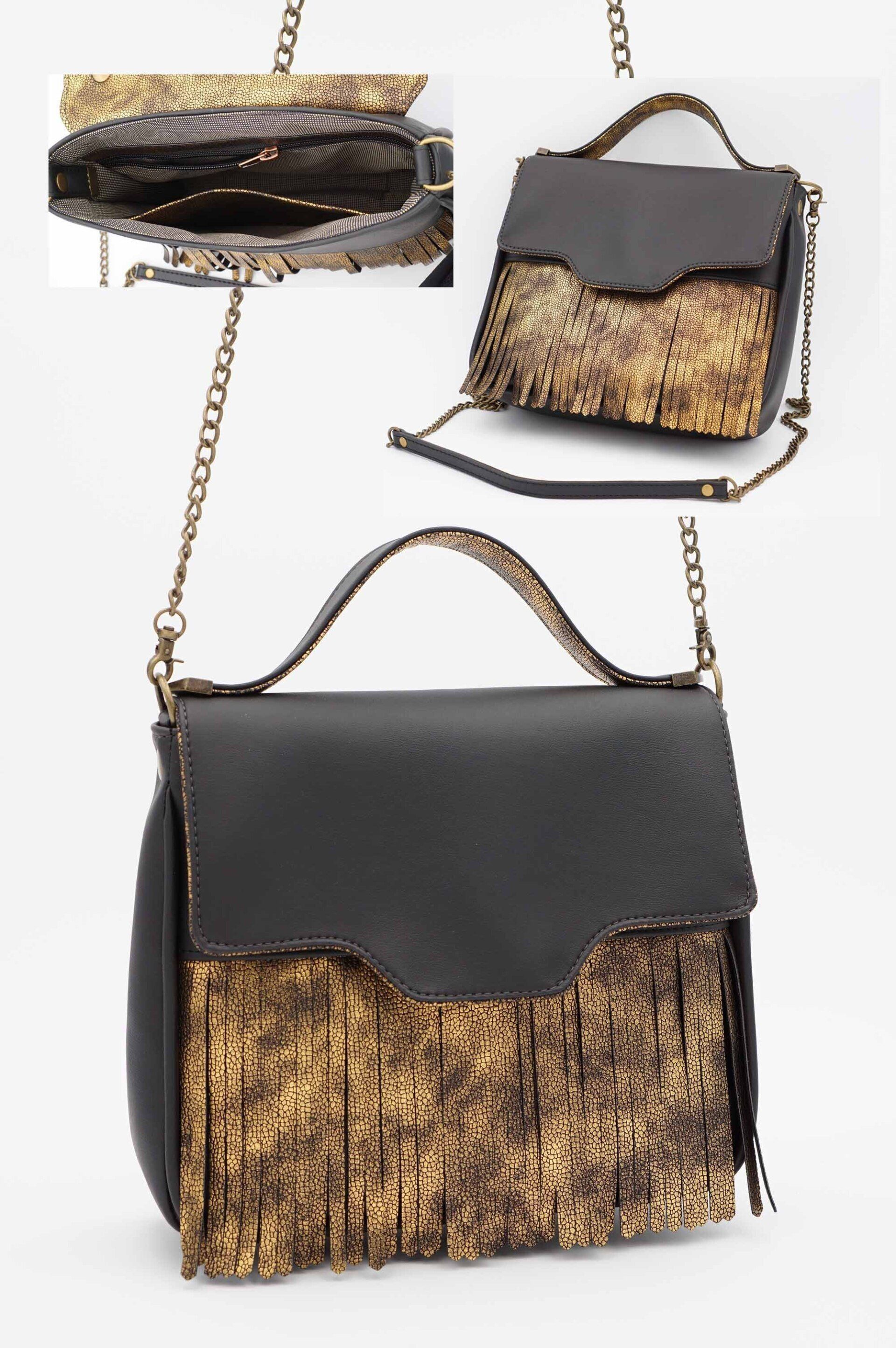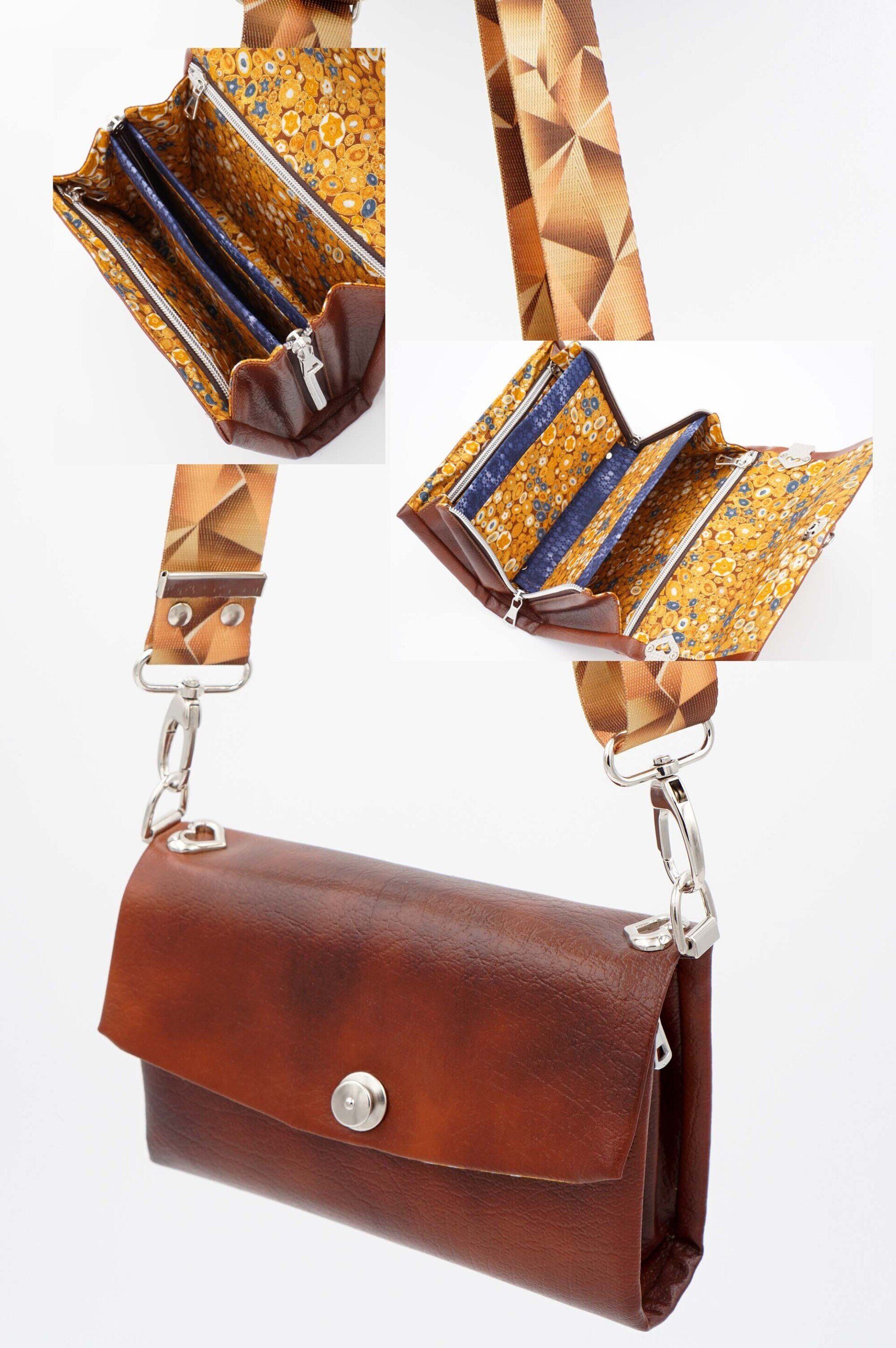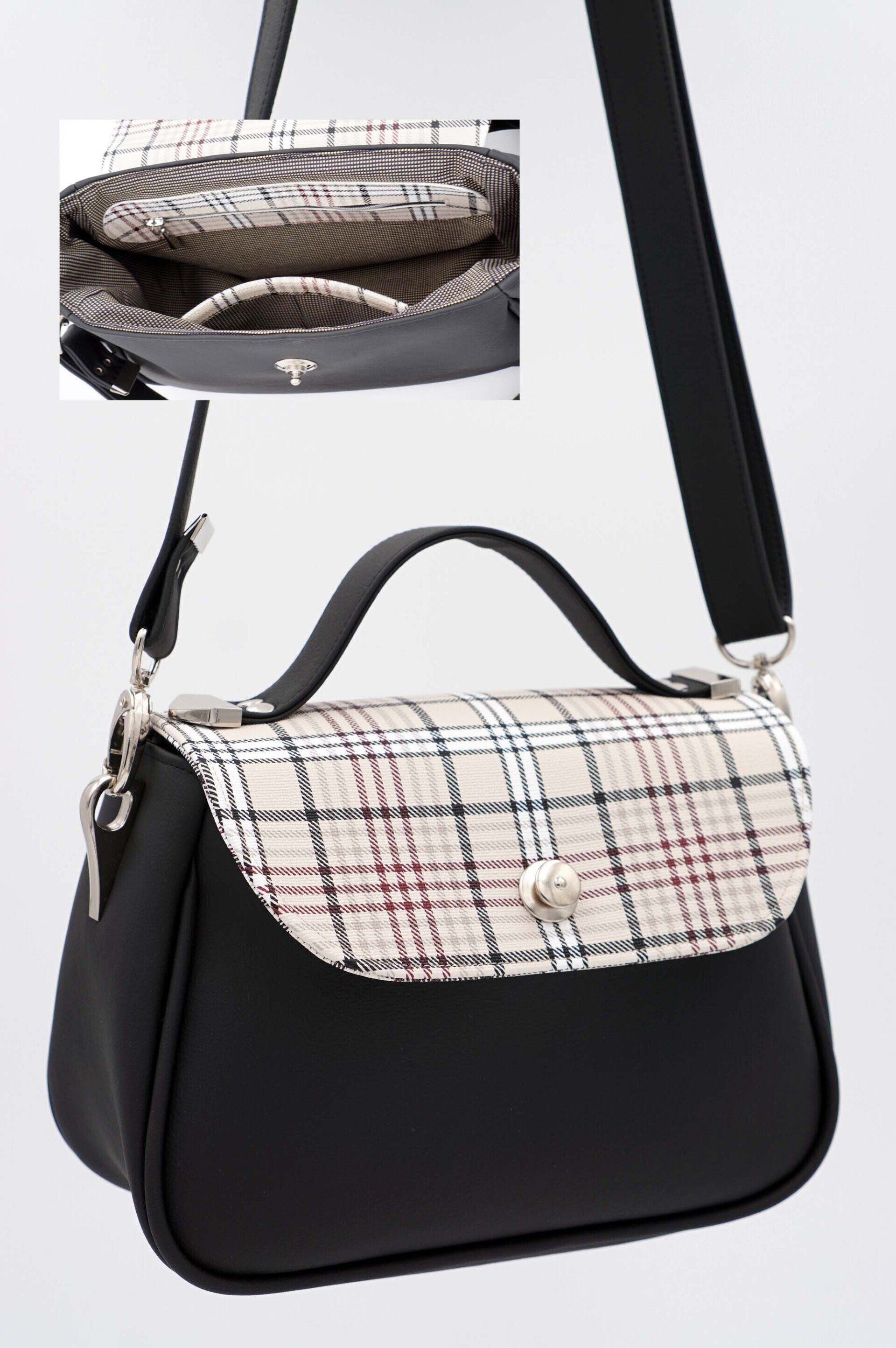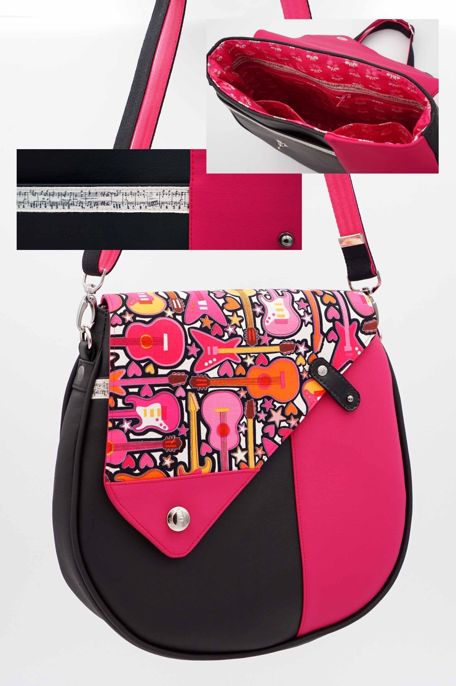 ButtonShamballa Yanna Bag, Klappe Magnetknopf, 28x22x10cm, Material Kunstleder und Baumwollsatin, Innenfutter Baumwolle, Innen RV- und Steckfach