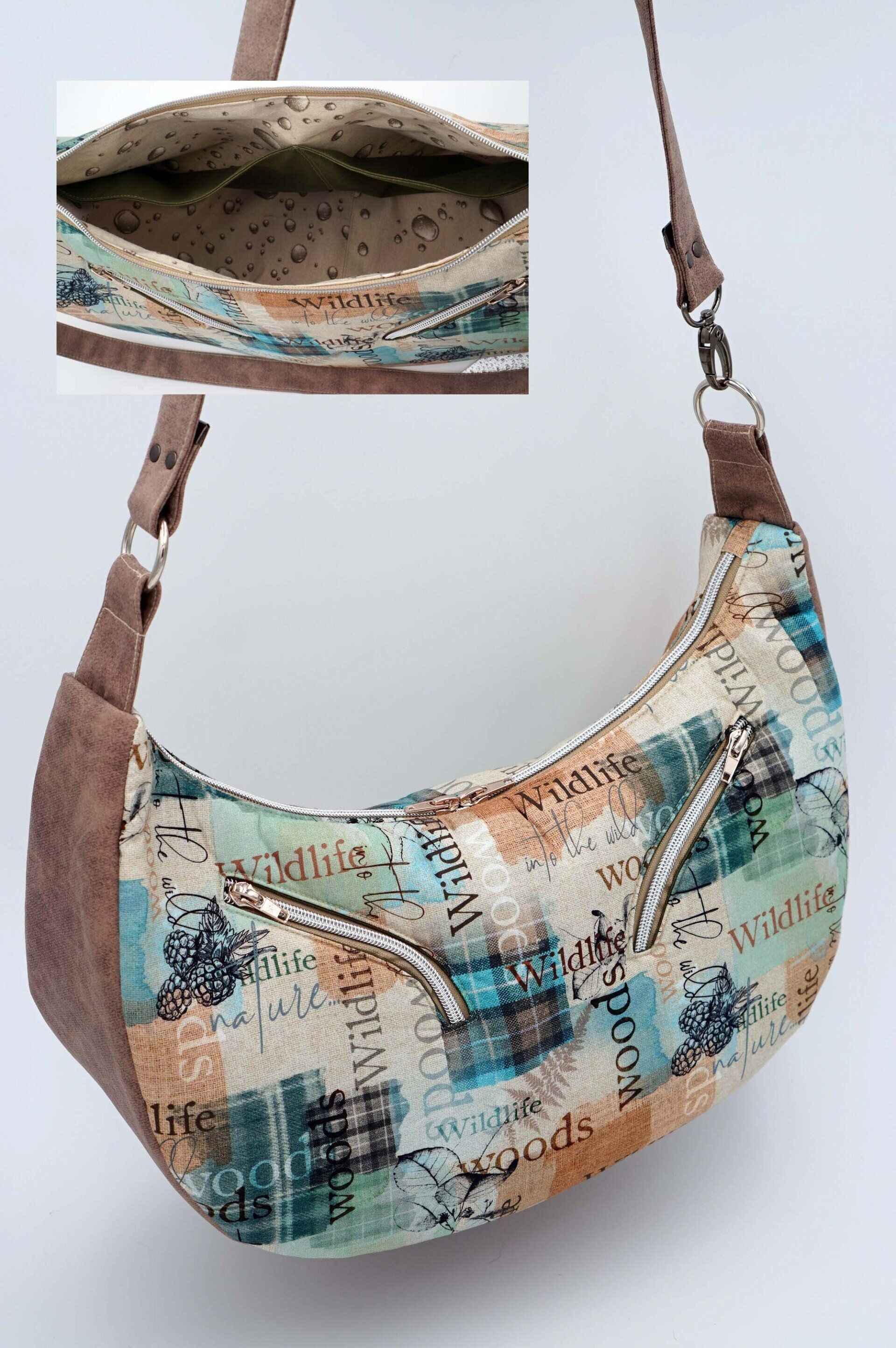 ButtonUnikati Hobo Bag Haya mit Reißverschluß, 34x36x10cm, Material beschichtete Baumwolle, Innenfutter Baumwolle, Außentasche RV mit Klappe bedeckt, Innen großes mehrteiliges Steckfach und Schlüsselkarabiner
