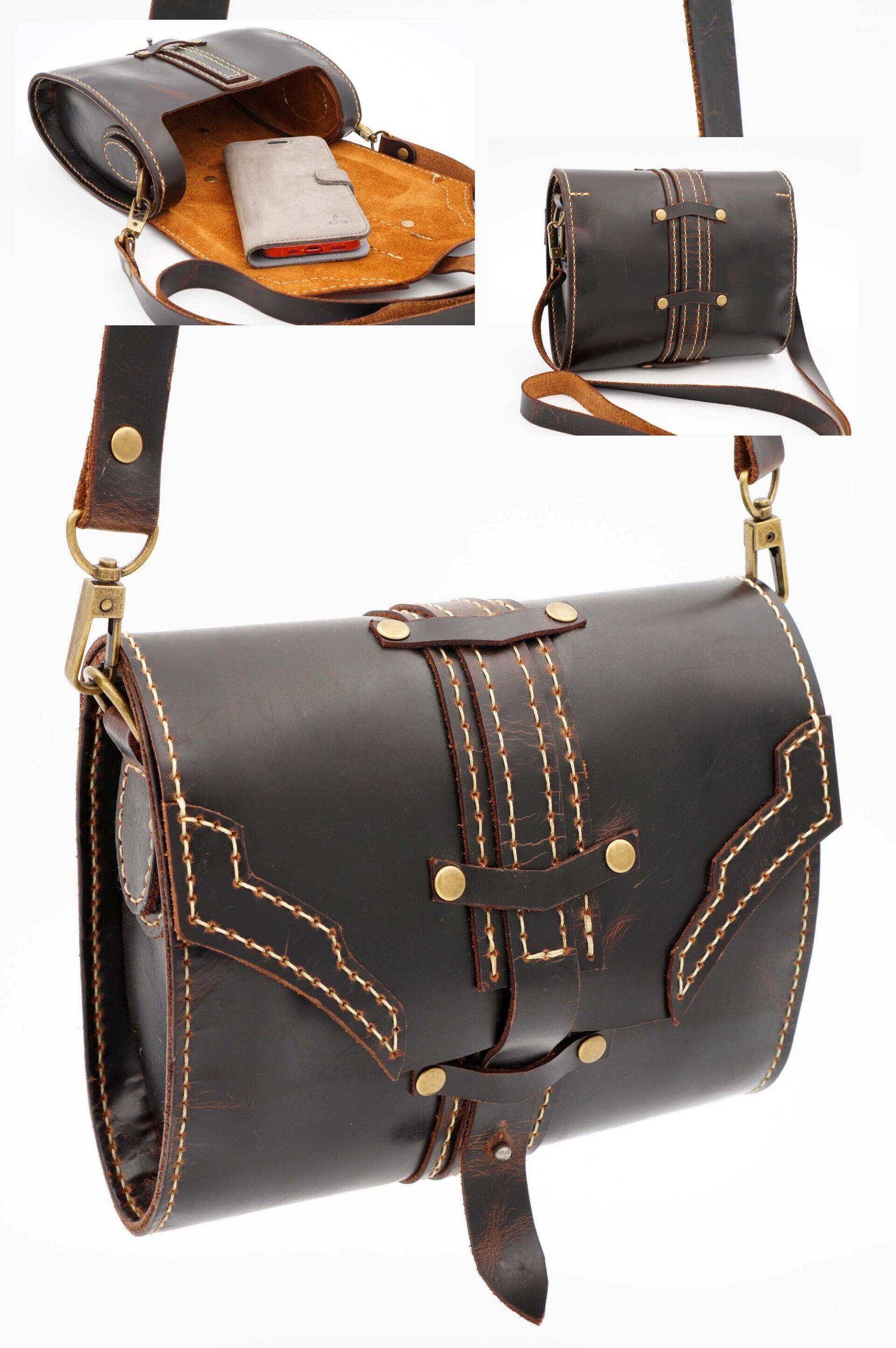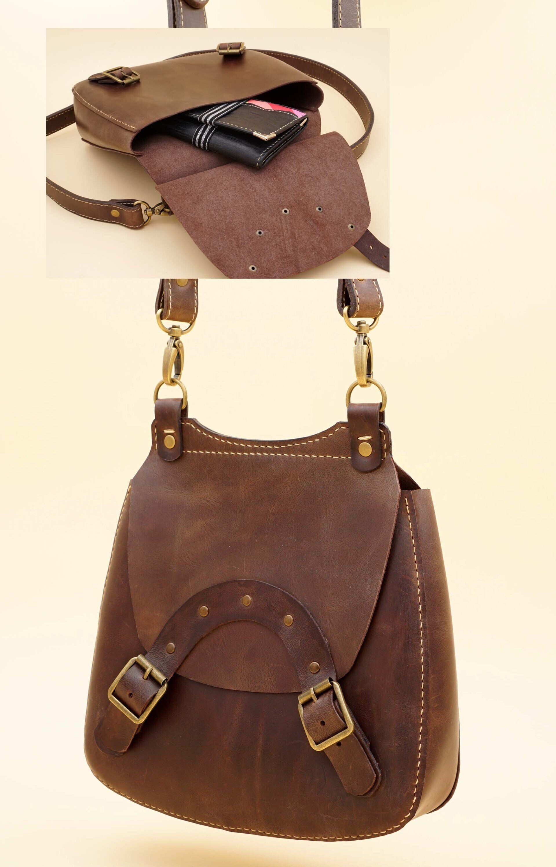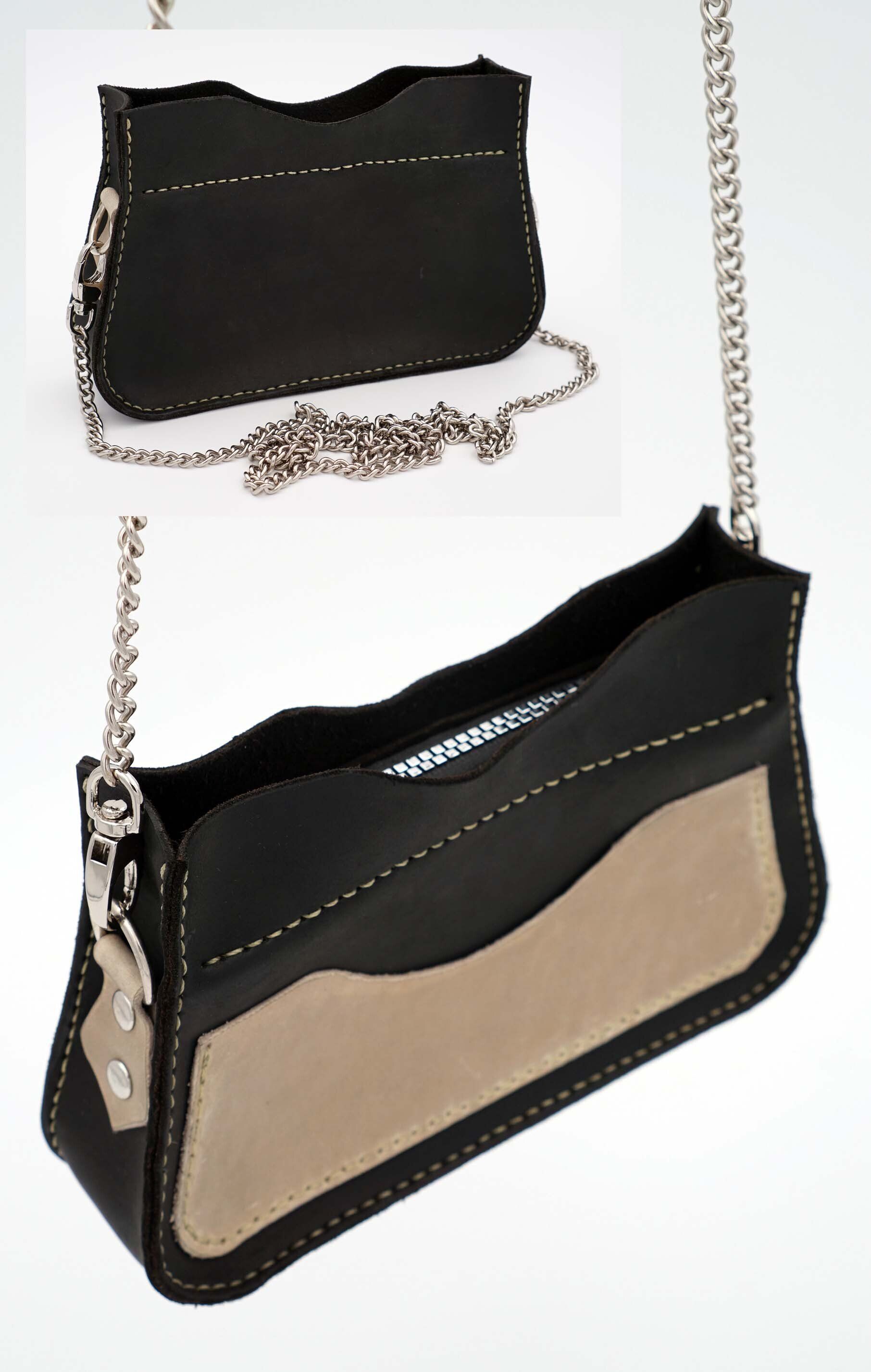 ButtonTasche Soleya Basic S (Monja Taschen), 16x20x5,5 cm, mit Steckschloß und Kette, Material Rindsleder, Innenfutter Baumwolle, Außen - und Innentasche