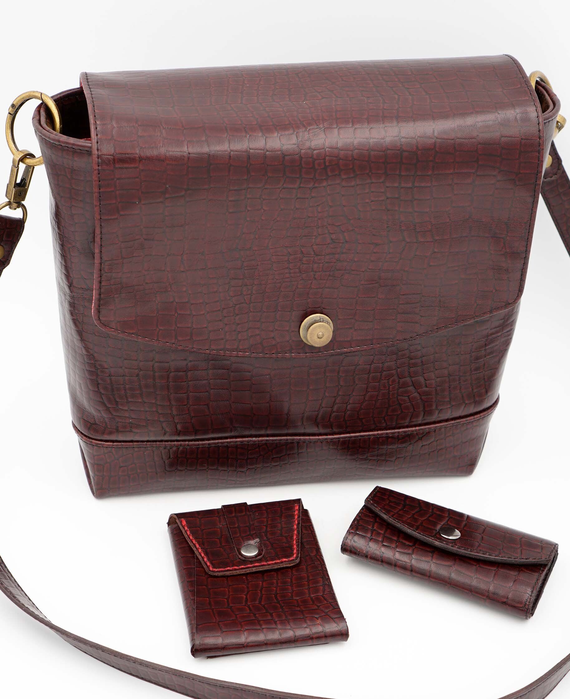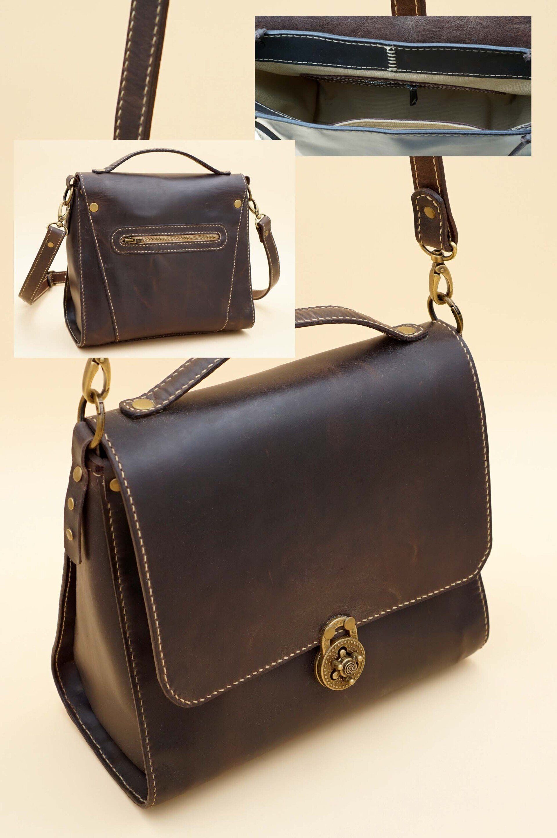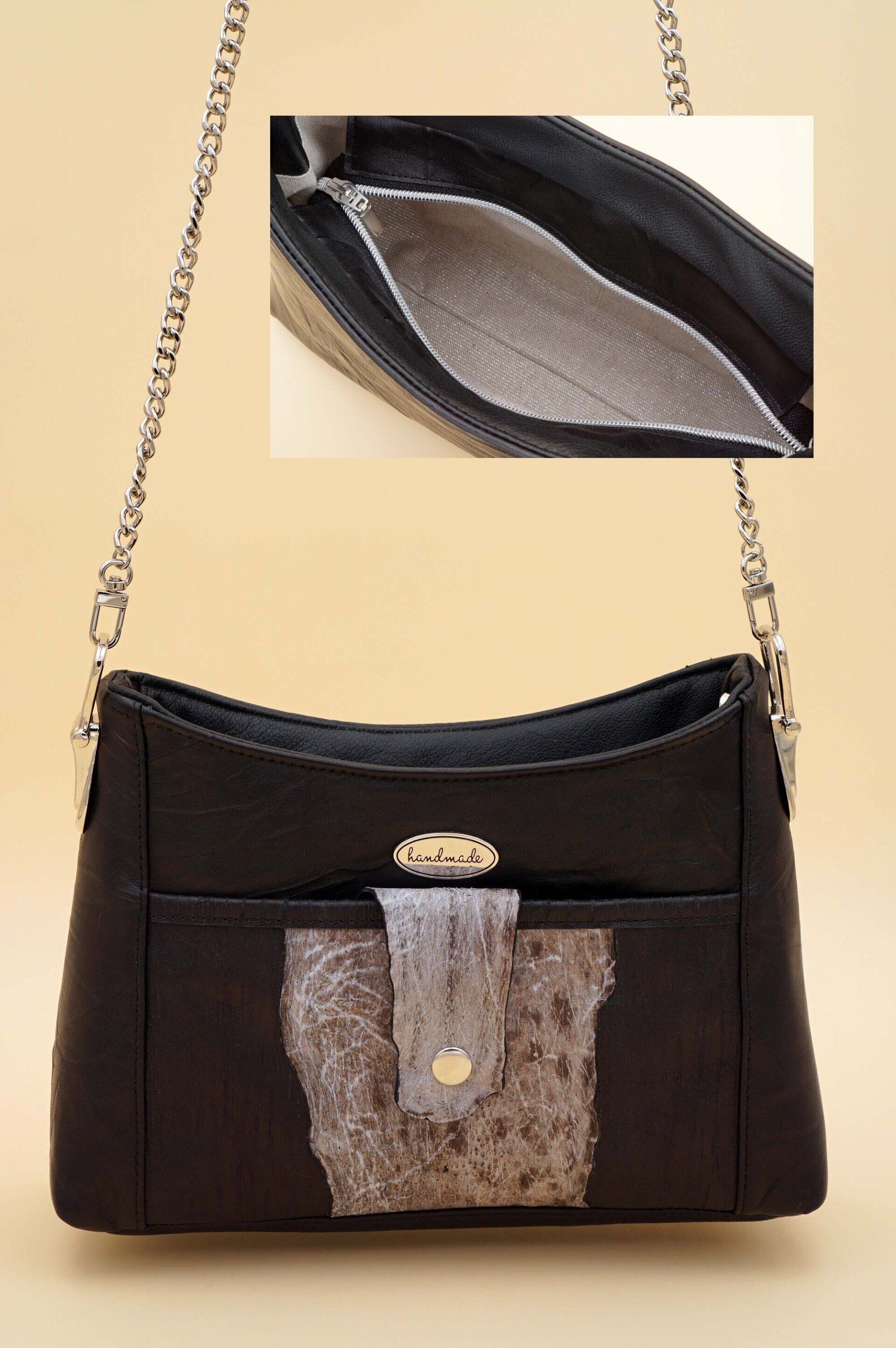 ButtonShamballa Fiorella-Handtasche mit Steckschloß außen auf Taschenklappe, 24x24x8,5 cm, Material Büffelleder, Taschenklappe Crankle-Rindsleder, Innenfutter Baumwolle, Steck- und RV-Fach innen