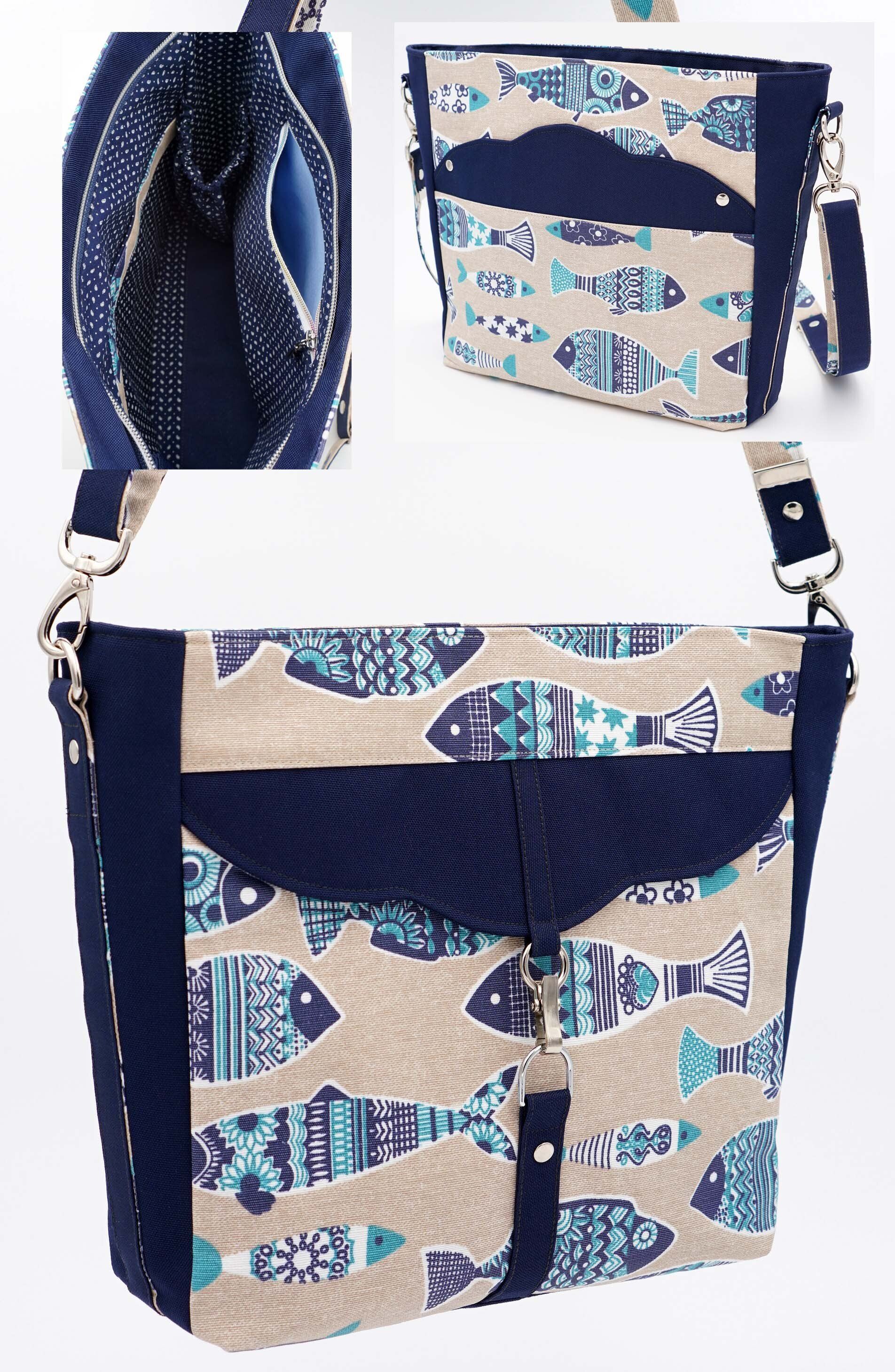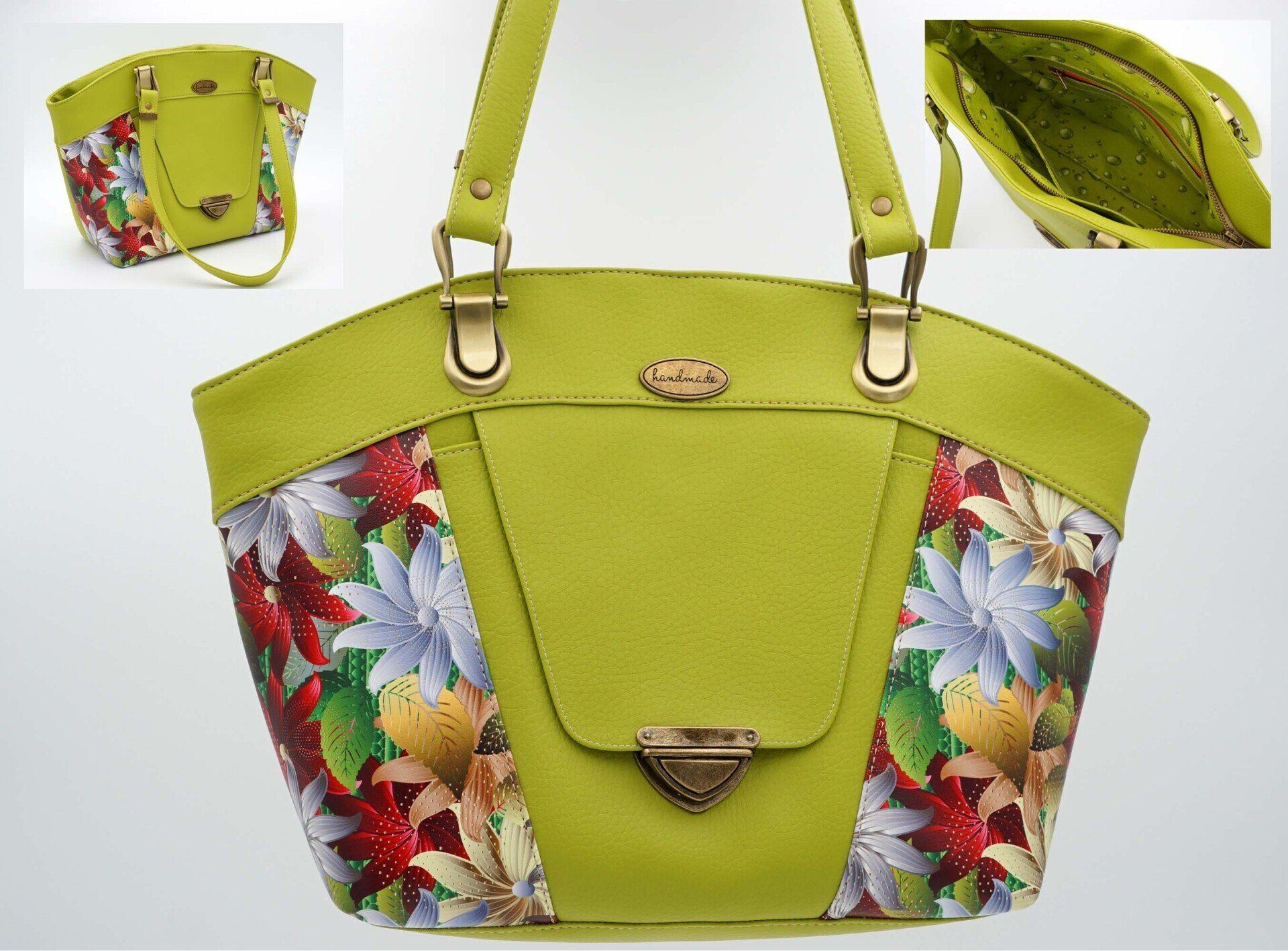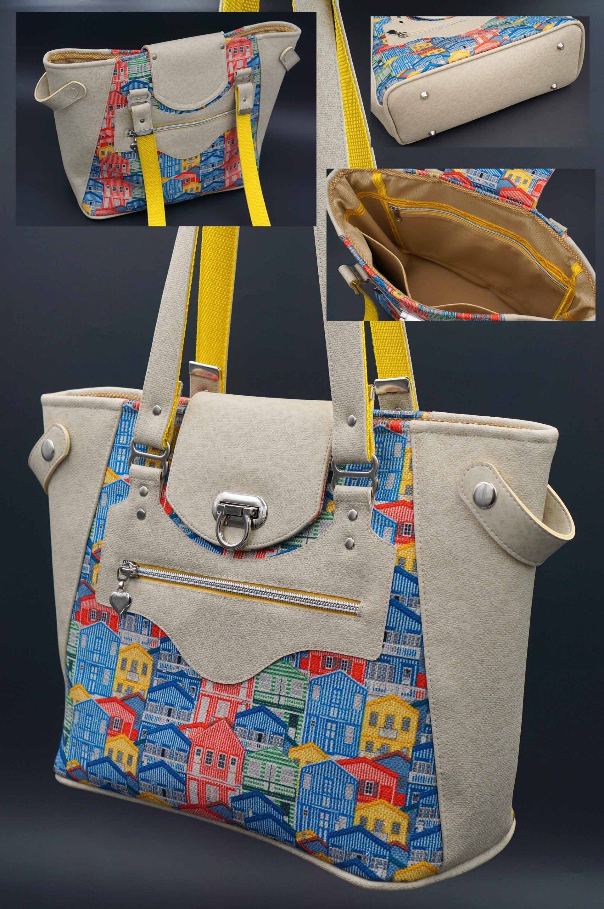 ButtonShopper Lia Bag (Unikati), 36x37x10 cm, mit Magnetknopf, Material Canvas, Innenfutter Baumwolle, Außen- und Innentaschen
