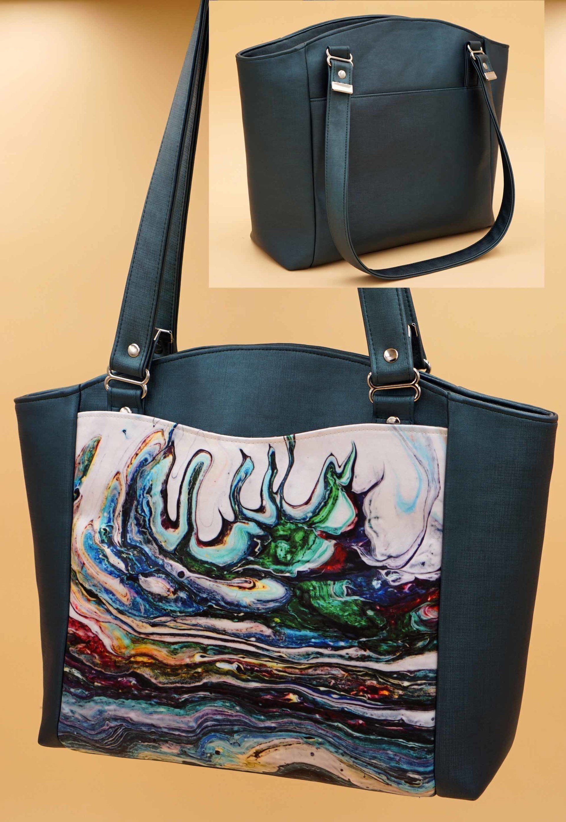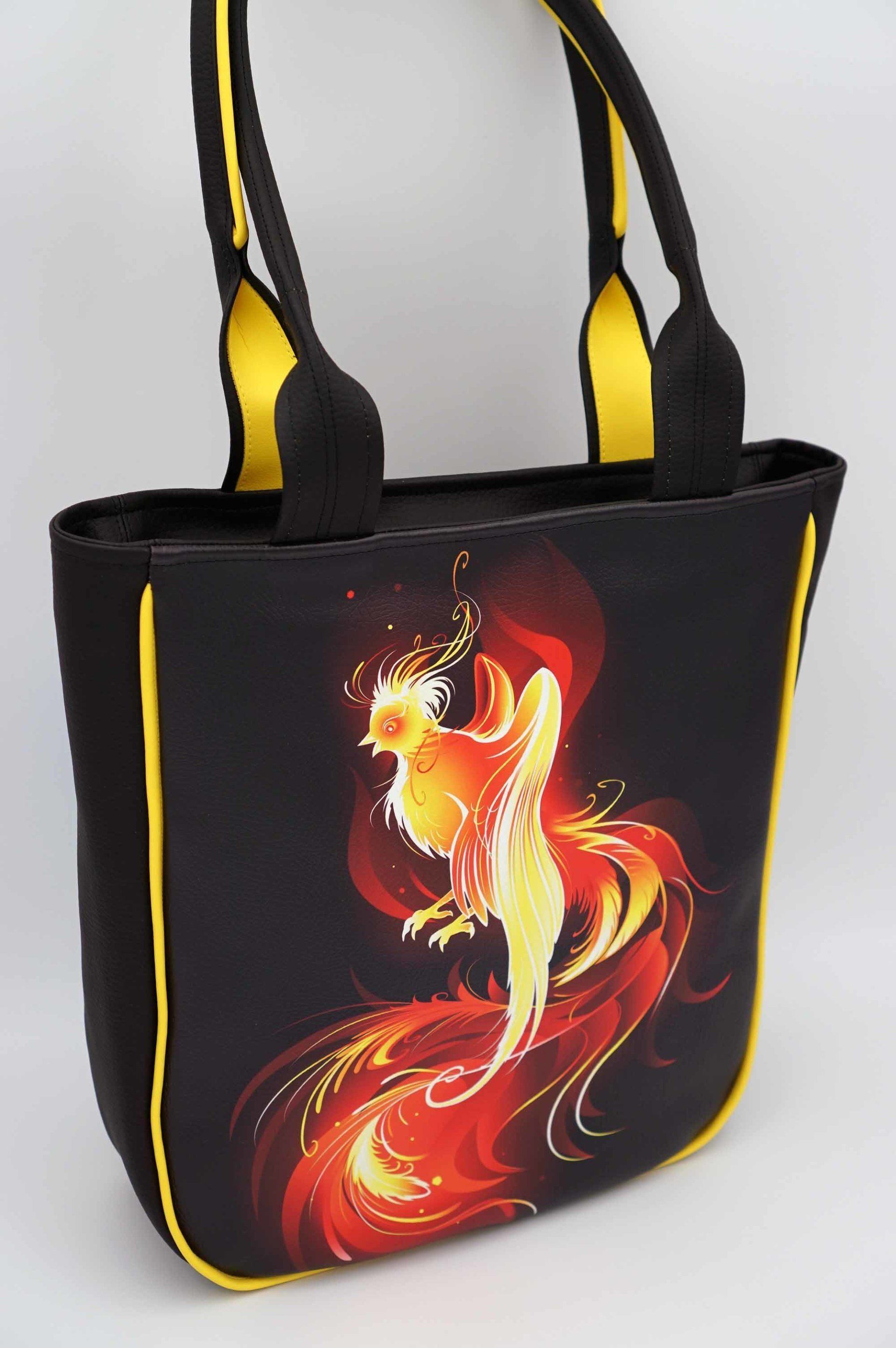 ButtonTasche "Phönix" aus der Serie Fantasy, 35x30x19 cm, Material Kunstleder mit Reißverschluß, Innenfutter Baumwolle, Innen- und Außentasche mit Reißverschluß